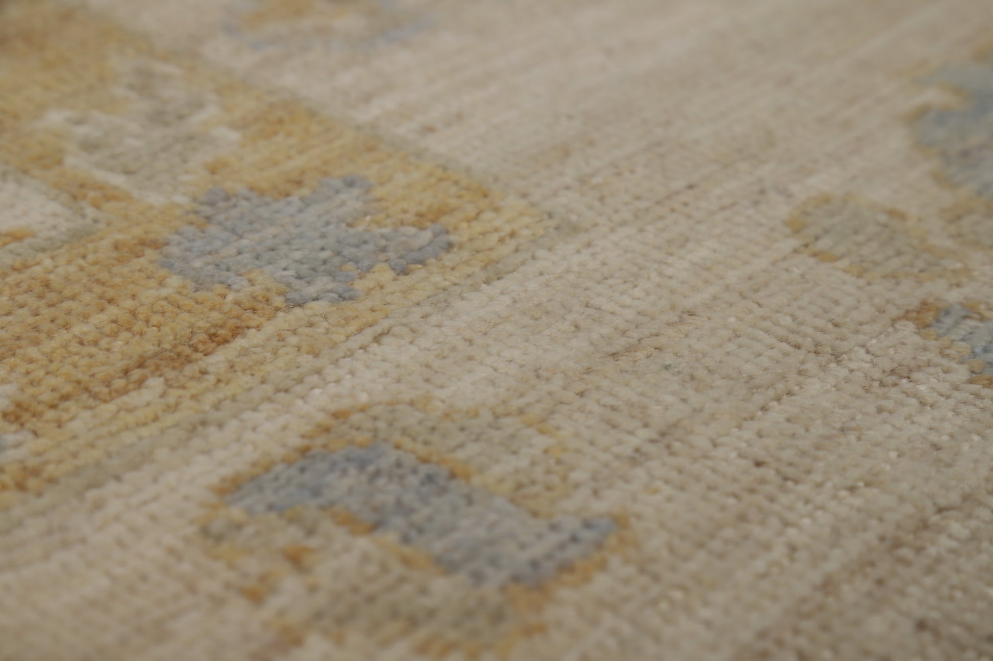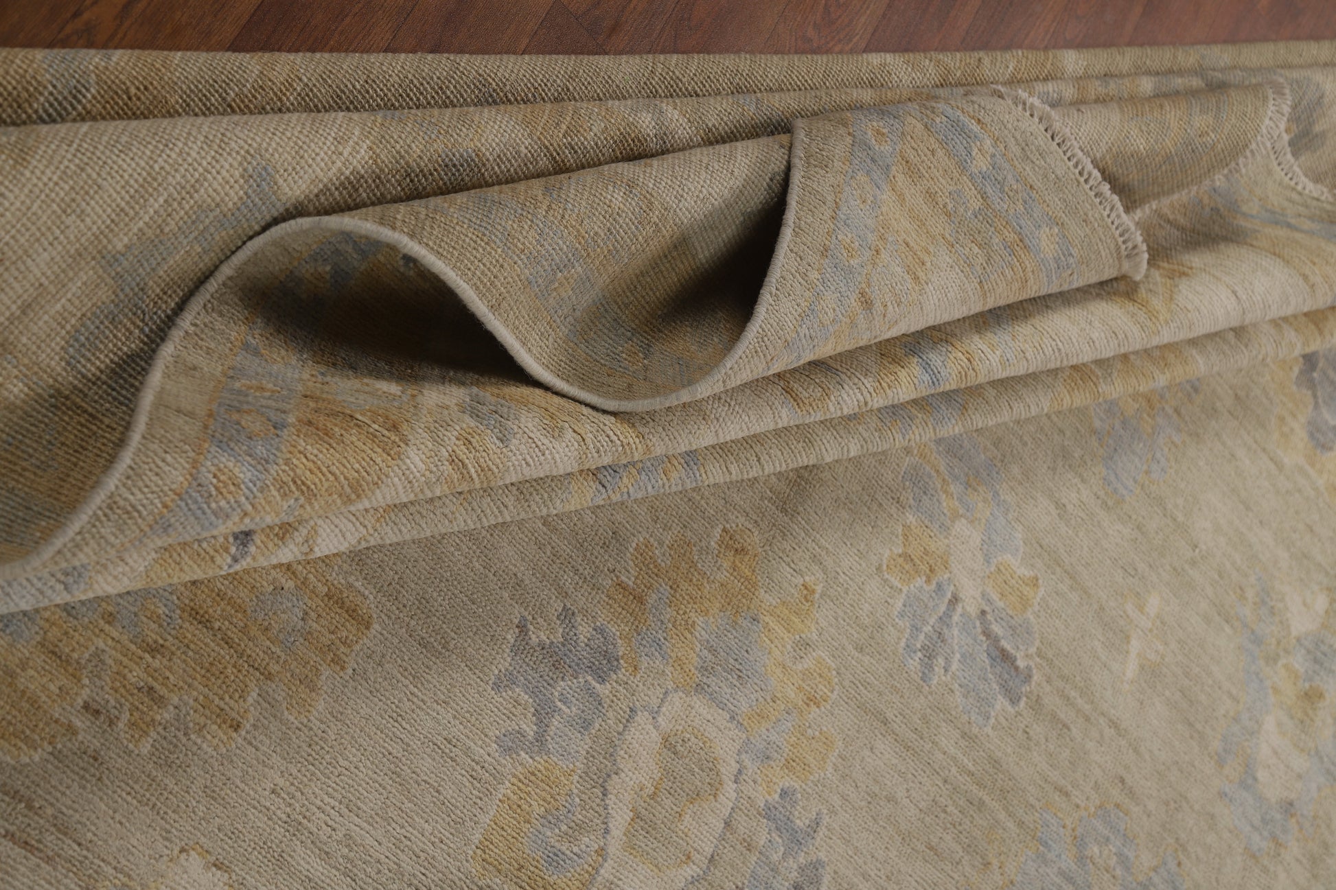 A Beautiful Genuine Turkey Oushak rug is Hand Knotted by skillful weavers in Turkey with 100% Wool Material. This rug is in New, First Quality condition. dimensions are 11' 8'' X 9' 1'' in foot and 356 X 277 in centimeter. the primary color is Beige & Ivories.