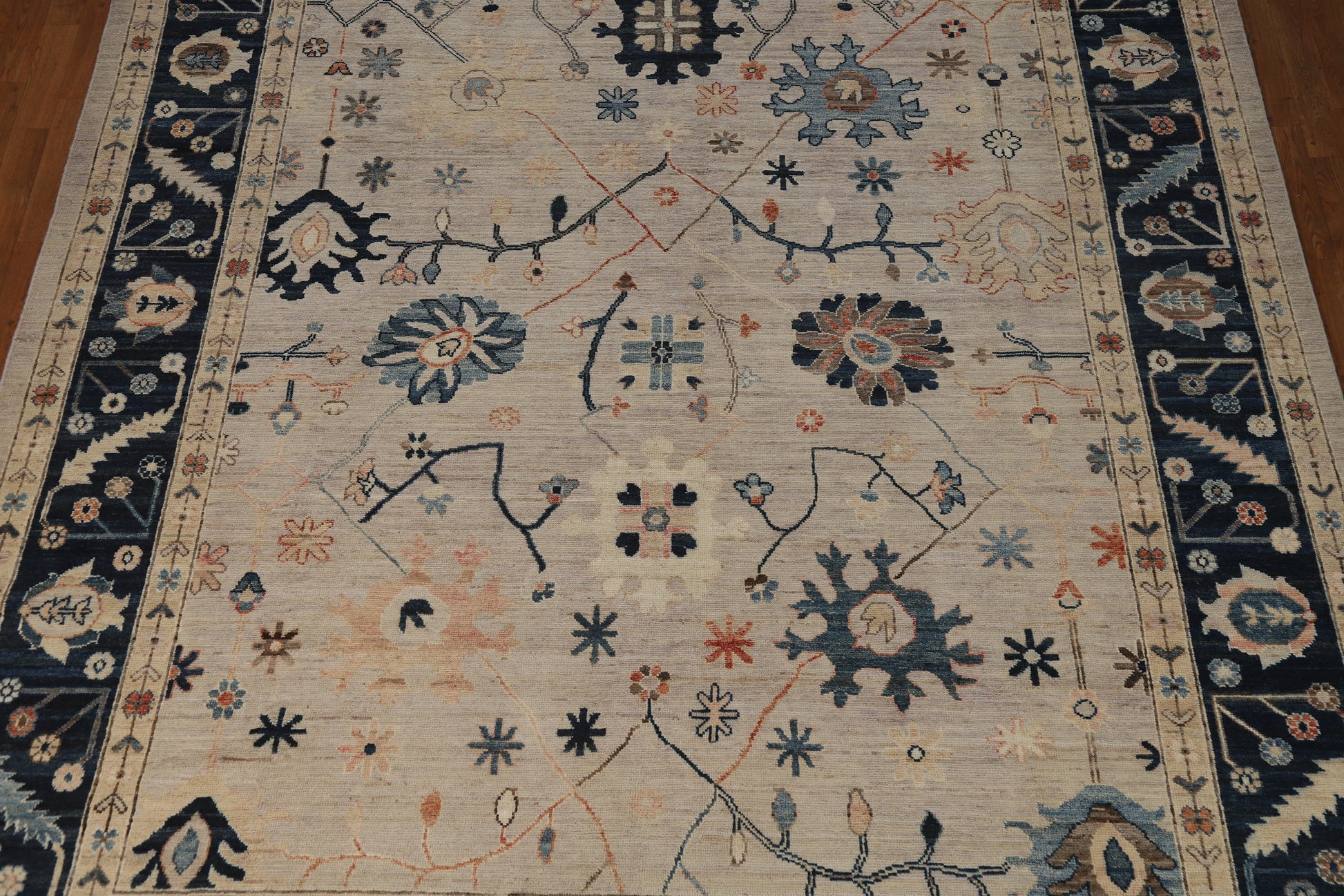 A Beautiful Genuine Turkey Oushak rug is Hand Knotted by skillful weavers in Turkey with 100% Wool Material. This rug is in New, First Quality condition. dimensions are 11' 9'' X 8' 10'' in foot and 358 X 269 in centimeter. the primary color is Greys & Charcoal.