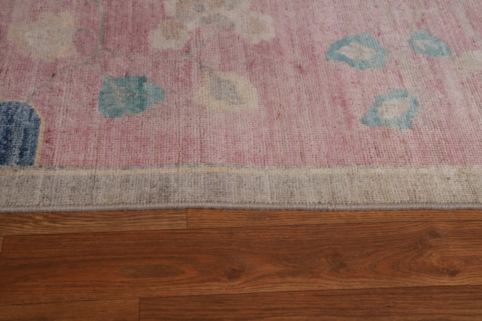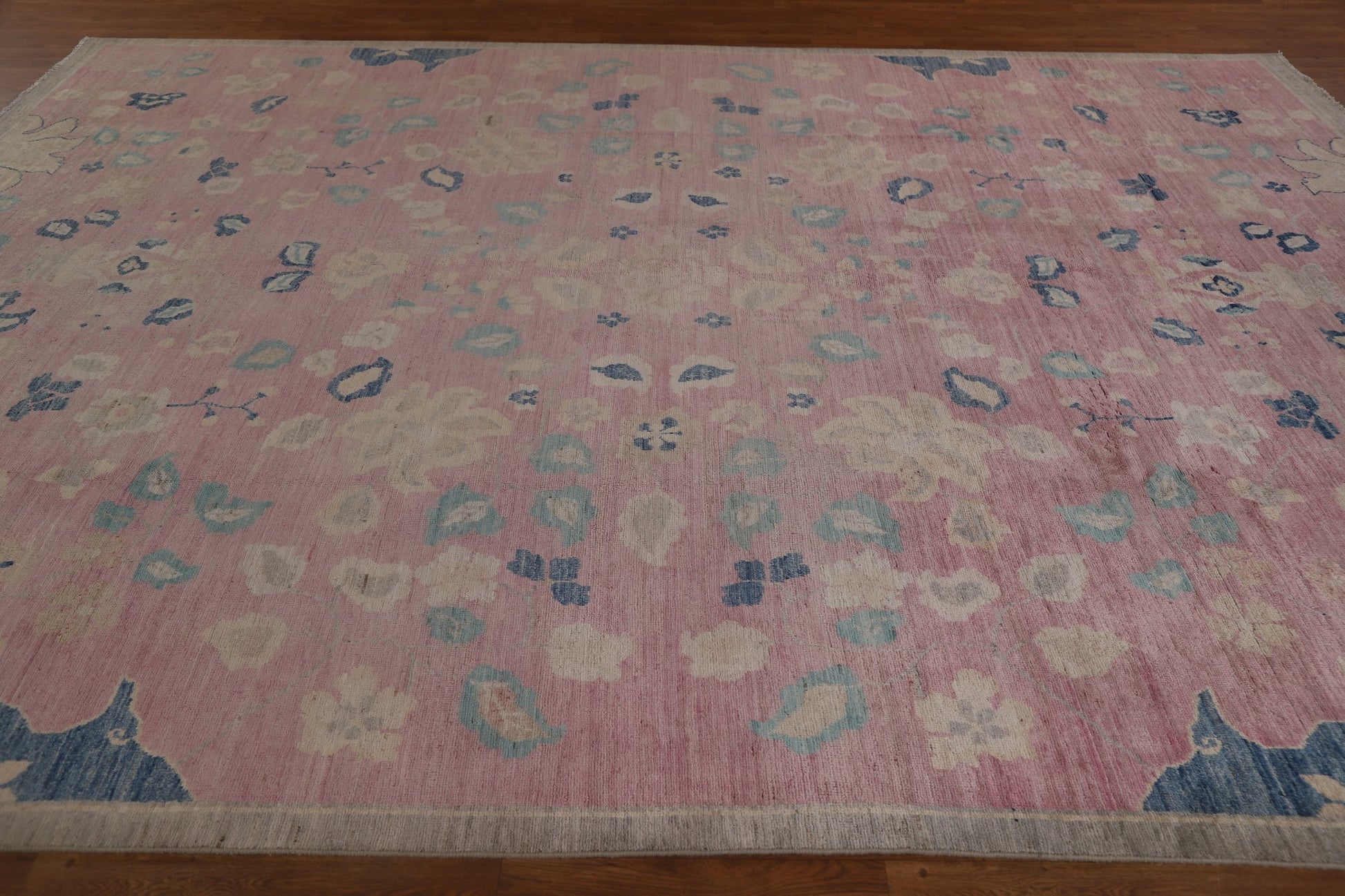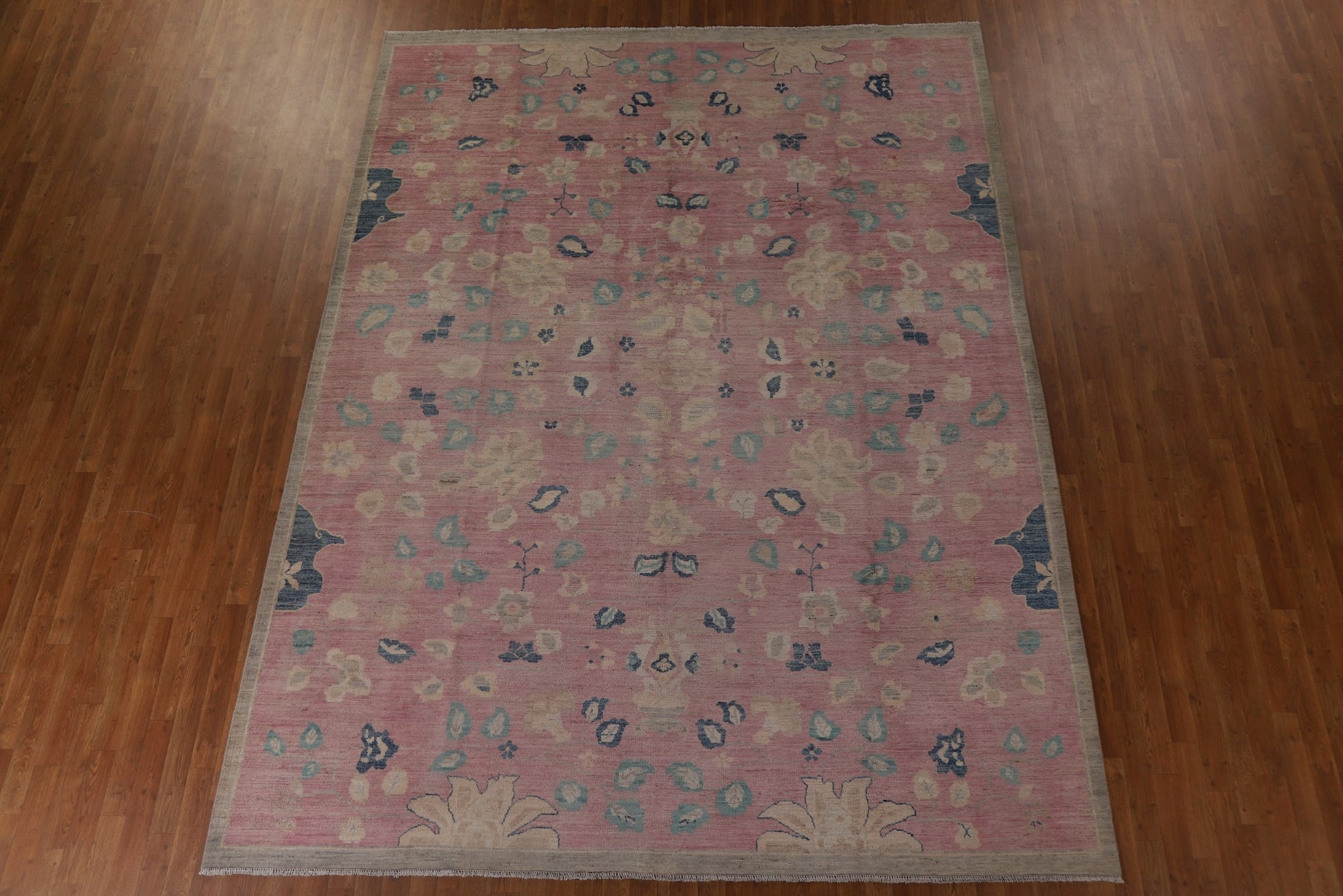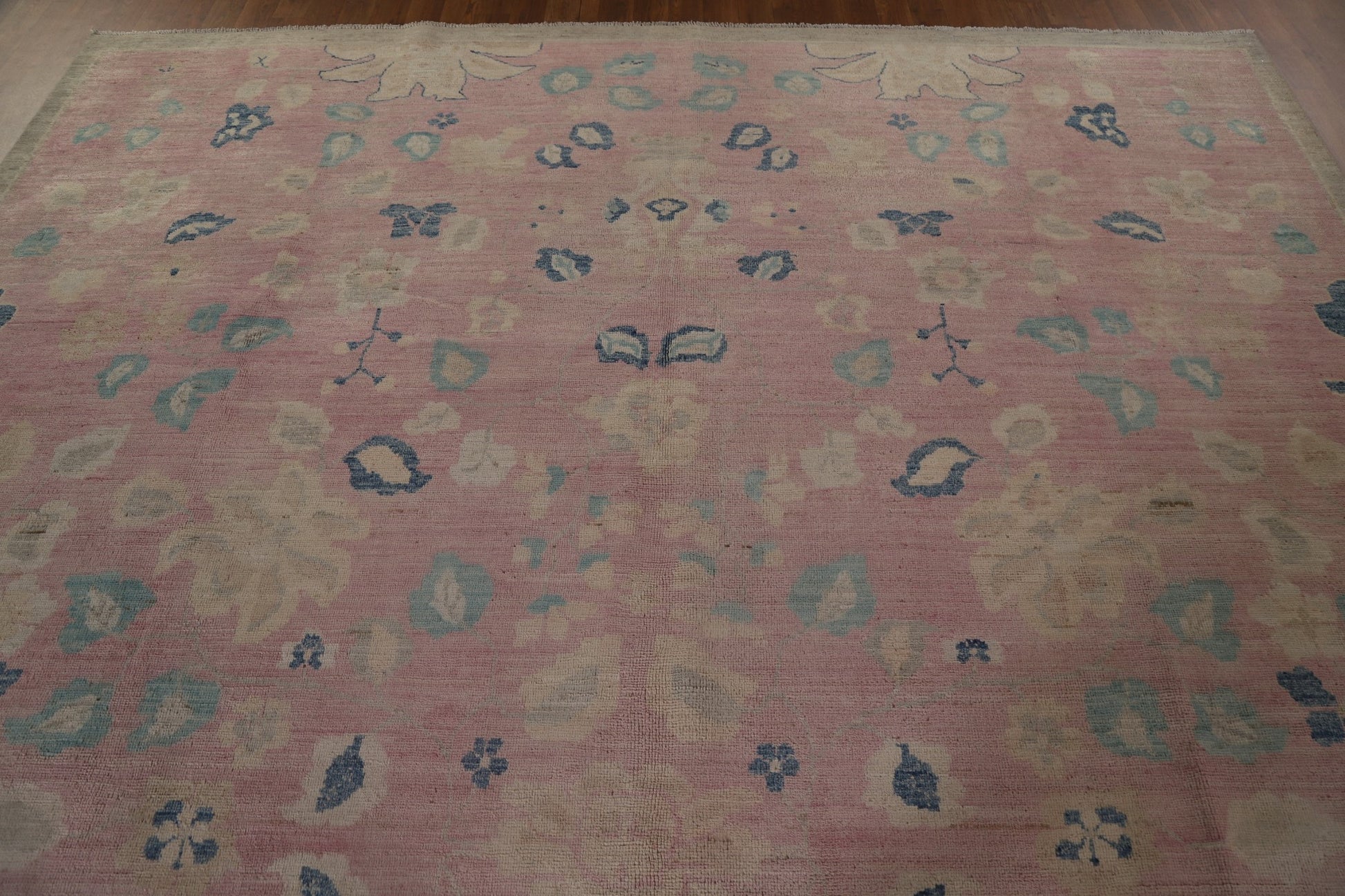 A Beautiful Genuine Turkey Oushak (100% Vegetable Dye) rug is Hand Knotted by skillful weavers in Turkey with 100% Wool Material. This rug is in Excellent condition. dimensions are 11' 11'' X 8' 11'' in foot and 363 X 272 in centimeter. the primary color is Pink.