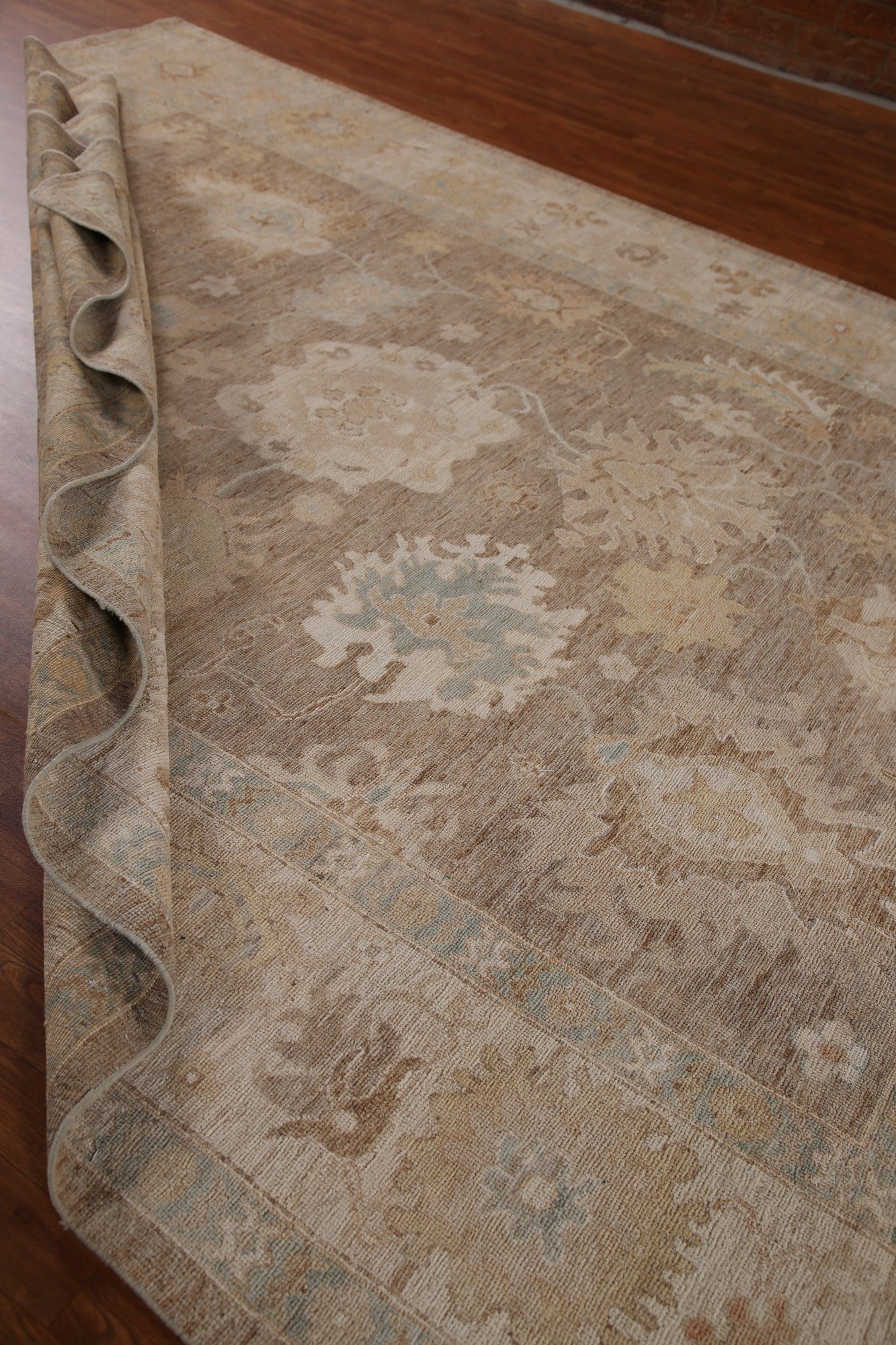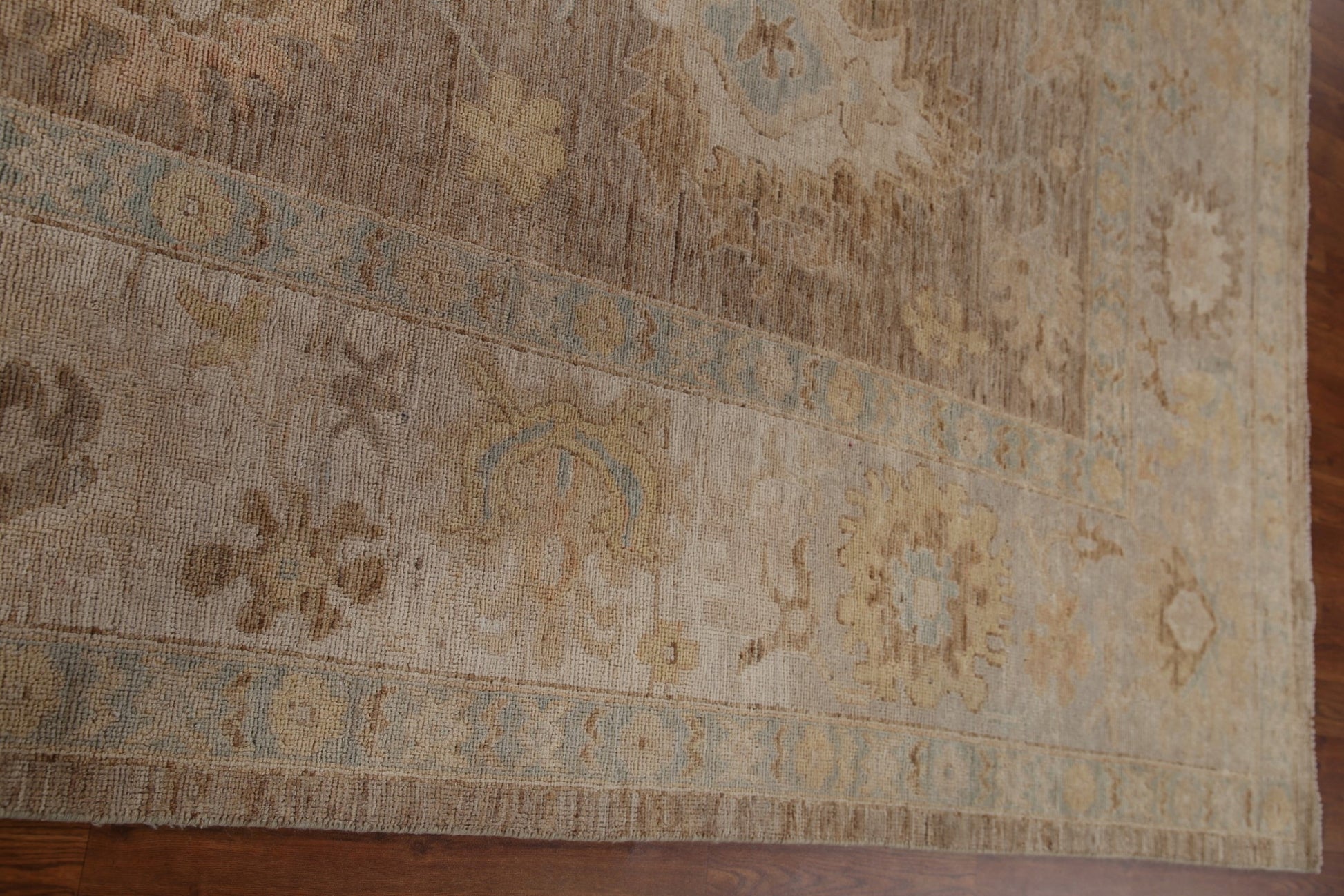 A Beautiful Genuine Turkey Oushak (100% Vegetable Dye) rug is Hand Knotted by skillful weavers in Turkey with 100% Wool Material. This rug is in Excellent condition. dimensions are 11' 9'' X 9' 1'' in foot and 358 X 277 in centimeter. the primary color is Brown.