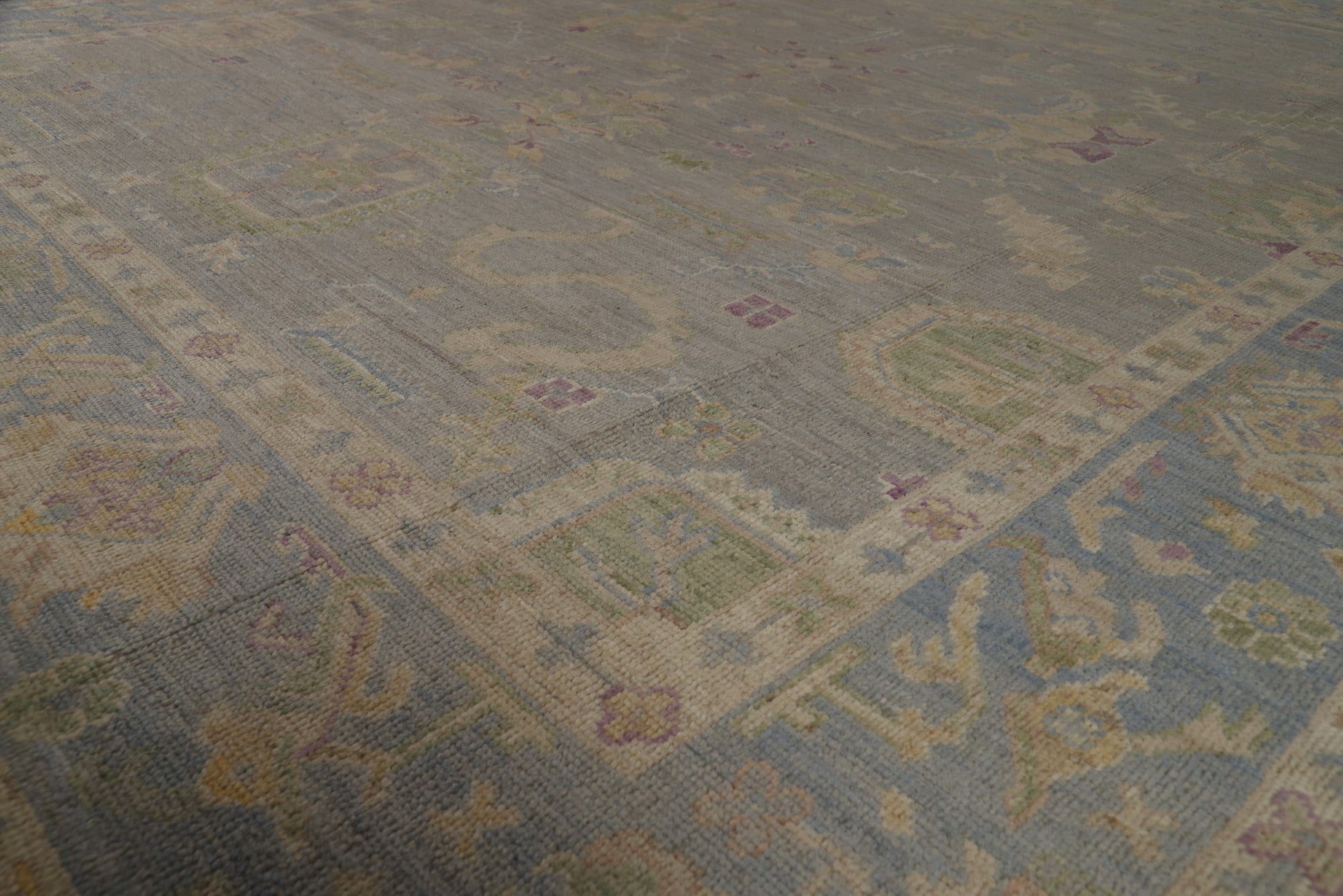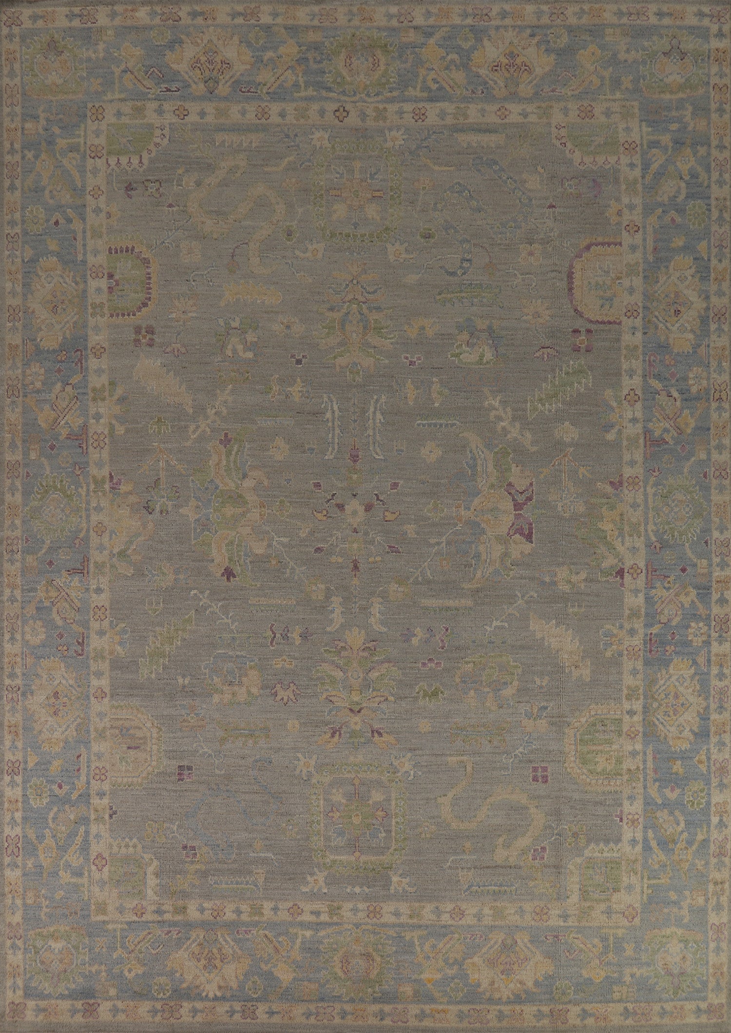 A Beautiful Genuine Turkey Oushak rug is Hand Knotted by skillful weavers in Turkey with 100% Wool Material. This rug is in New, First Quality condition. dimensions are 12' 0'' X 9' 3'' in foot and 366 X 282 in centimeter. the primary color is Greys & Charcoal.