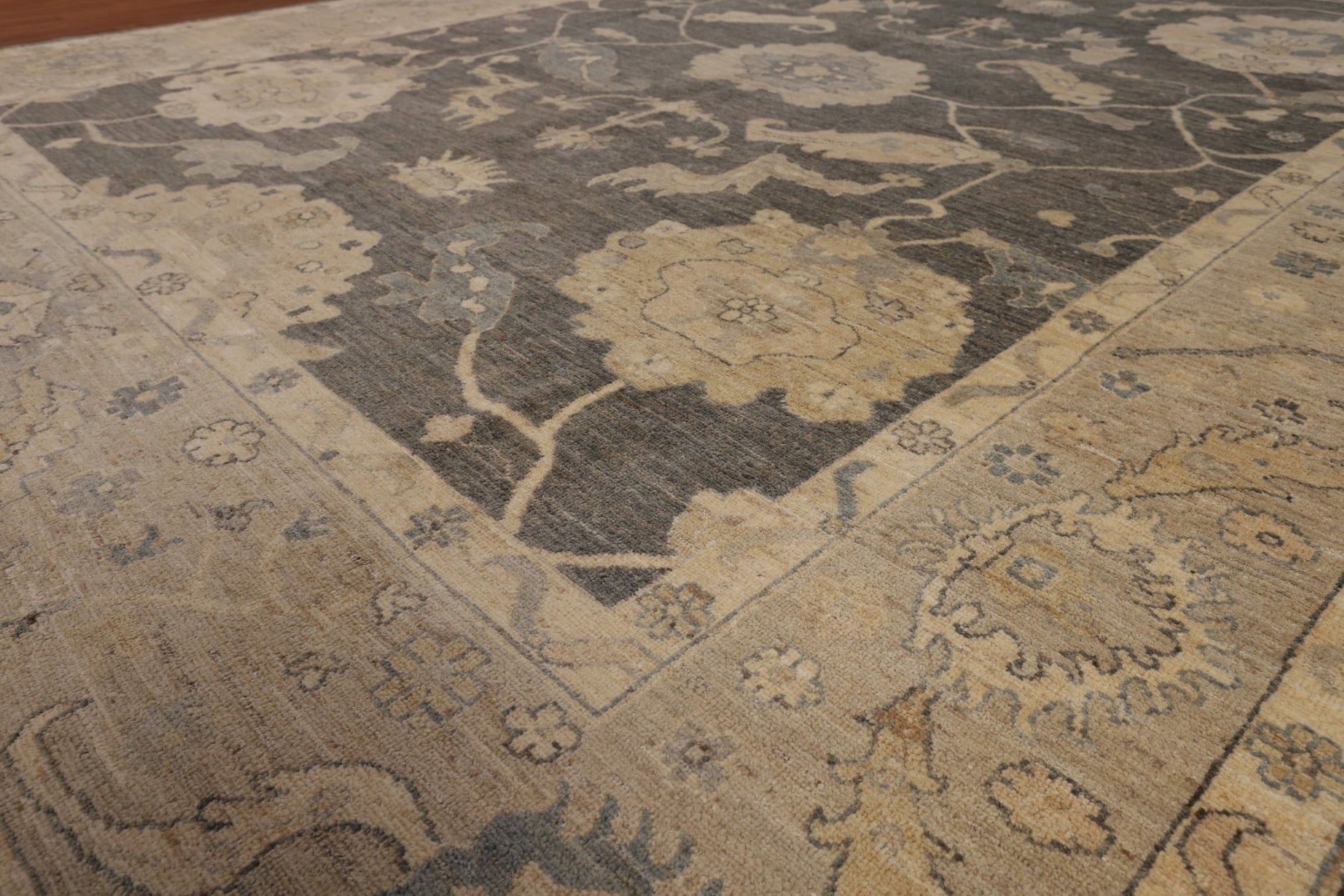 A Beautiful Genuine Turkey Oushak rug is Hand Knotted by skillful weavers in Turkey with 100% Wool Material. This rug is in New, First Quality condition. dimensions are 11' 7'' X 8' 10'' in foot and 353 X 269 in centimeter. the primary color is Greys & Charcoal.