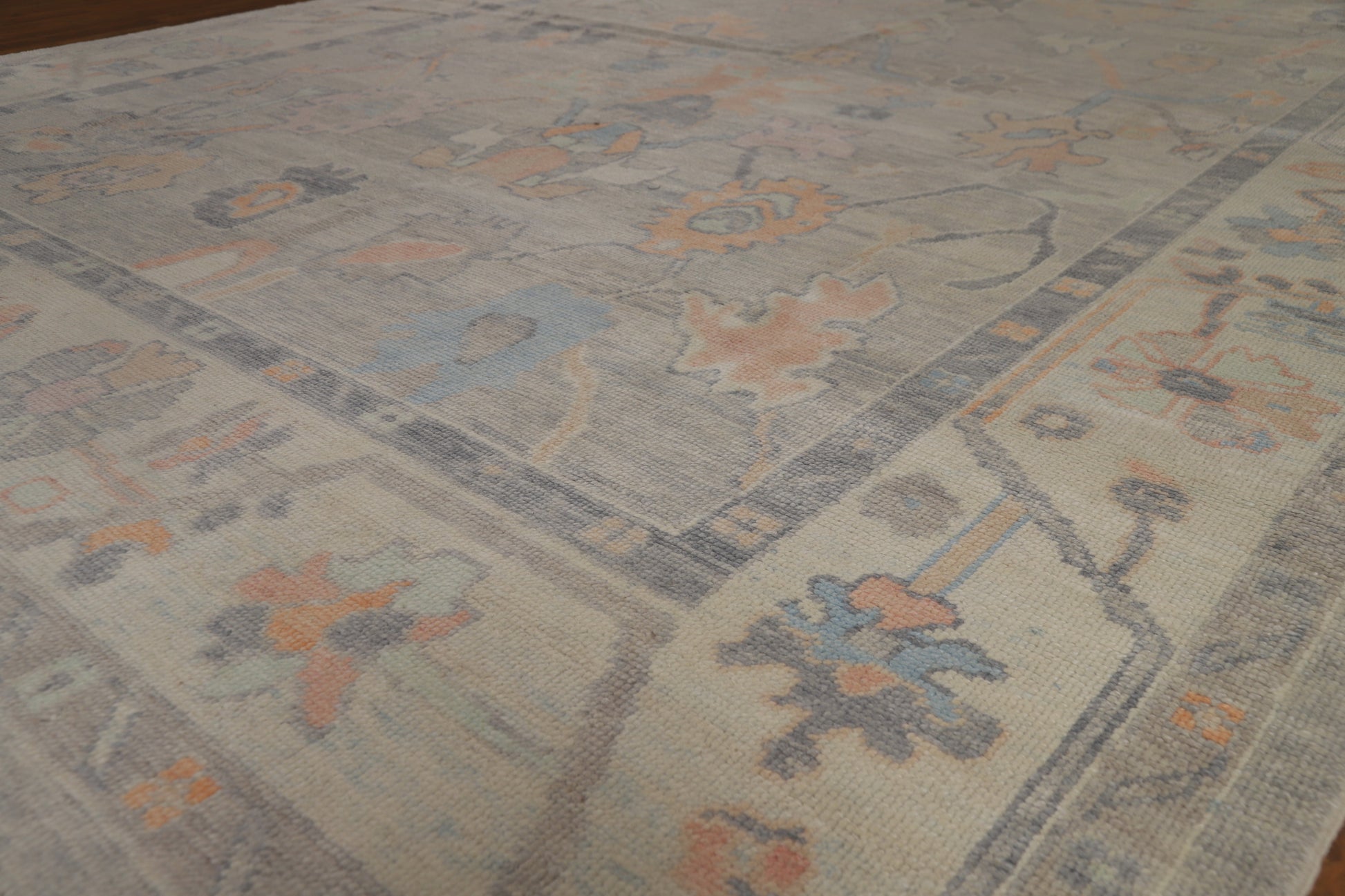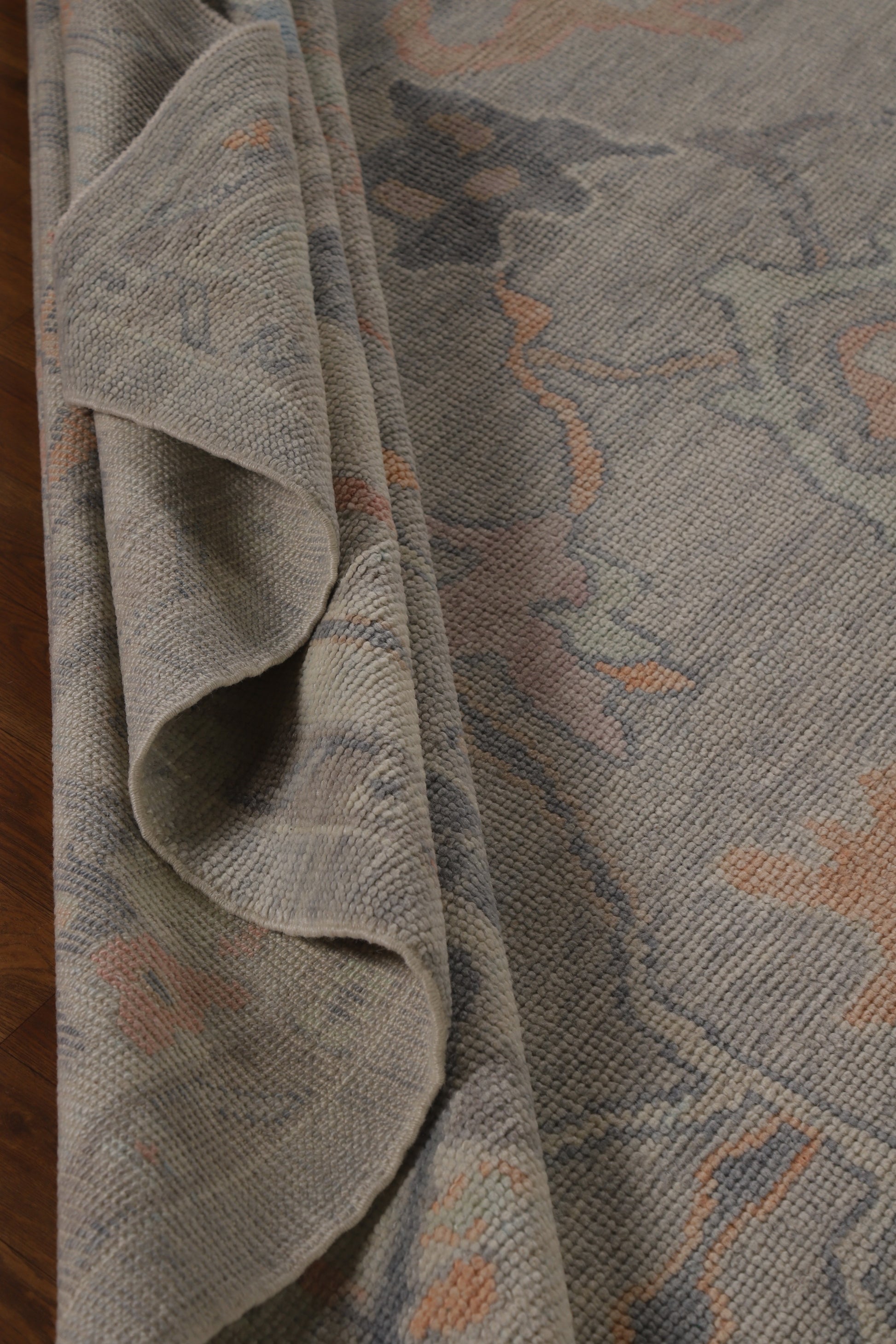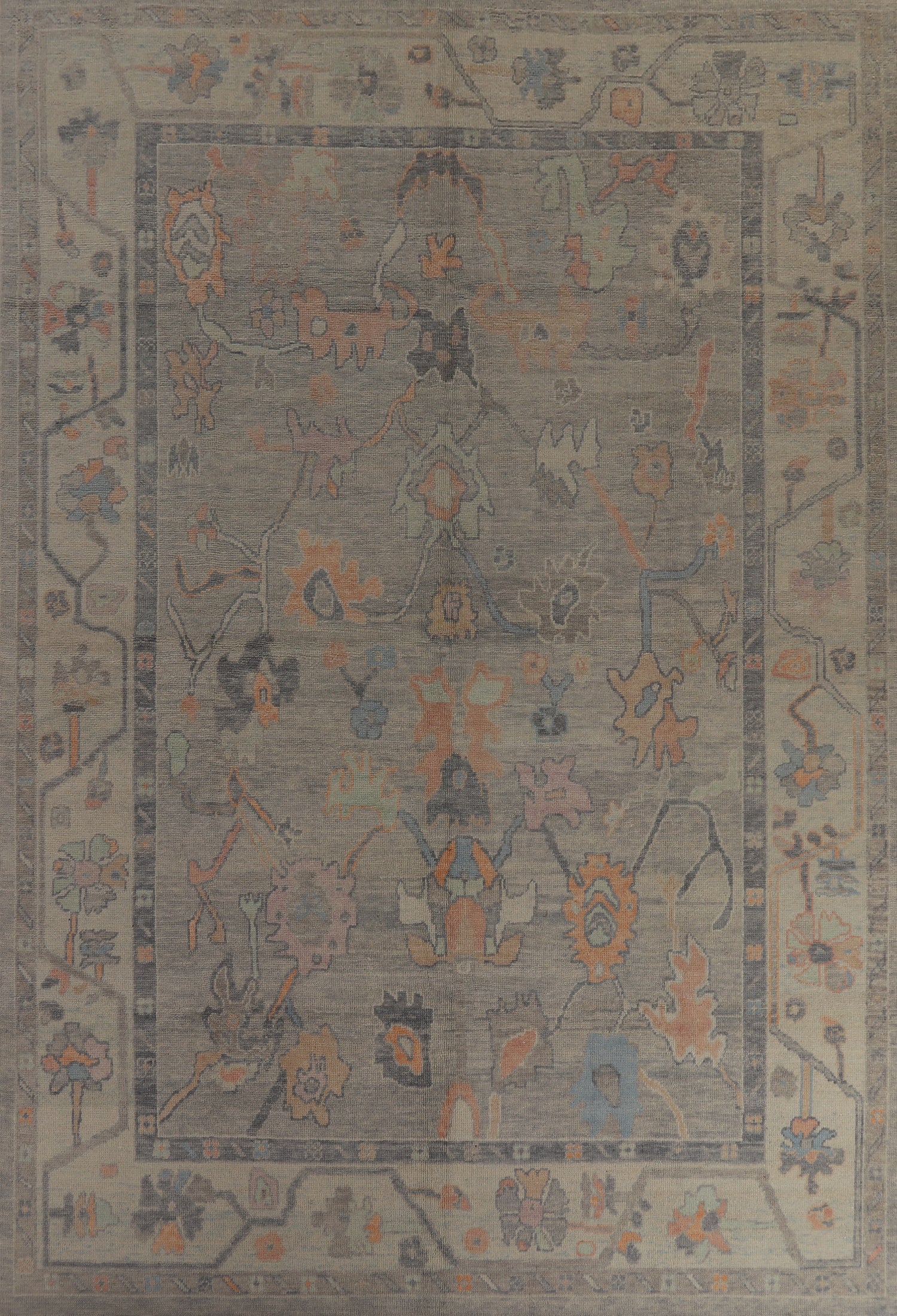 A Beautiful Genuine Turkey Oushak rug is Hand Knotted by skillful weavers in Turkey with 100% Wool Material. This rug is in New, First Quality condition. dimensions are 12' 9'' X 9' 0'' in foot and 389 X 274 in centimeter. the primary color is Greys & Charcoal.