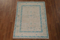 A Beautiful Genuine Turkey Oushak rug is Hand Knotted by skillful weavers in Turkey with 100% Wool Material. This rug is in New, First Quality condition. dimensions are 4' 1'' X 3' 1'' in foot and 124 X 94 in centimeter. the primary color is Peach.