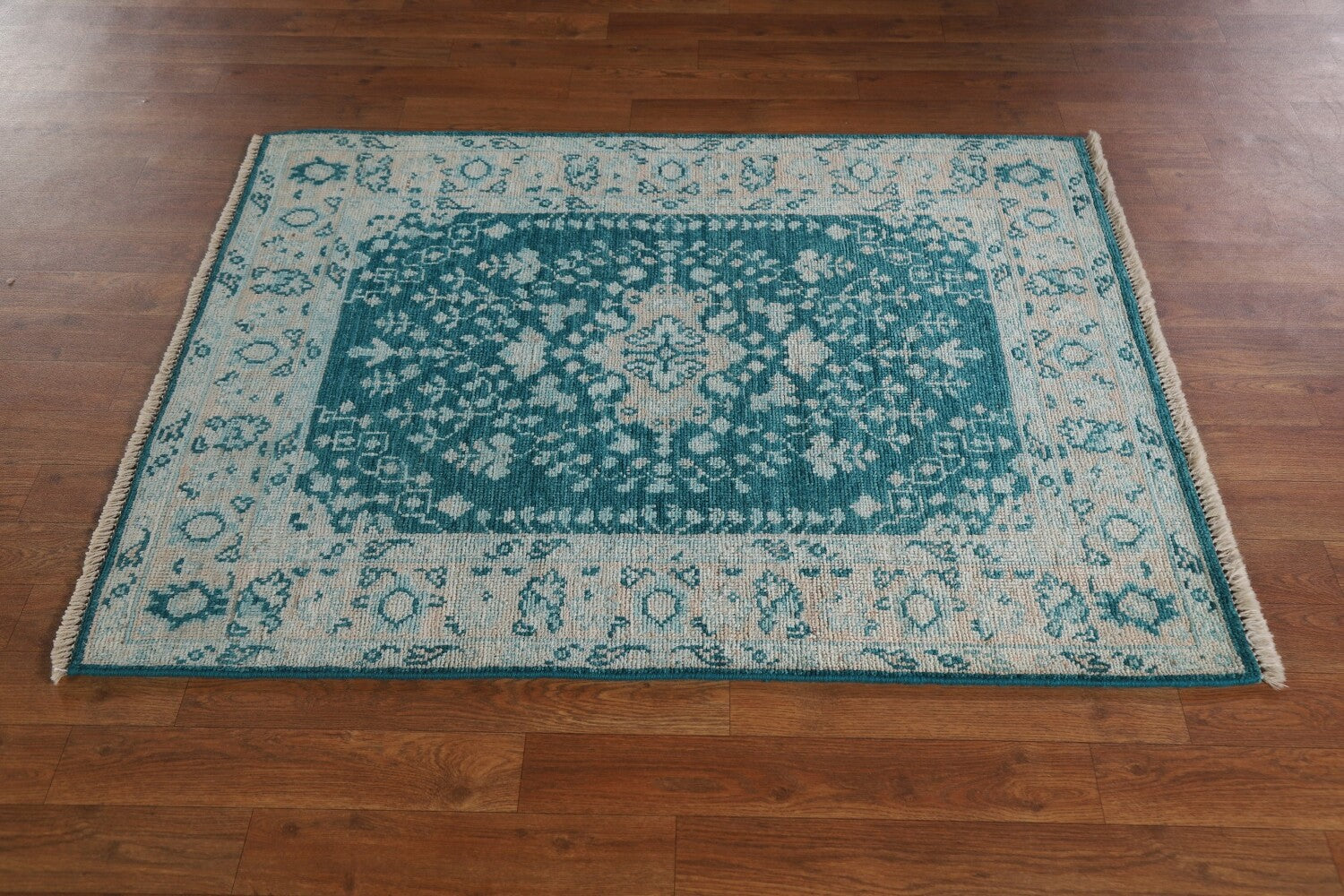 A Beautiful Genuine Turkey Oushak rug is Hand Knotted by skillful weavers in Turkey with 100% Wool Material. This rug is in New, First Quality condition. dimensions are 3' 11'' X 3' 0'' in foot and 119 X 91 in centimeter. the primary color is Green.