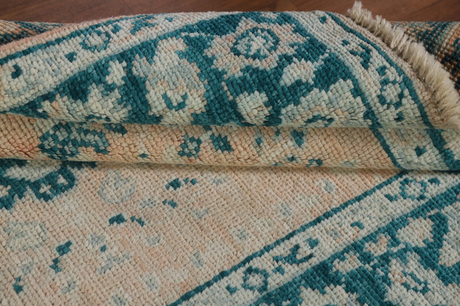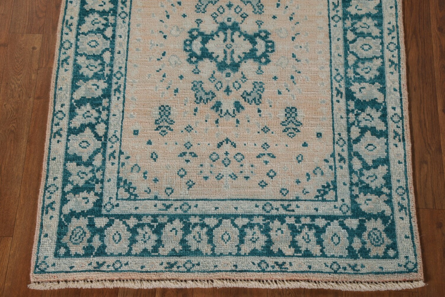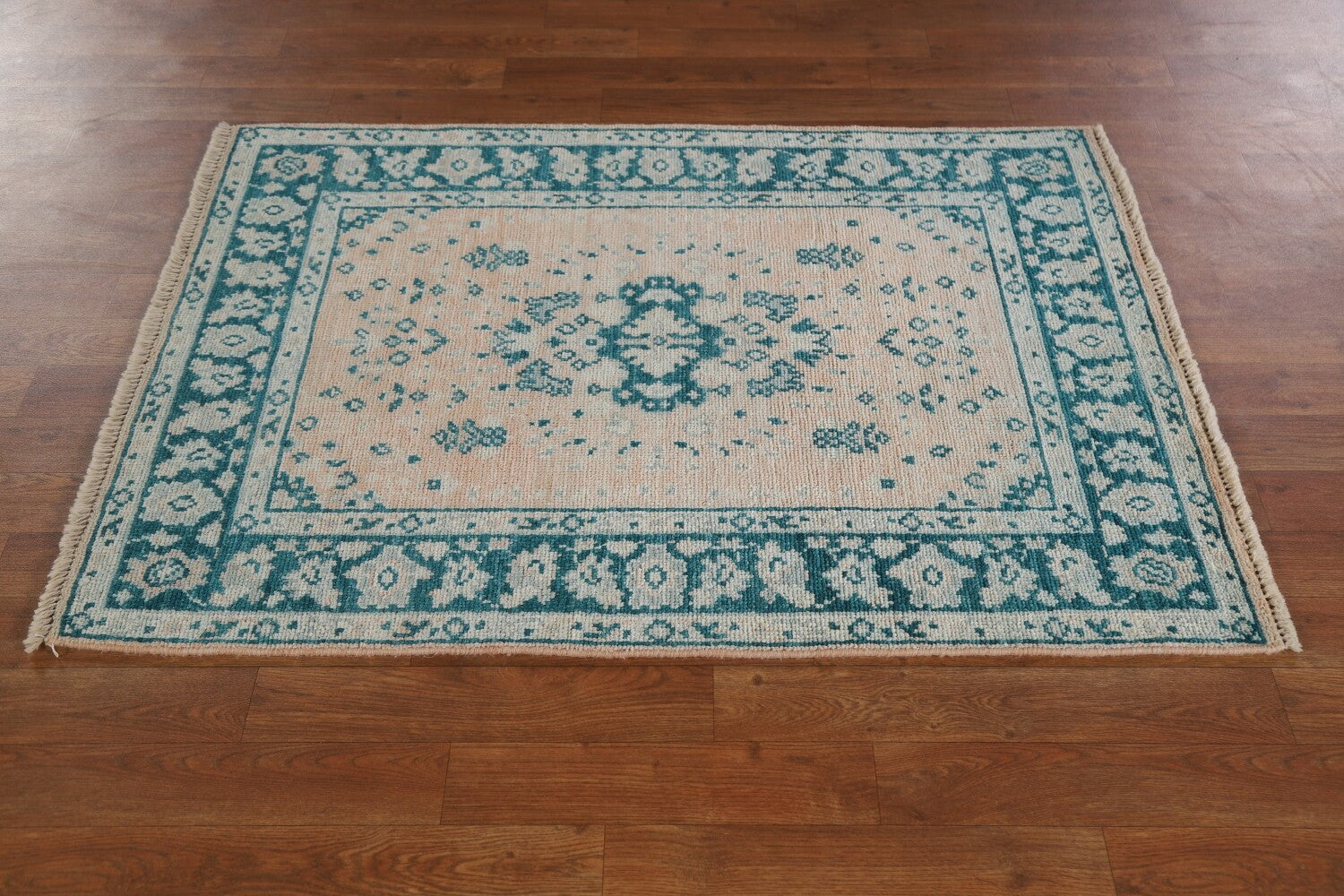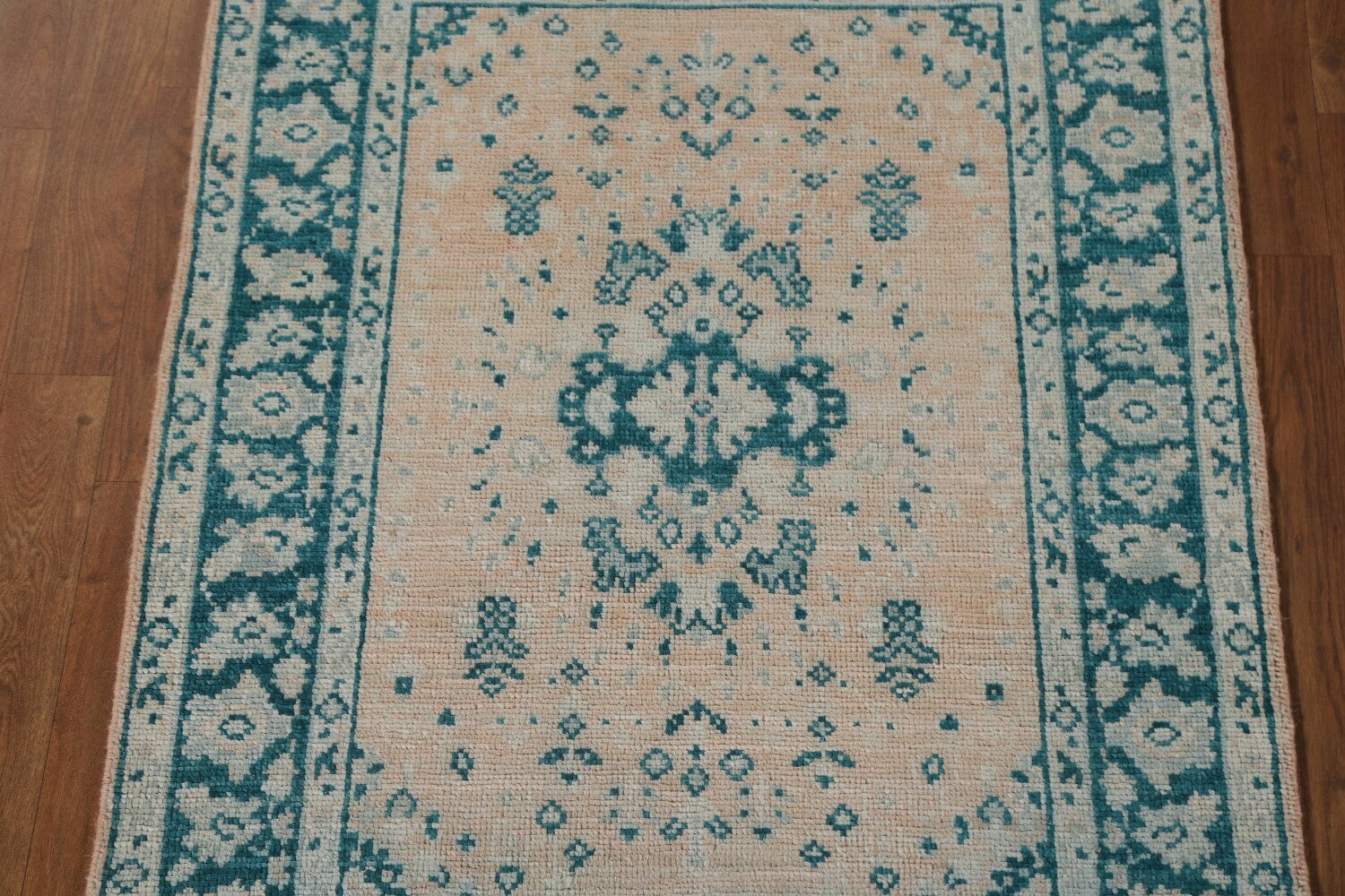 A Beautiful Genuine Turkey Oushak rug is Hand Knotted by skillful weavers in Turkey with 100% Wool Material. This rug is in New, First Quality condition. dimensions are 4' 0'' X 2' 11'' in foot and 122 X 89 in centimeter. the primary color is Peach.