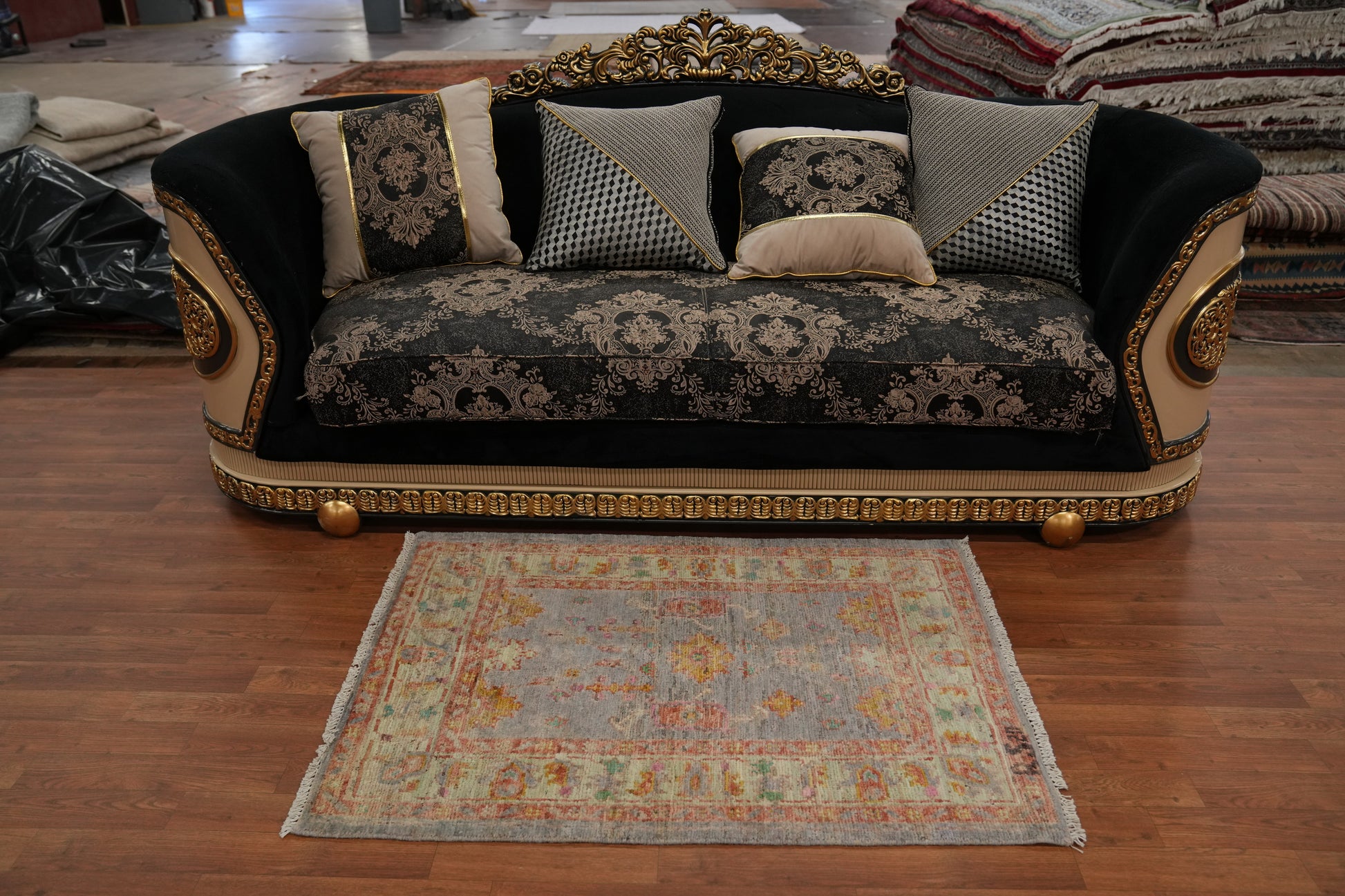 Vegetable Dye Oushak Turkish Foyer Rug 3x4