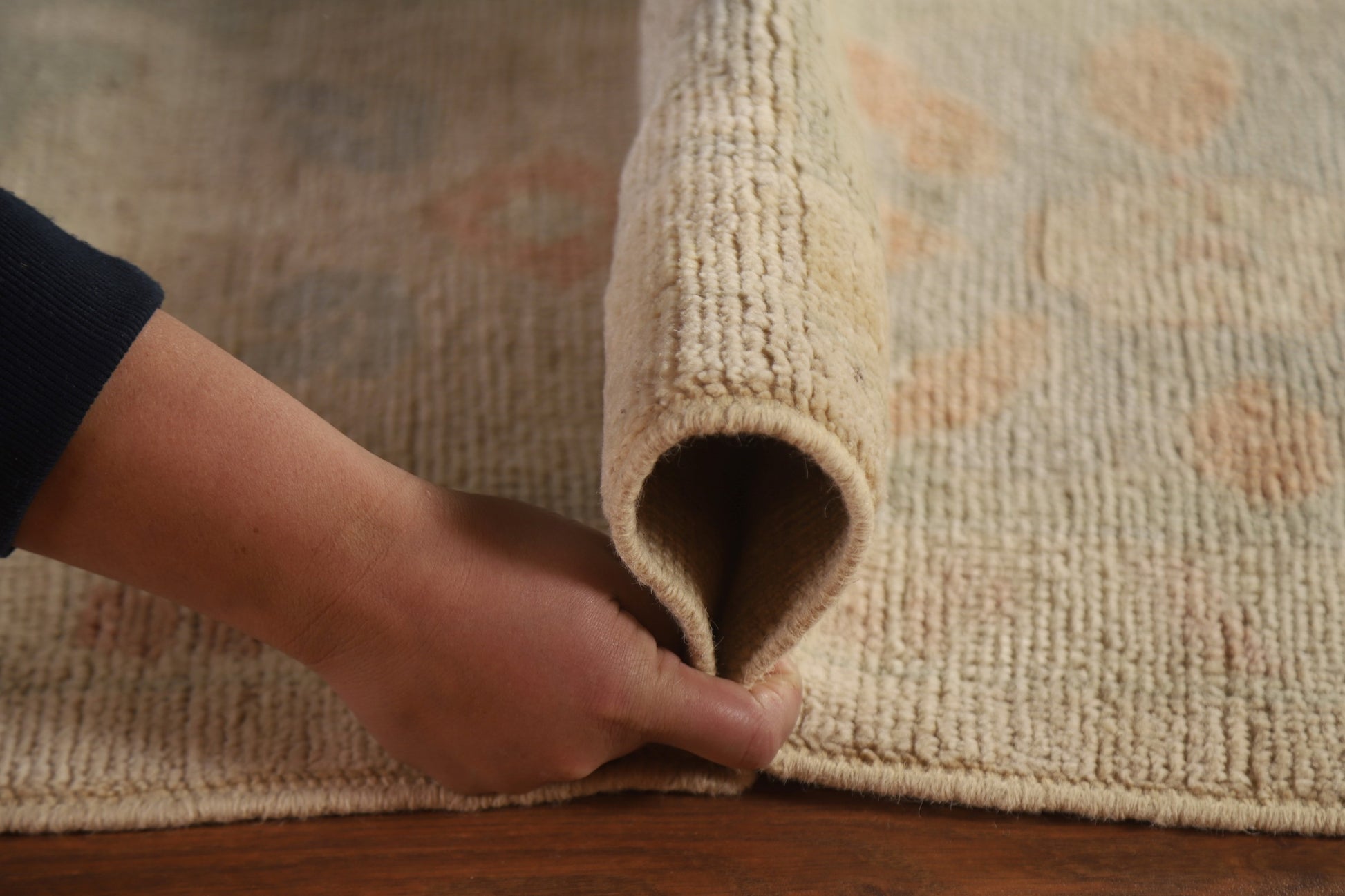 A Beautiful Genuine Turkey Oushak rug is Hand Knotted by skillful weavers in Turkey with 100% Wool Material. This rug is in New, First Quality condition. dimensions are 14' 6'' X 10' 3'' in foot and 442 X 312 in centimeter. the primary color is Beige & Ivories.