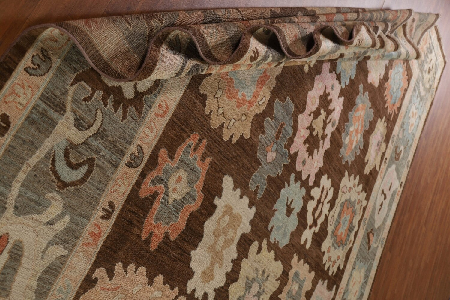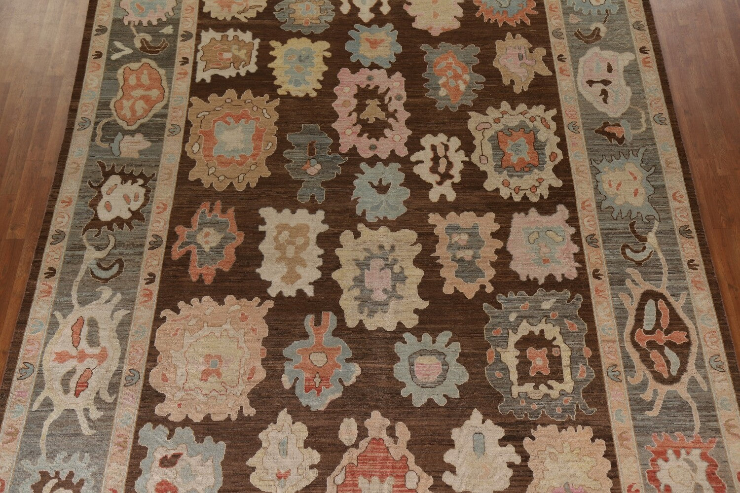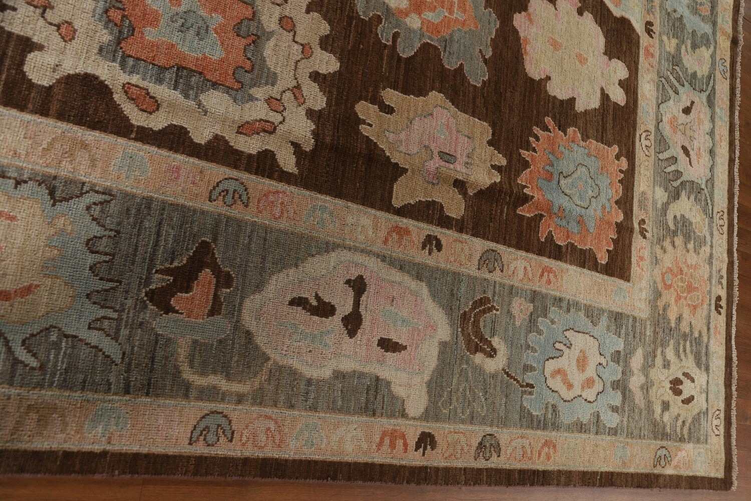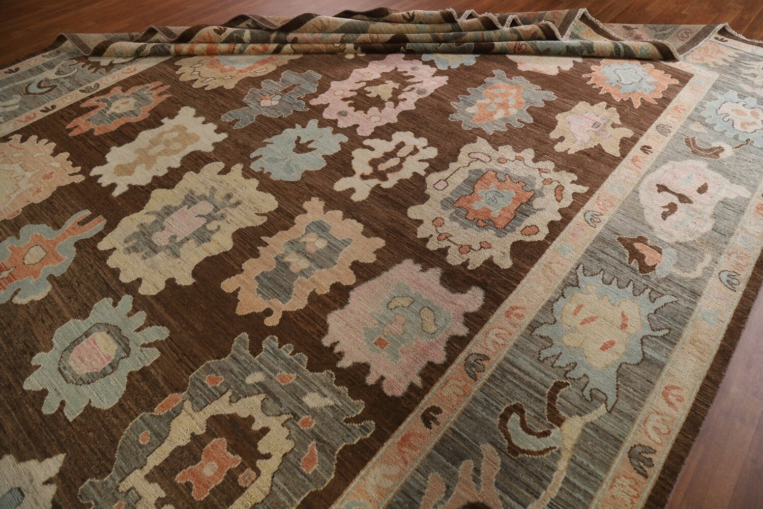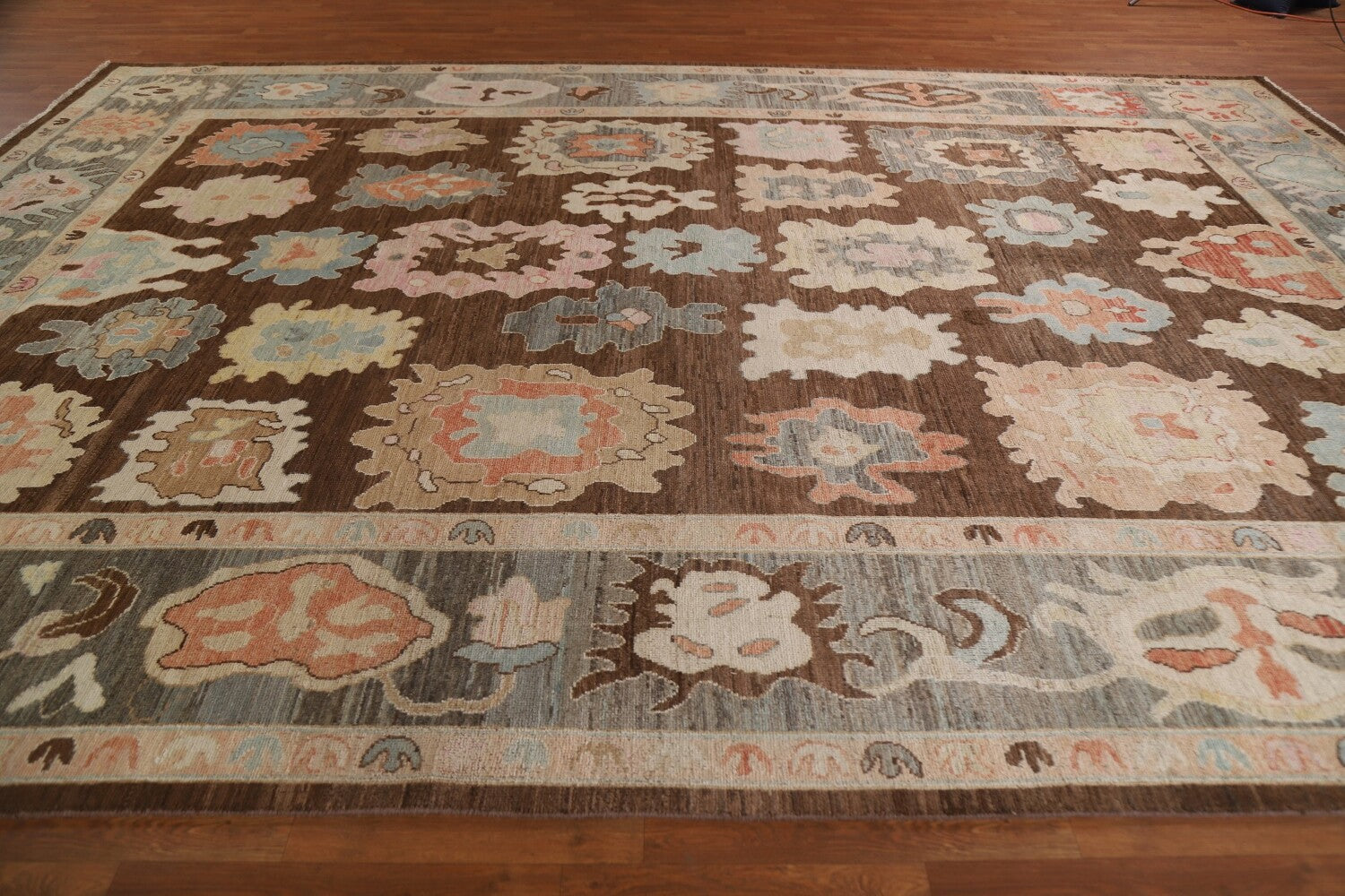 A Beautiful Genuine Turkey Oushak rug is Hand Knotted by skillful weavers in Turkey with 100% Wool Material. This rug is in New, First Quality condition. dimensions are 13' 10'' X 9' 11'' in foot and 422 X 302 in centimeter. the primary color is Brown.