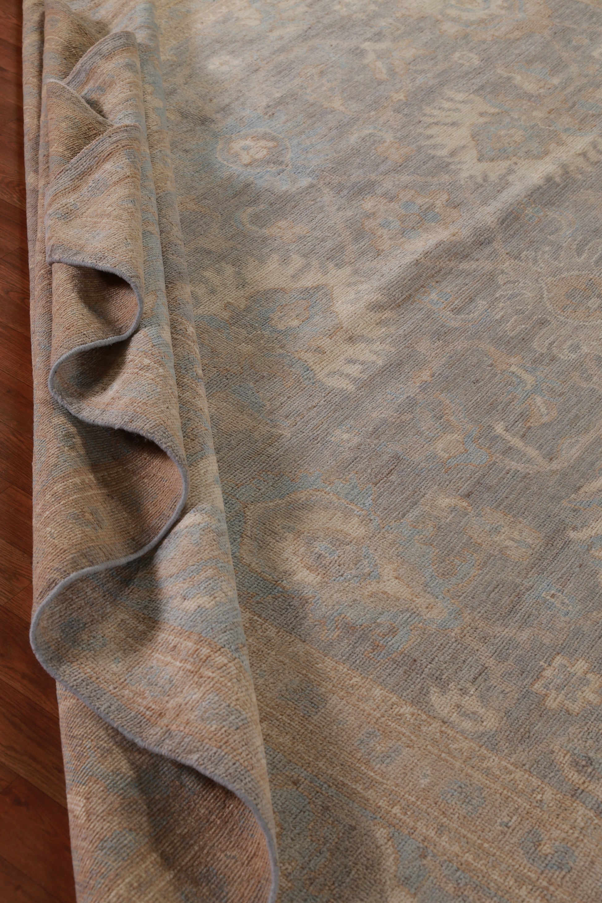 A Beautiful Genuine Turkey Oushak rug is Hand Knotted by skillful weavers in Turkey with 100% Wool Material. This rug is in New, First Quality condition. dimensions are 13' 10'' X 10' 1'' in foot and 422 X 307 in centimeter. the primary color is Greys & Charcoal.