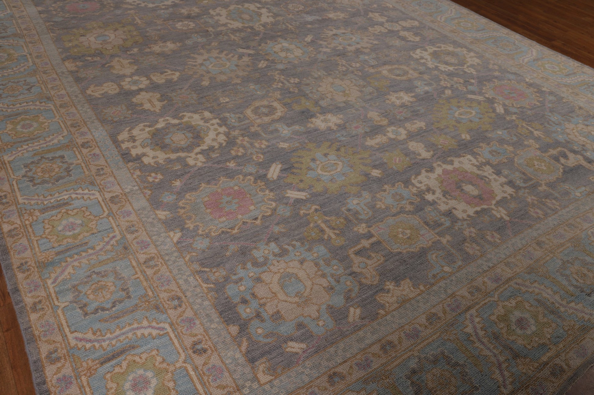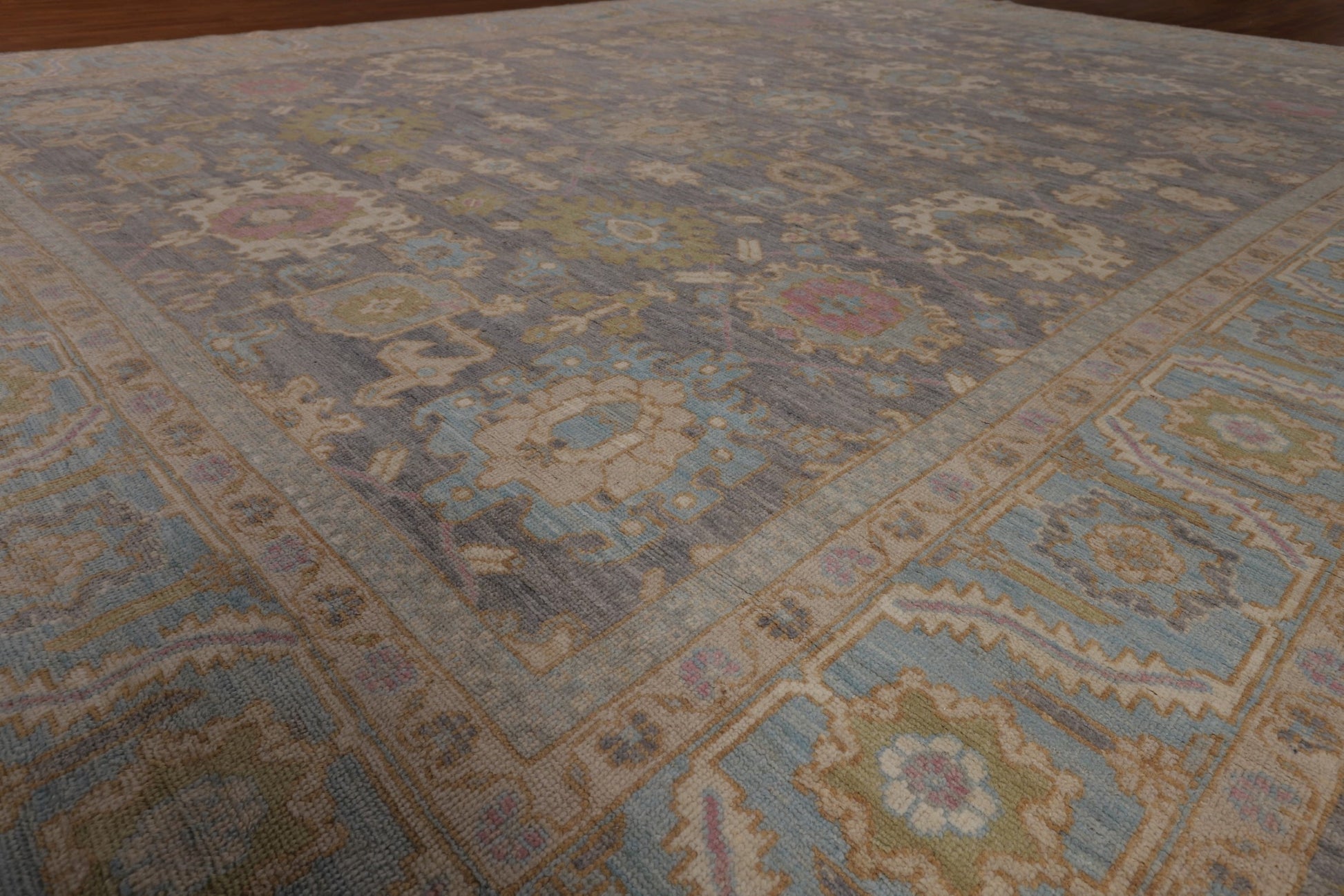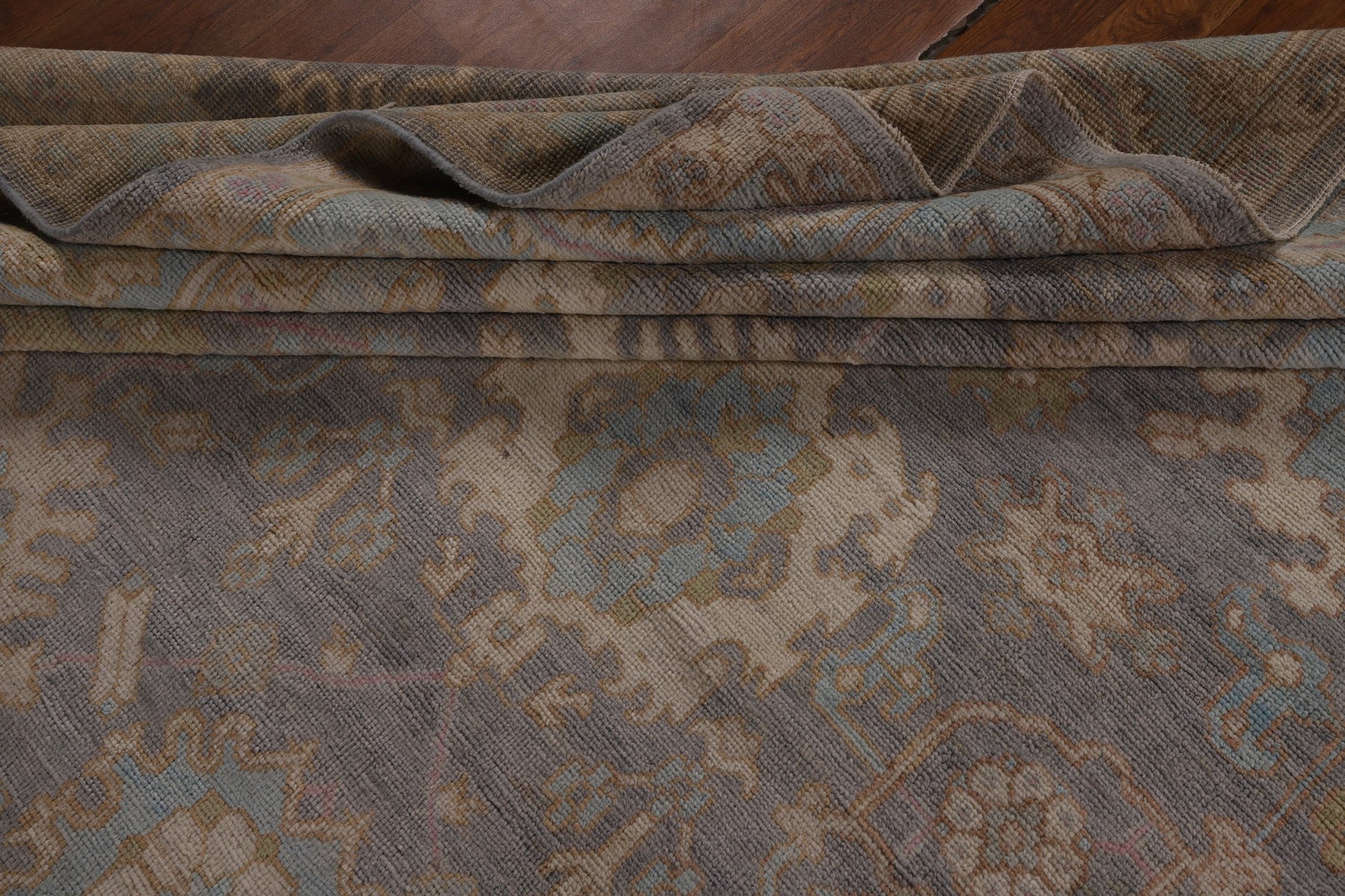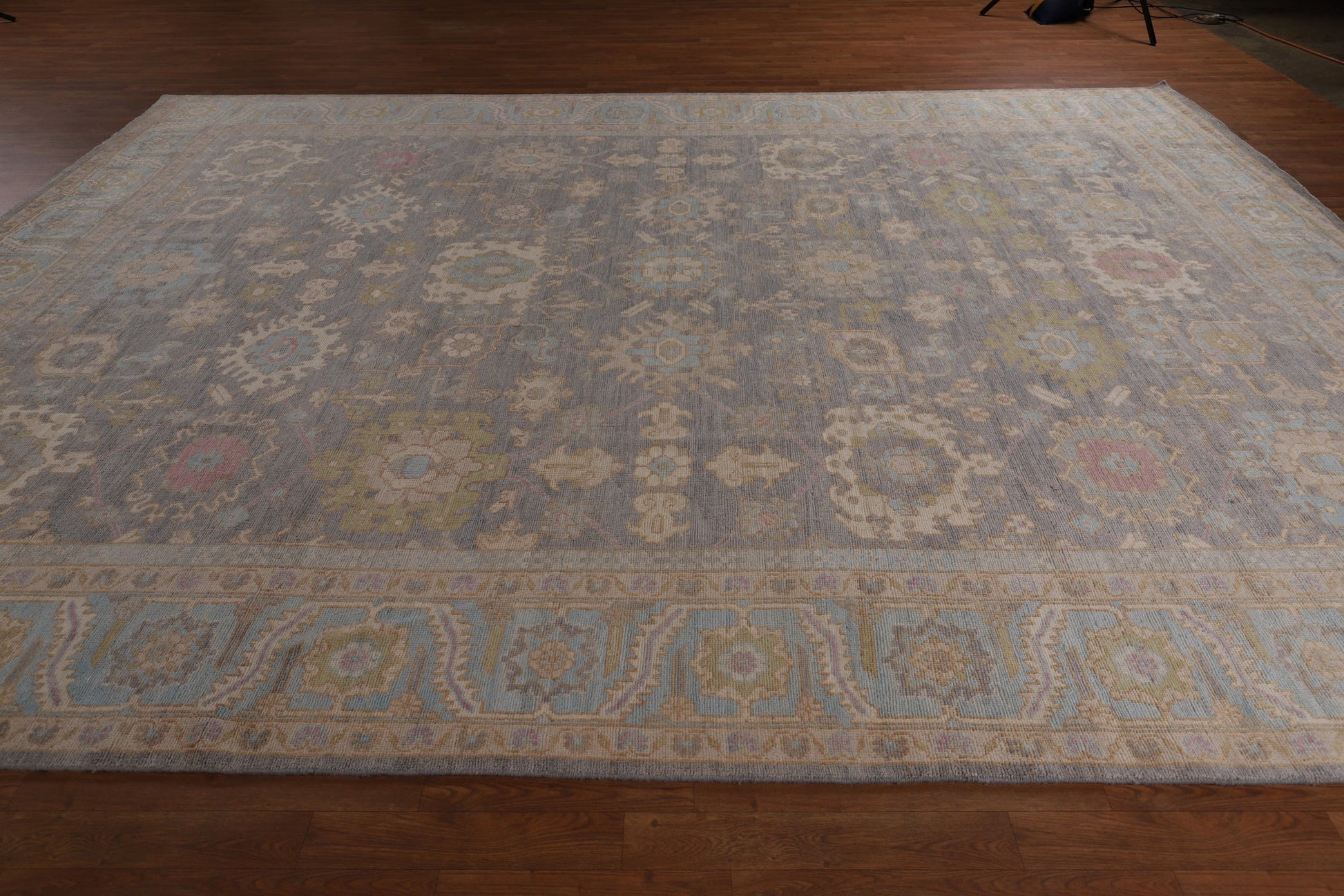 A Beautiful Genuine Turkey Oushak rug is Hand Knotted by skillful weavers in Turkey with 100% Wool Material. This rug is in New, First Quality condition. dimensions are 13' 8'' X 10' 3'' in foot and 417 X 312 in centimeter. the primary color is Greys & Charcoal.