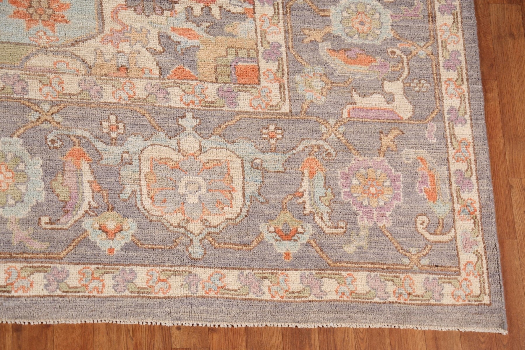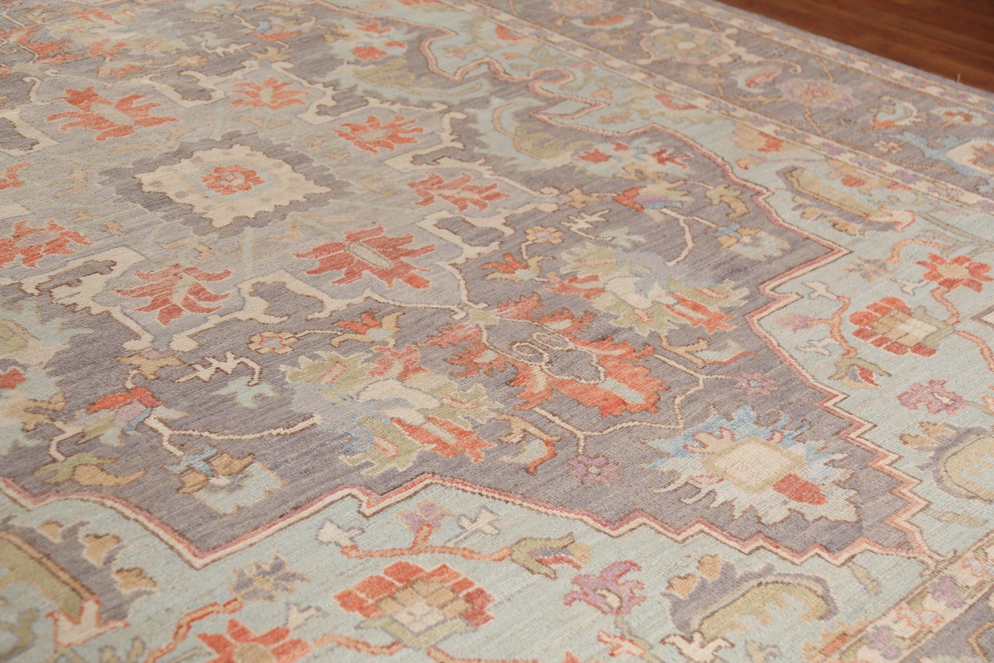 A Beautiful Genuine Turkey Oushak rug is Hand Knotted by skillful weavers in Turkey with 100% Wool Material. This rug is in New, First Quality condition. dimensions are 13' 9'' X 10' 2'' in foot and  419 X 310 in centimeter. the primary color is Greys & Charcoal.