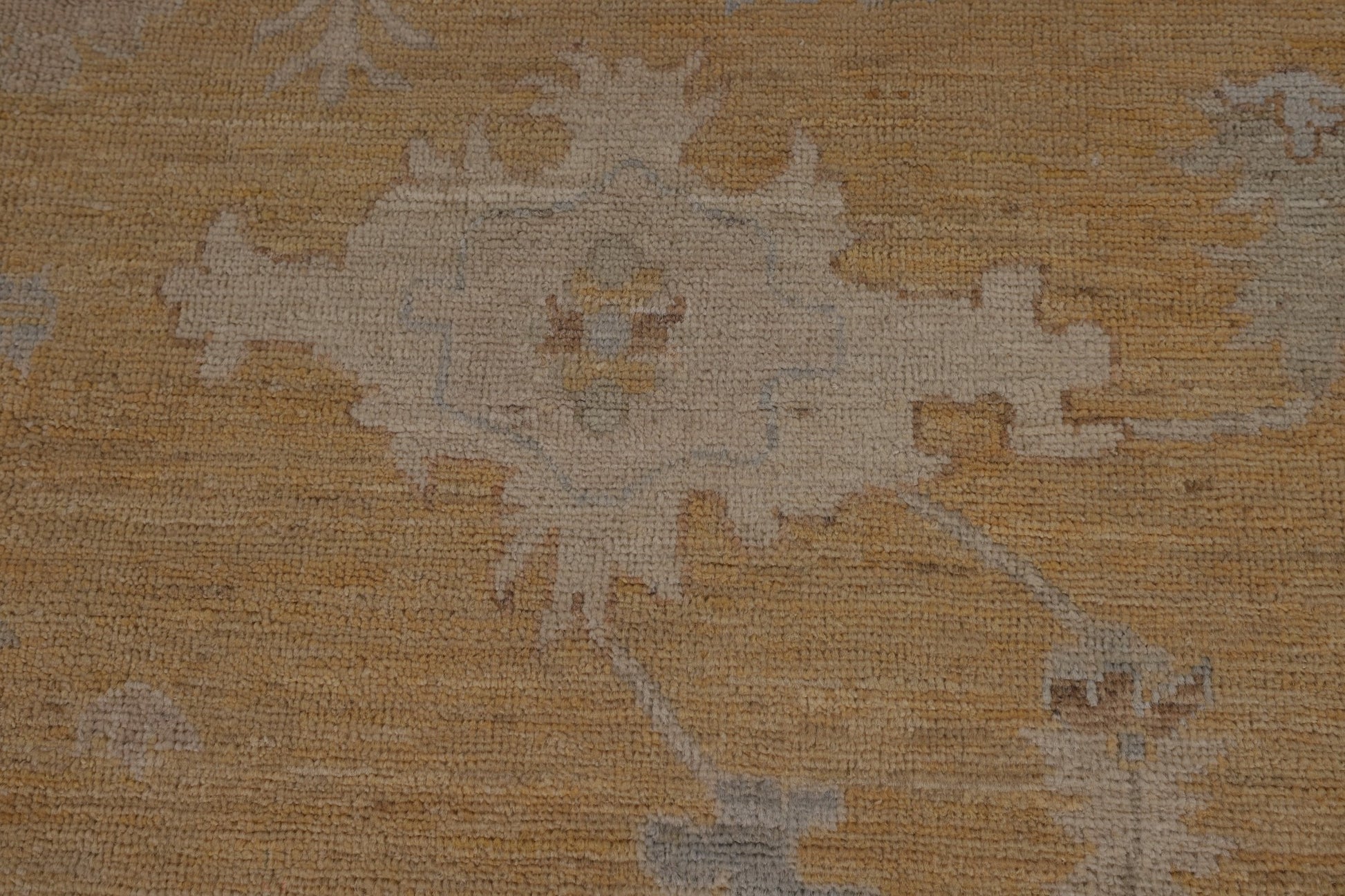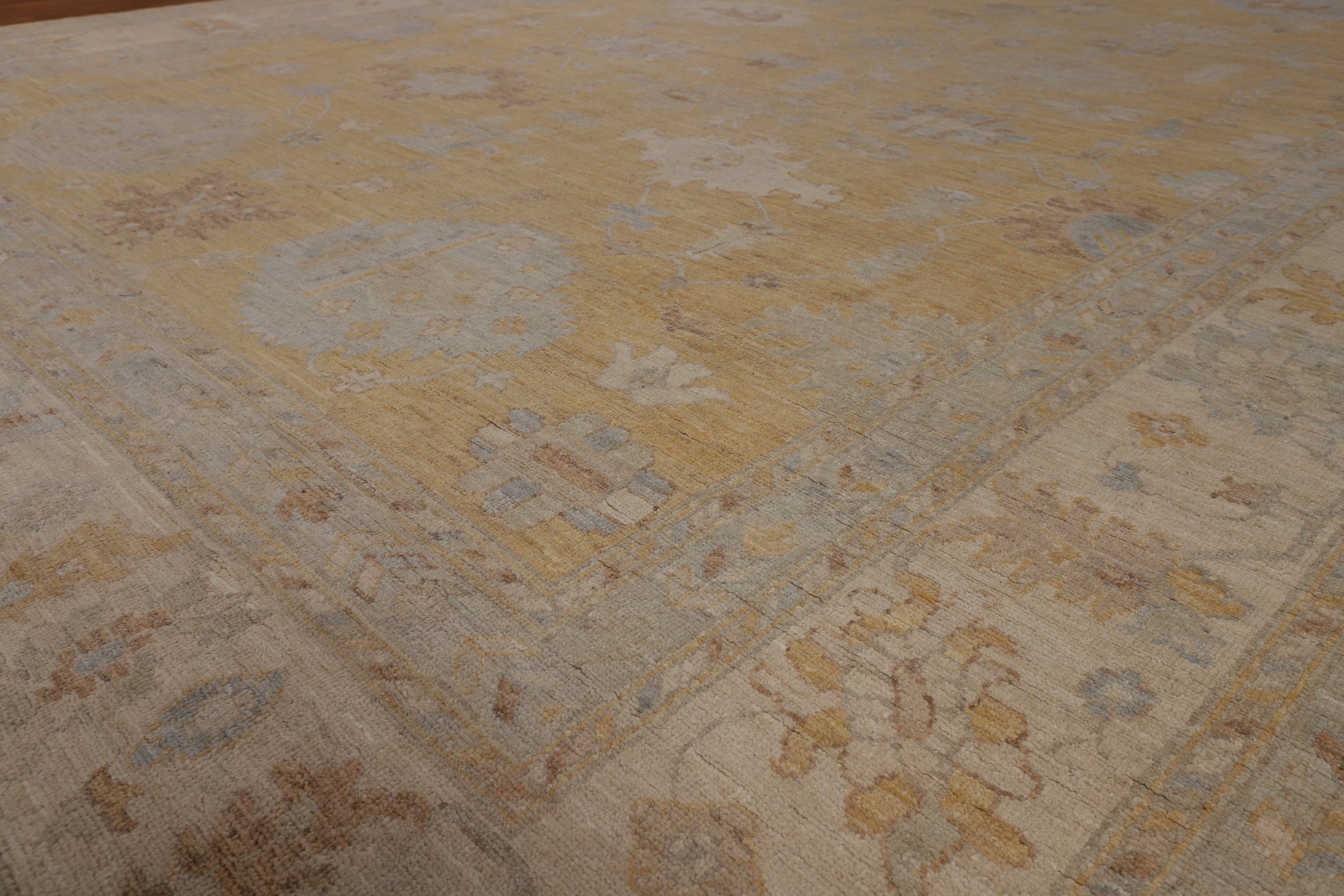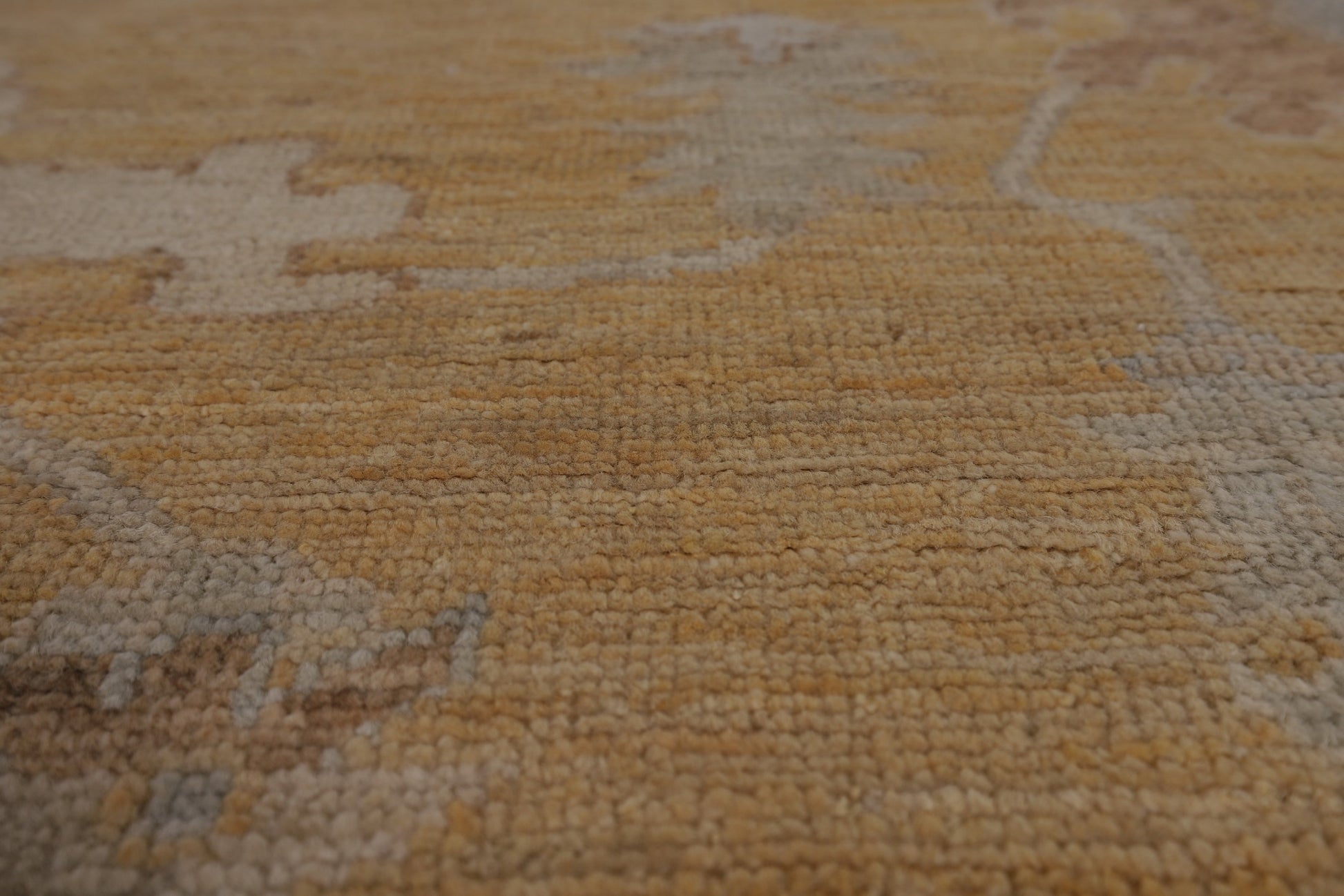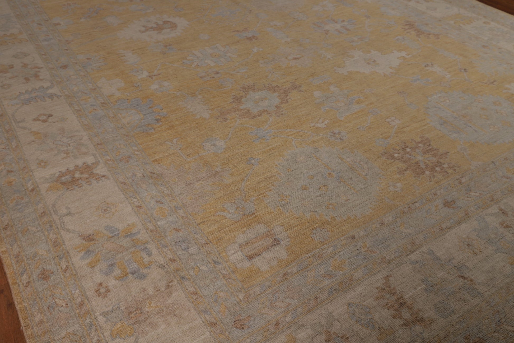 A Beautiful Genuine Turkey Oushak rug is Hand Knotted by skillful weavers in Turkey with 100% Wool Material. This rug is in New, First Quality condition. dimensions are 13' 10'' X 10' 5'' in foot and  422 X 318 in centimeter. the primary color is Yellow & Gold.