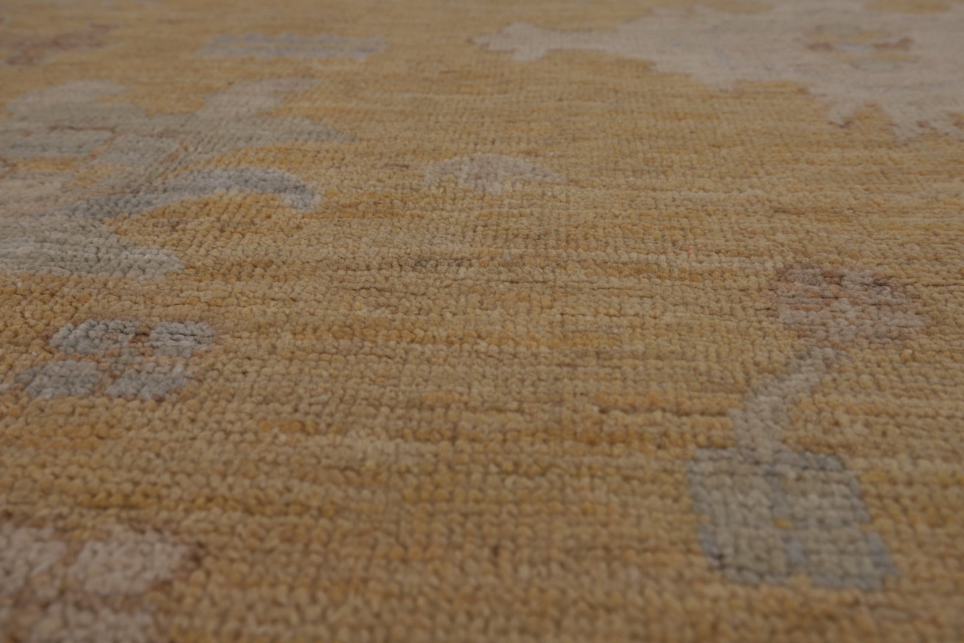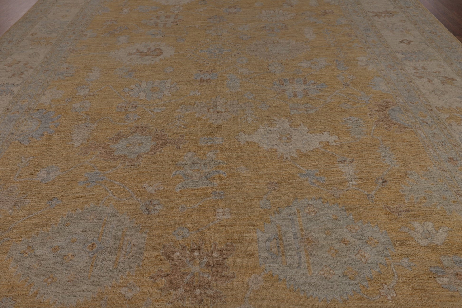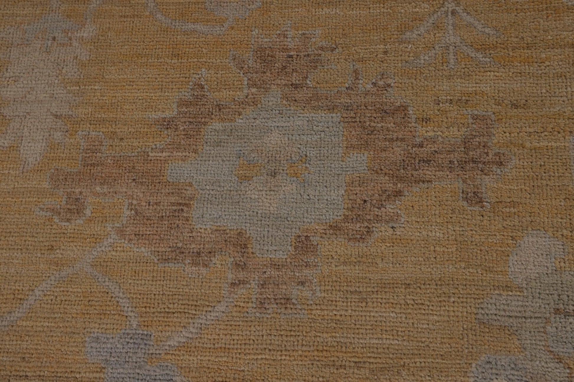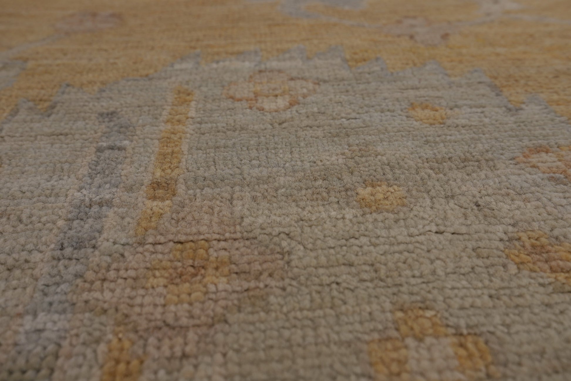 A Beautiful Genuine Turkey Oushak rug is Hand Knotted by skillful weavers in Turkey with 100% Wool Material. This rug is in New, First Quality condition. dimensions are 13' 10'' X 10' 5'' in foot and  422 X 318 in centimeter. the primary color is Yellow & Gold.