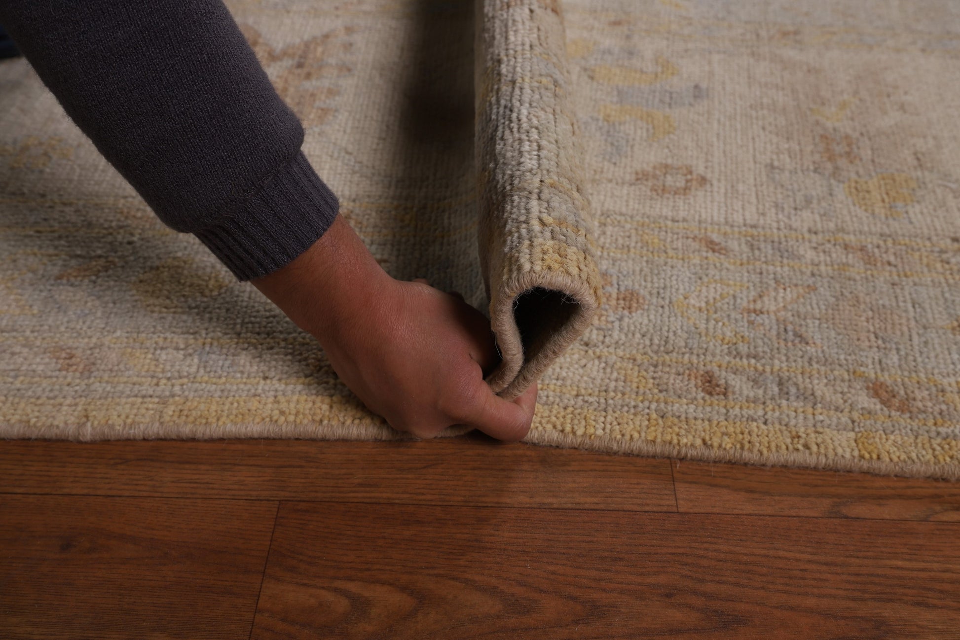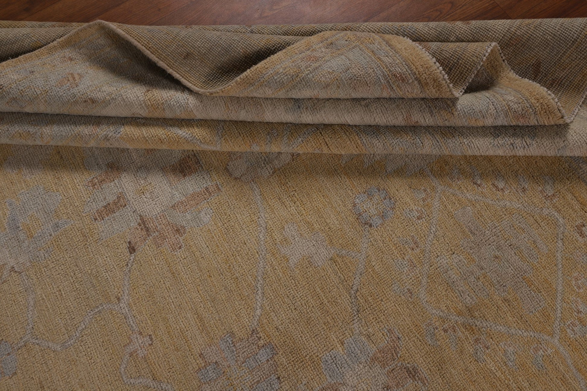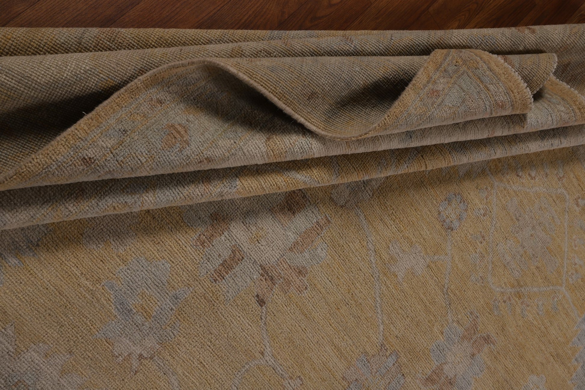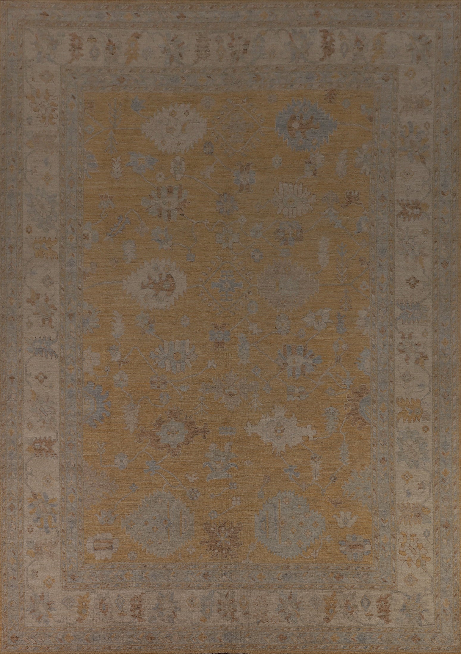 A Beautiful Genuine Turkey Oushak rug is Hand Knotted by skillful weavers in Turkey with 100% Wool Material. This rug is in New, First Quality condition. dimensions are 13' 10'' X 10' 5'' in foot and  422 X 318 in centimeter. the primary color is Yellow & Gold.