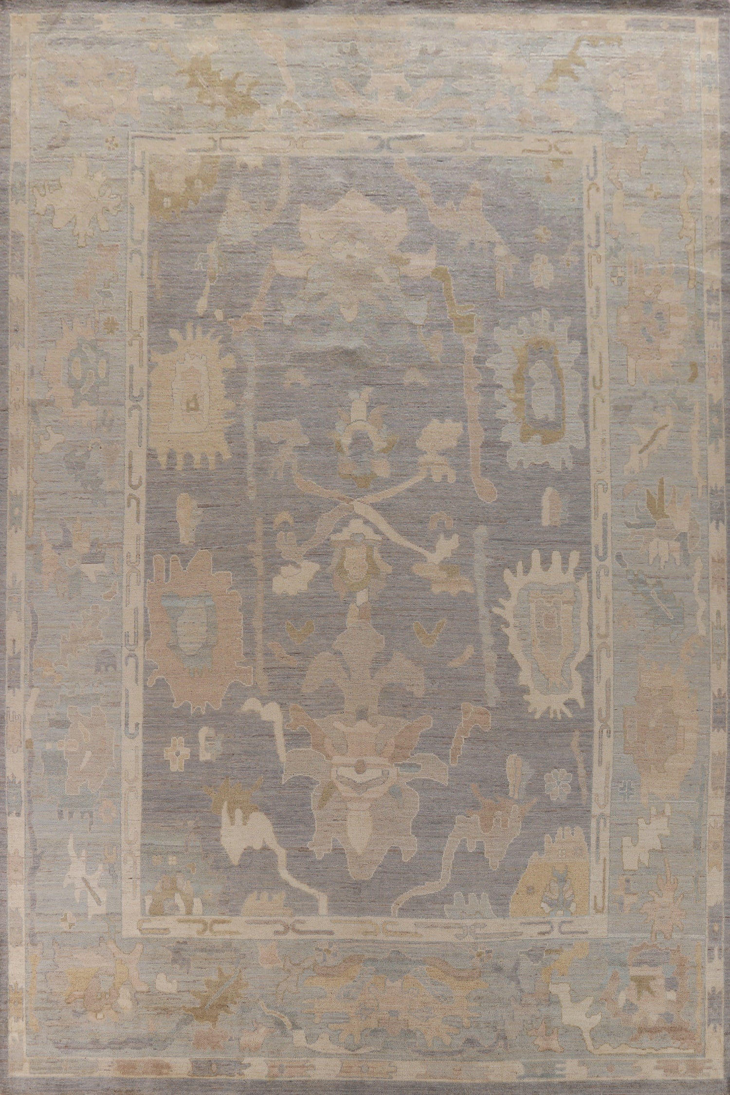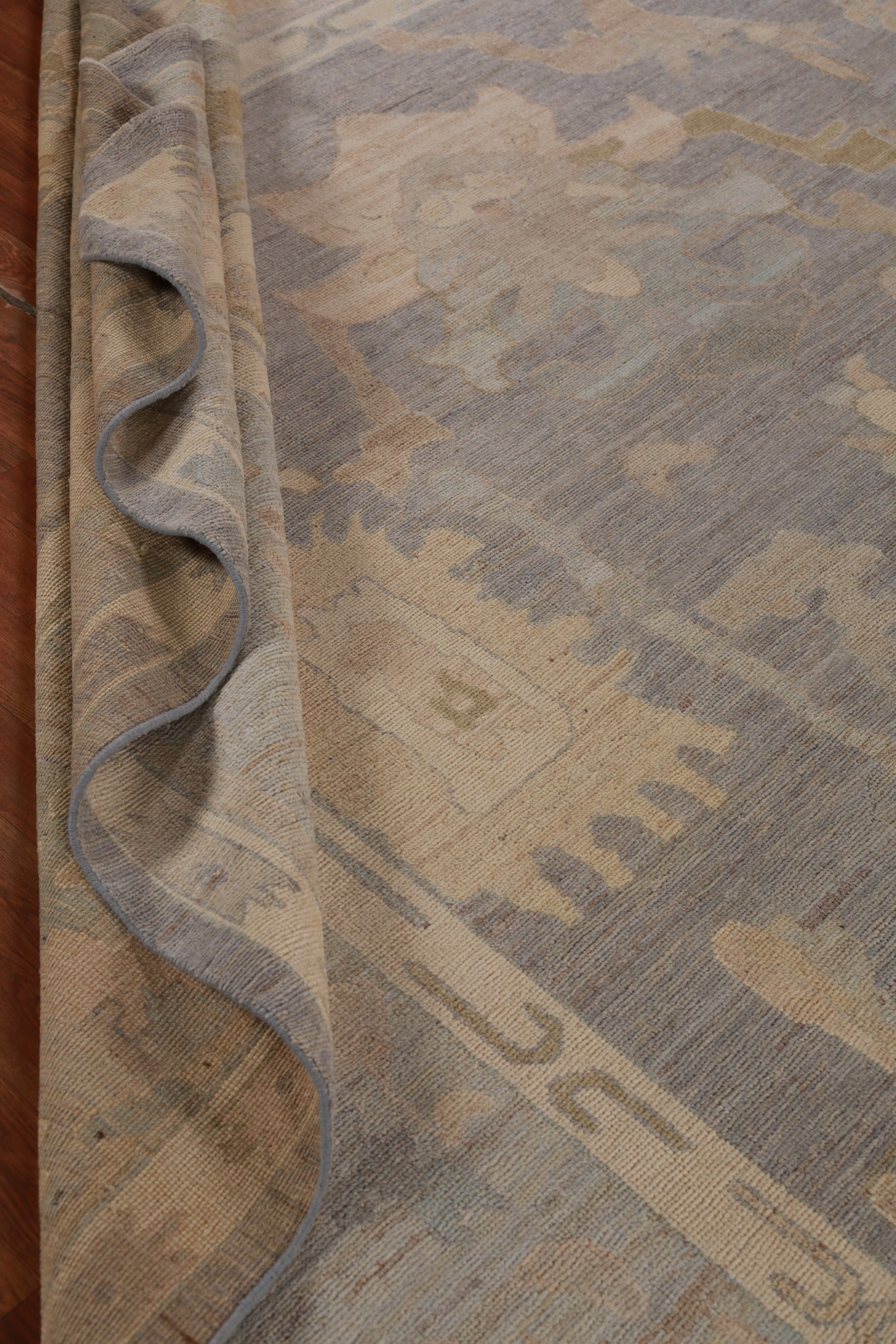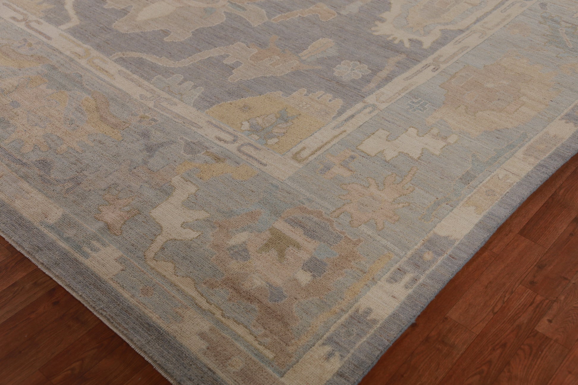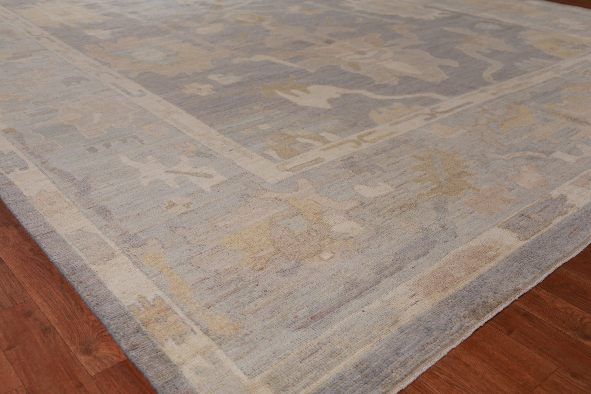 A Beautiful Genuine Turkey Oushak rug is Hand Knotted by skillful weavers in Turkey with 100% Wool Material. This rug is in New, First Quality condition. dimensions are 13' 9'' X 10' 1'' in foot and 419 X 307 in centimeter. the primary color is Greys & Charcoal.