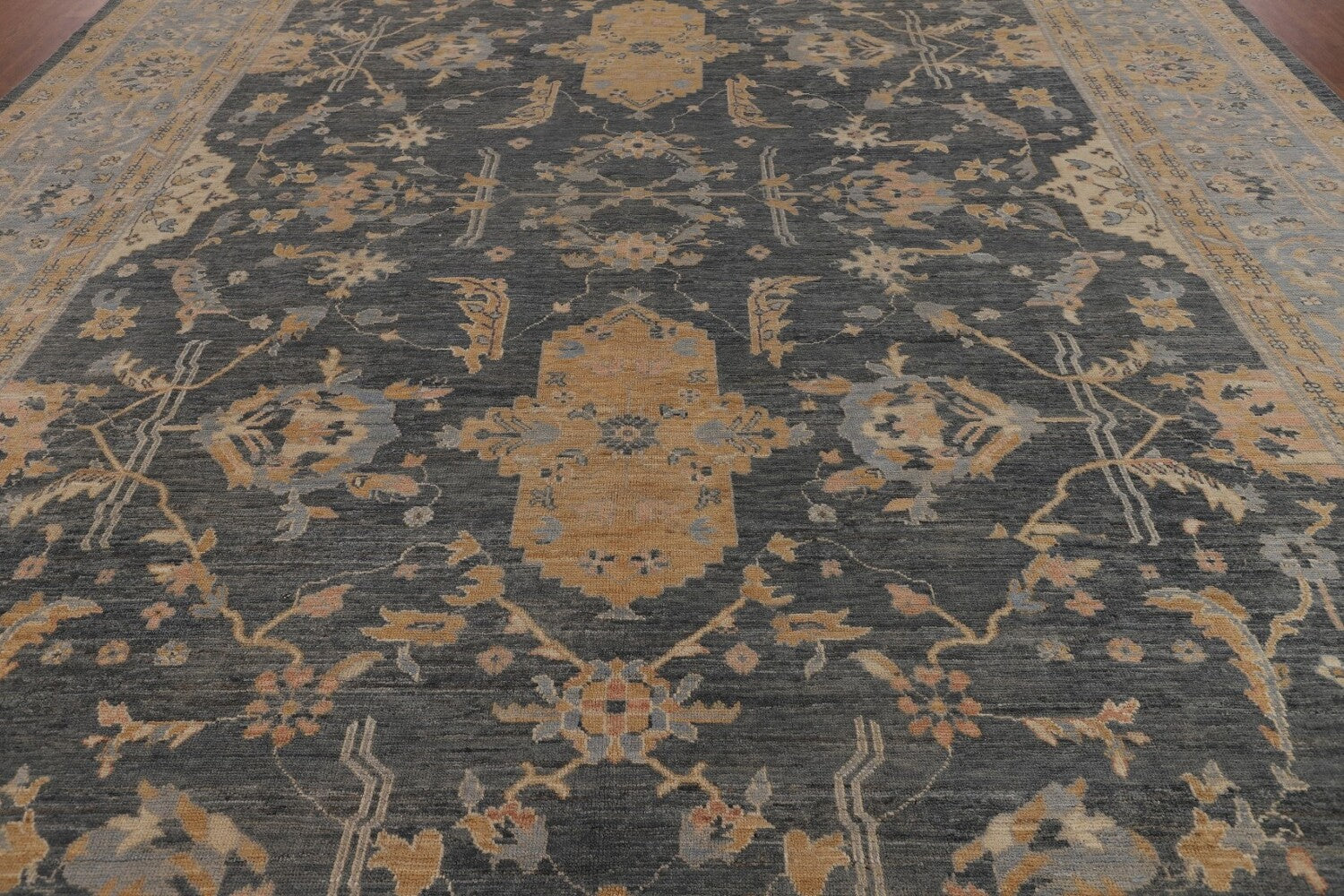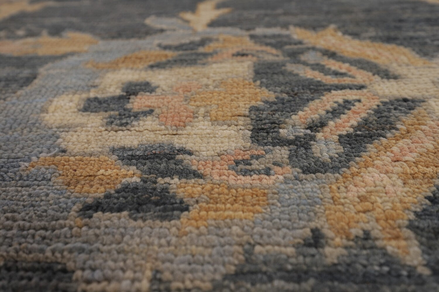A Beautiful Genuine Turkey Oushak rug is Hand Knotted by skillful weavers in Turkey with 100% Wool Material. This rug is in New, First Quality condition. dimensions are 14' 7'' X 11' 11'' in foot and 445 X 363 in centimeter. the primary color is Greys & Charcoal.