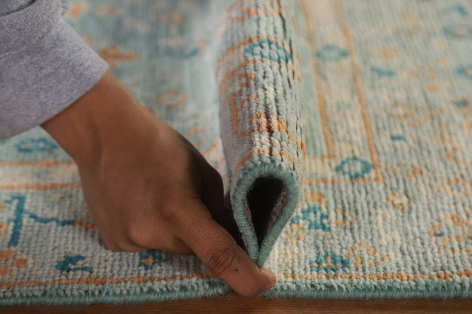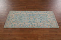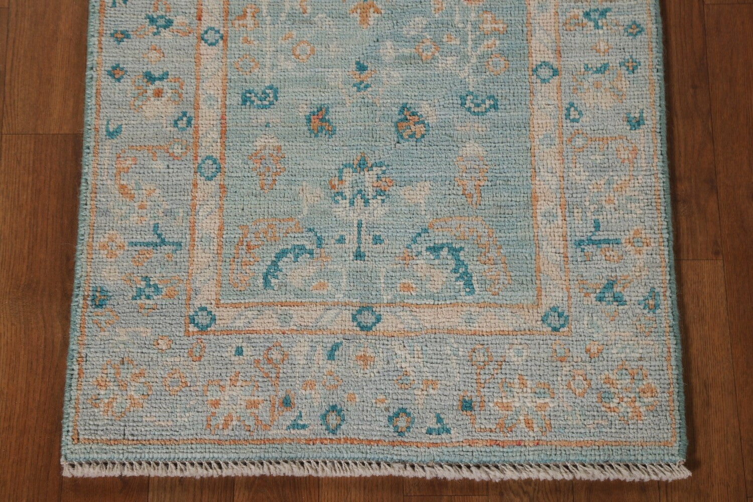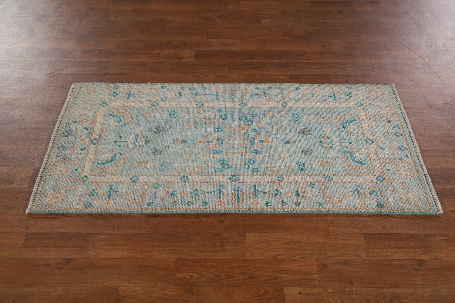 A Beautiful Genuine Turkey Oushak rug is Hand Knotted by skillful weavers in Turkey with 100% Wool Material. This rug is in New, First Quality condition. dimensions are 4' 1'' X 2' 0'' in foot and 124 X 61 in centimeter. the primary color is Navy Blue & Blues.