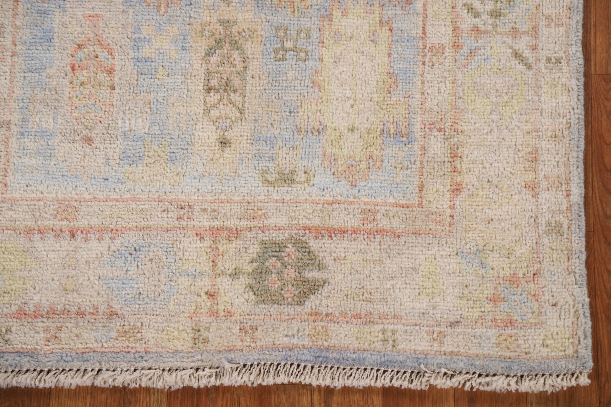 A Beautiful Genuine Turkey Oushak rug is Hand Knotted by skillful weavers in Turkey with 100% Wool Material. This rug is in New, First Quality condition. dimensions are 3' 11'' X 2' 11'' in foot and 119 X 89 in centimeter. the primary color is Navy Blue & Blues.