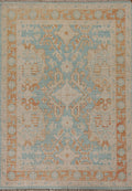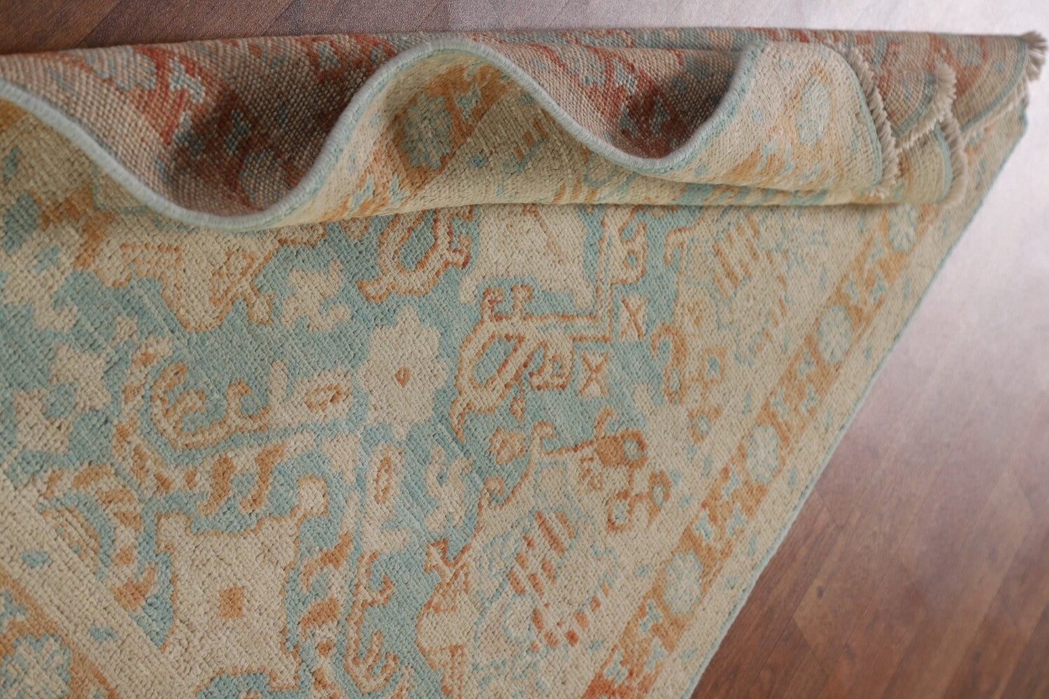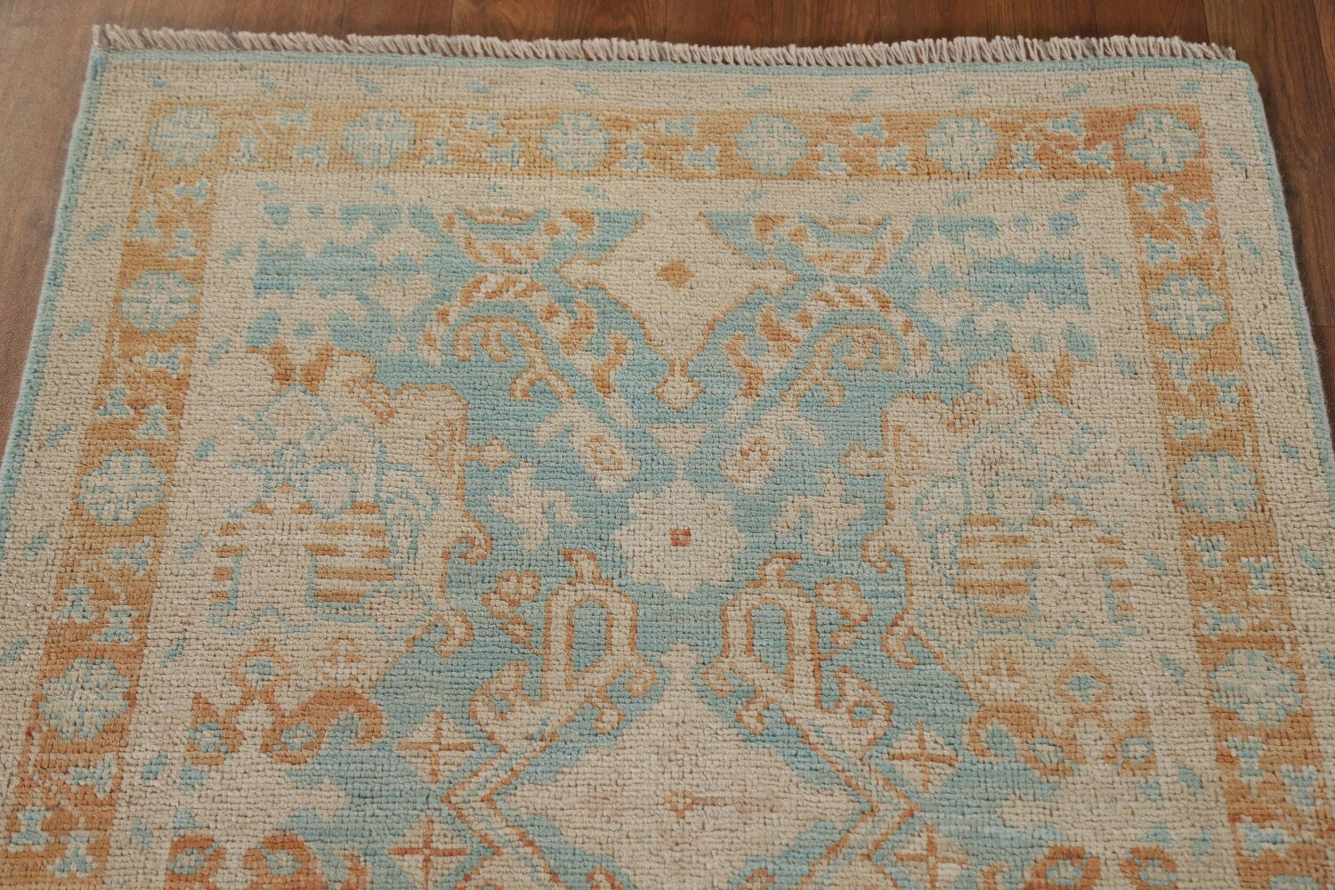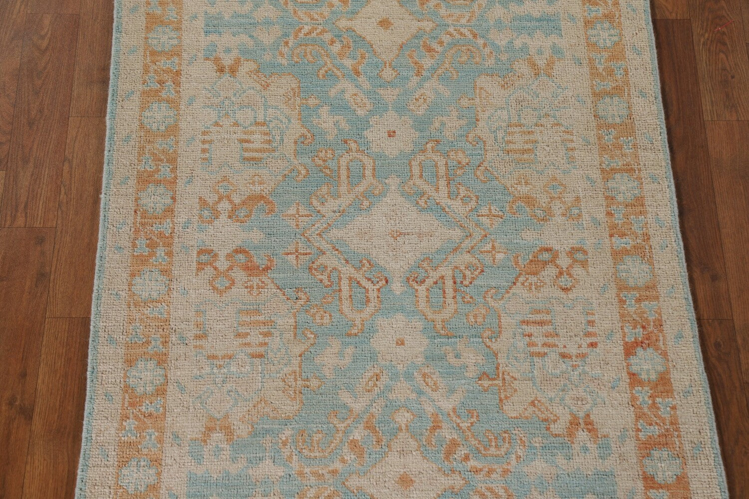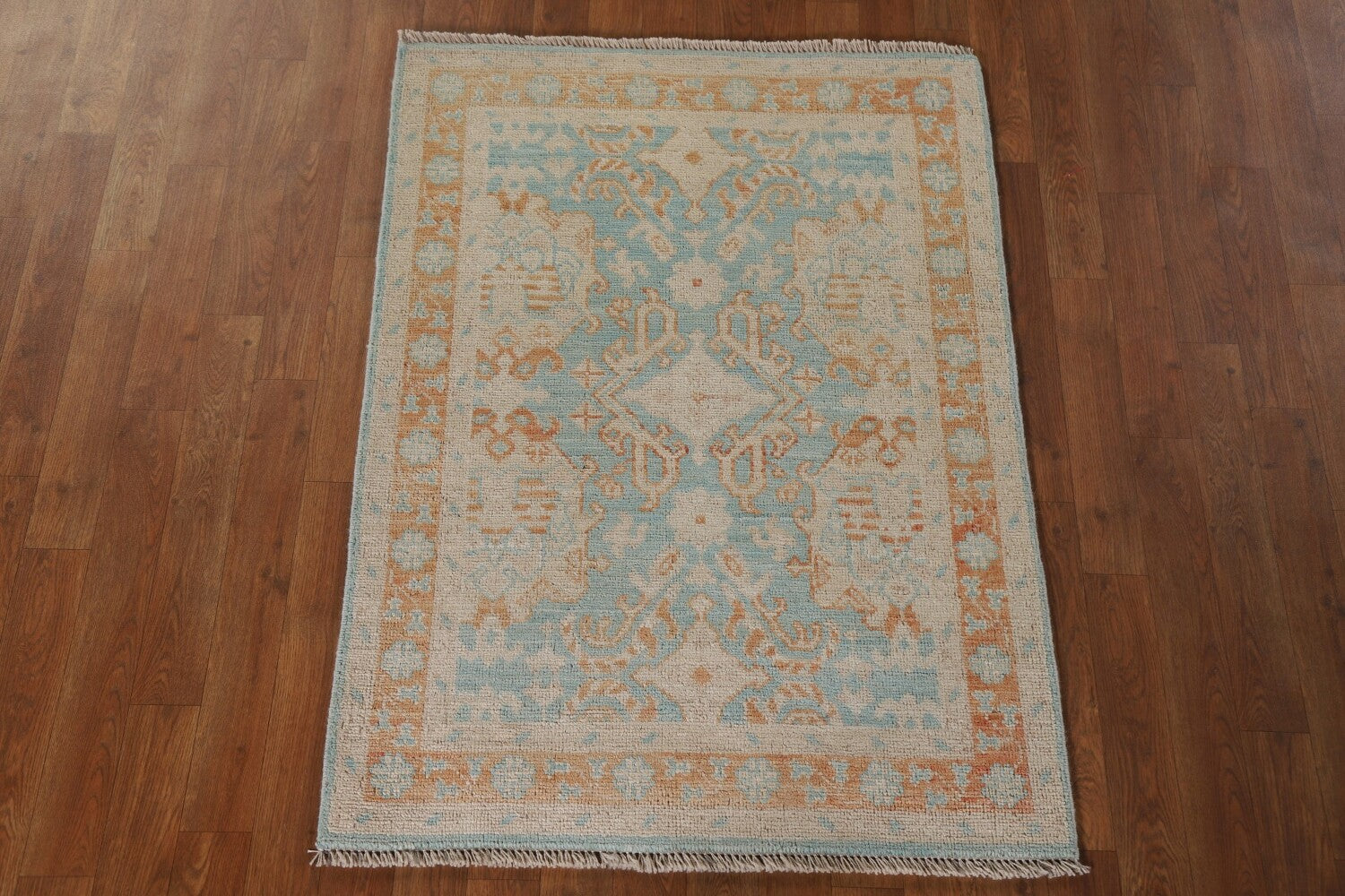 A Beautiful Genuine Turkey Oushak rug is Hand Knotted by skillful weavers in Turkey with 100% Wool Material. This rug is in New, First Quality condition. dimensions are 3' 11'' X 2' 10'' in foot and 119 X 86 in centimeter. the primary color is Navy Blue & Blues.