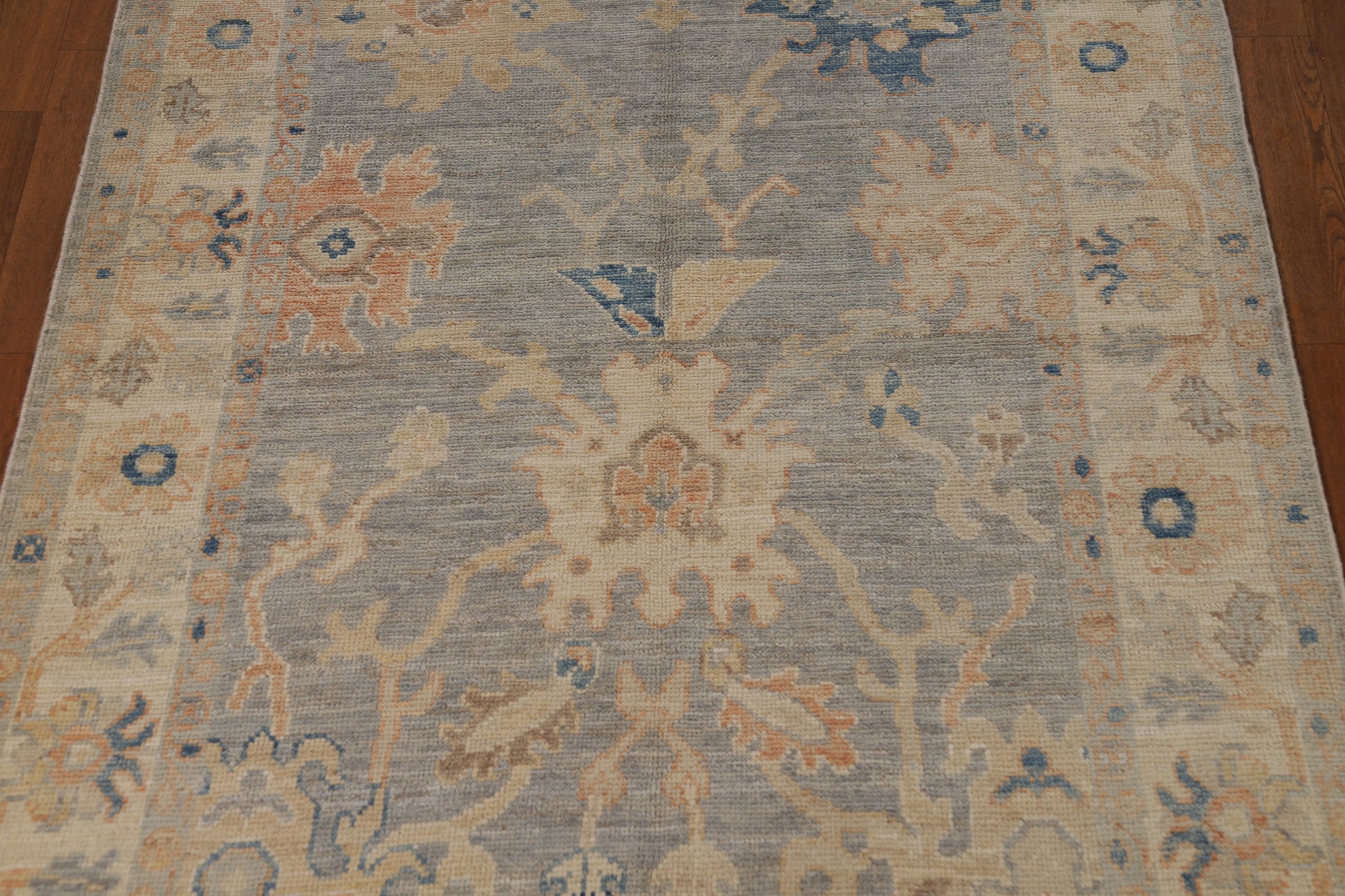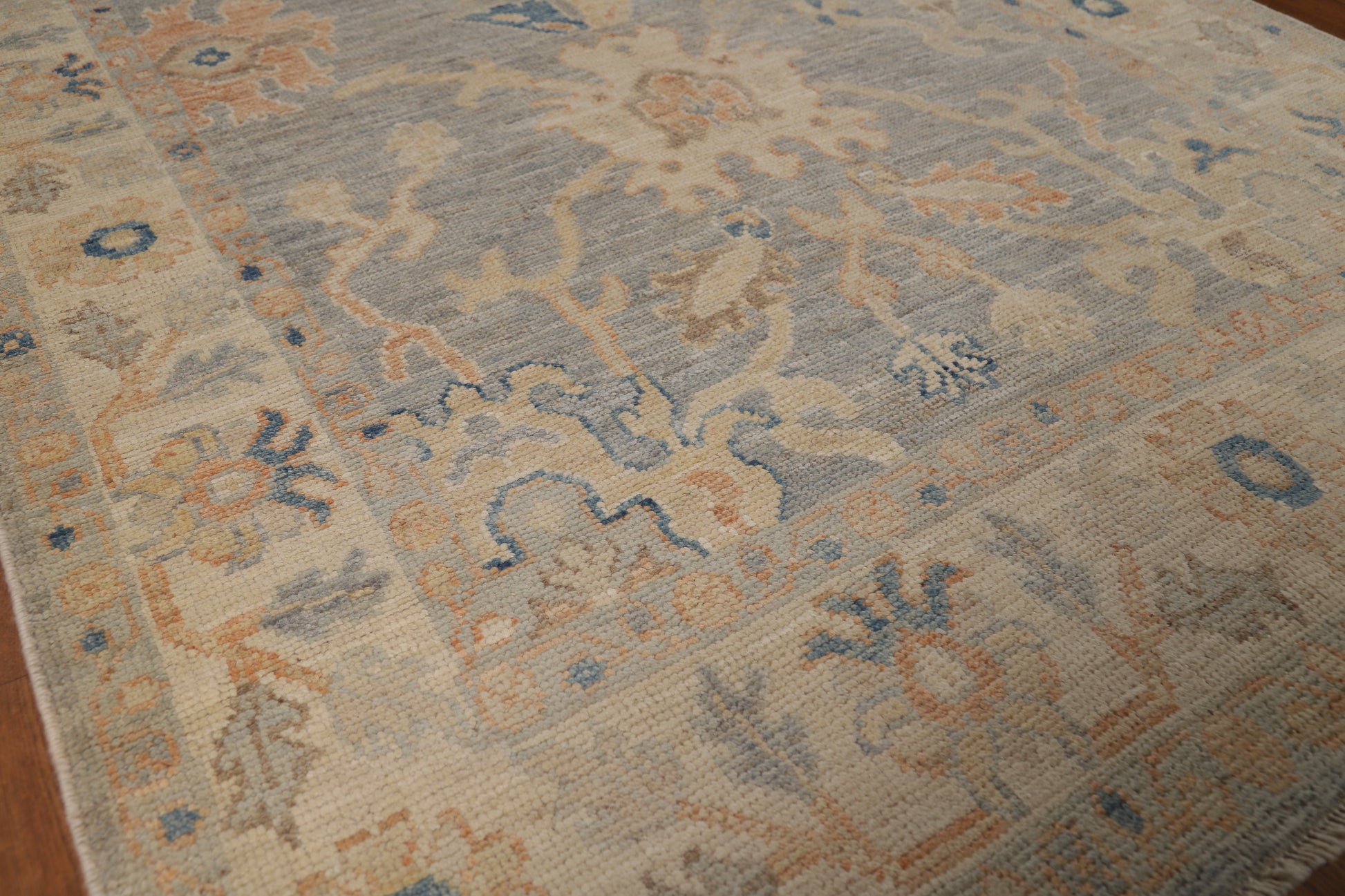 A Beautiful Genuine Turkey Oushak rug is Hand Knotted by skillful weavers in Turkey with 100% Wool Material. This rug is in New, First Quality condition. dimensions are 6' 7'' X 4' 2'' in foot and 201 X 127 in centimeter. the primary color is Greys & Charcoal.