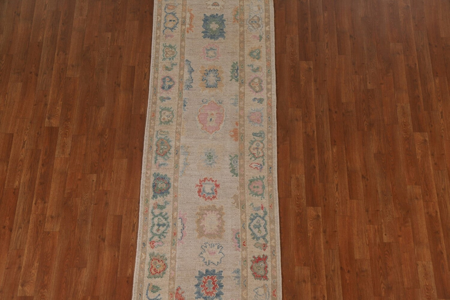 Vegetable Dye Oushak Turkish Runner Rug 3x10