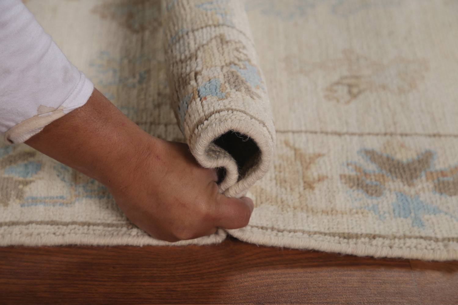 A Beautiful Genuine Turkey Oushak rug is Hand Knotted by skillful weavers in Turkey with 100% Wool Material. This rug is in New, First Quality condition. dimensions are 10' 0'' X 3' 1'' in foot and 305 X 94 in centimeter. the primary color is Beige & Ivories.
