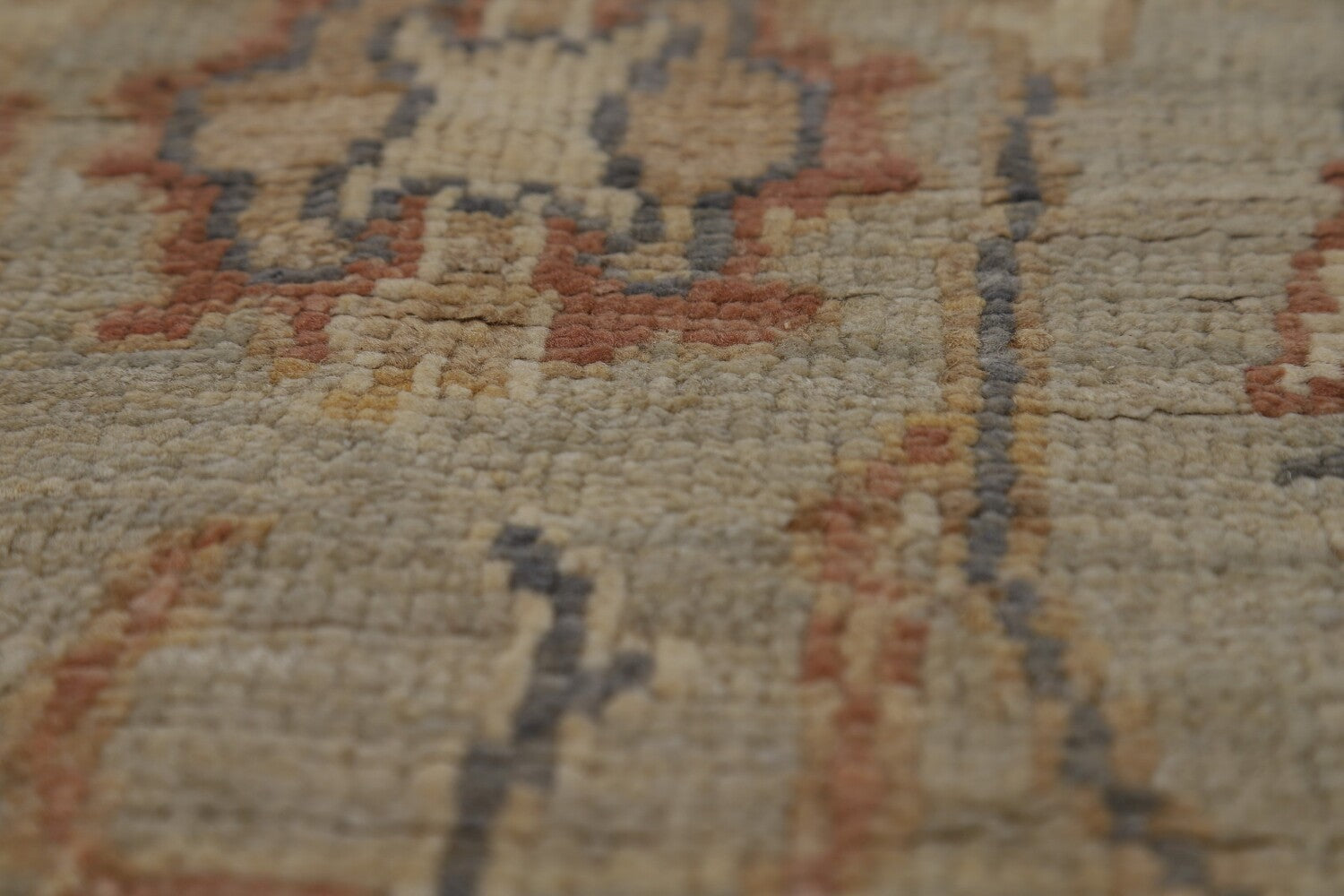 A Beautiful Genuine Turkey Oushak rug is Hand Knotted by skillful weavers in Turkey with 100% Wool Material. This rug is in New, First Quality condition. dimensions are 10' 0'' X 3' 2'' in foot and 305 X 97 in centimeter. the primary color is Beige & Ivories.