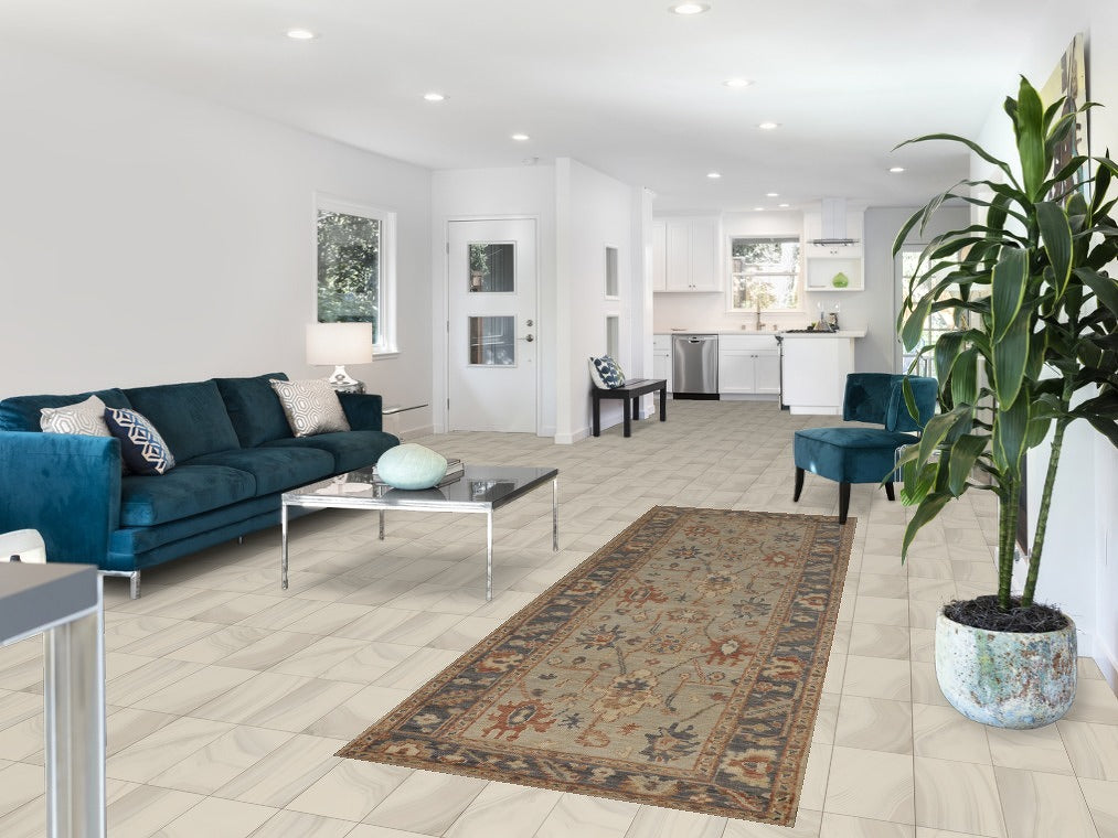 Vegetable Dye Oushak Turkish Runner Rug 3x10