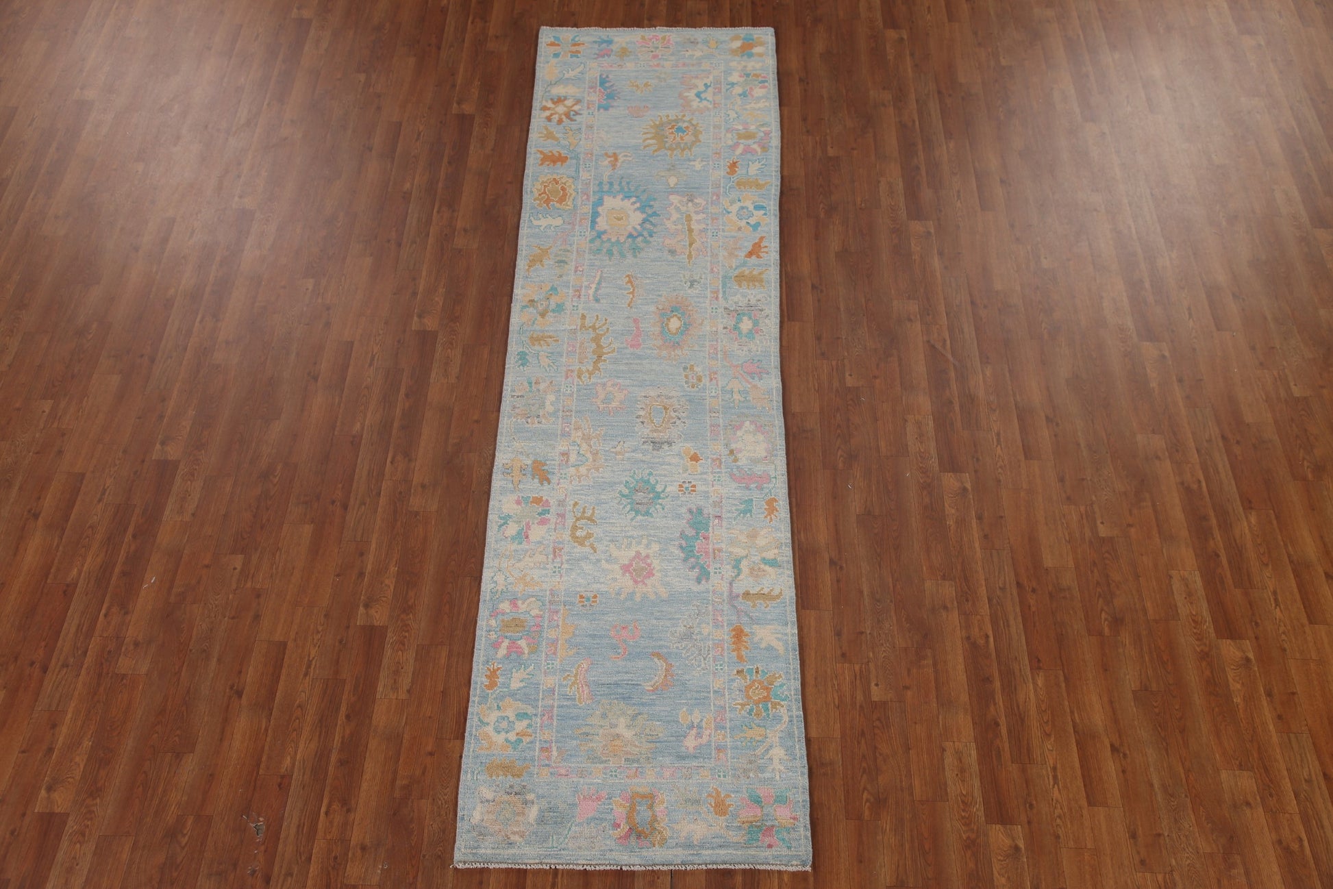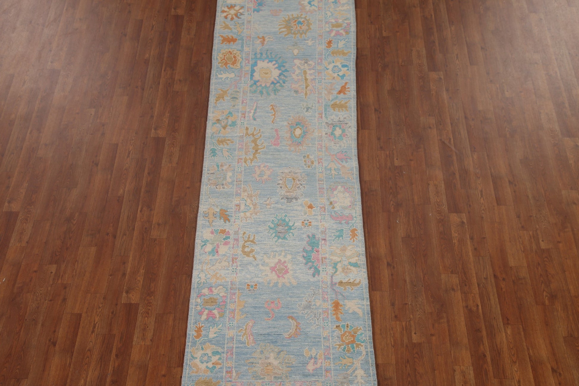 Vegetable Dye Oushak Turkish Runner Rug 3x10