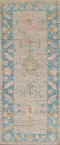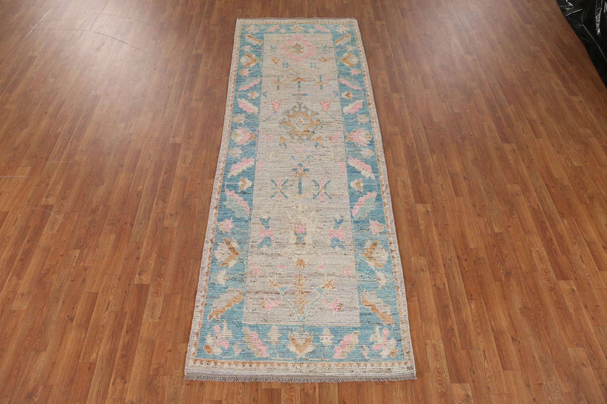 Vegetable Dye Oushak Turkish Runner Rug 3x10