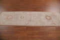 A Beautiful Genuine Turkey Oushak rug is Hand Knotted by skillful weavers in Turkey with 100% Wool Material. This rug is in New, First Quality condition. dimensions are 9' 8'' X 2' 11'' in foot and 295 X 89 in centimeter. the primary color is Beige & Ivories.