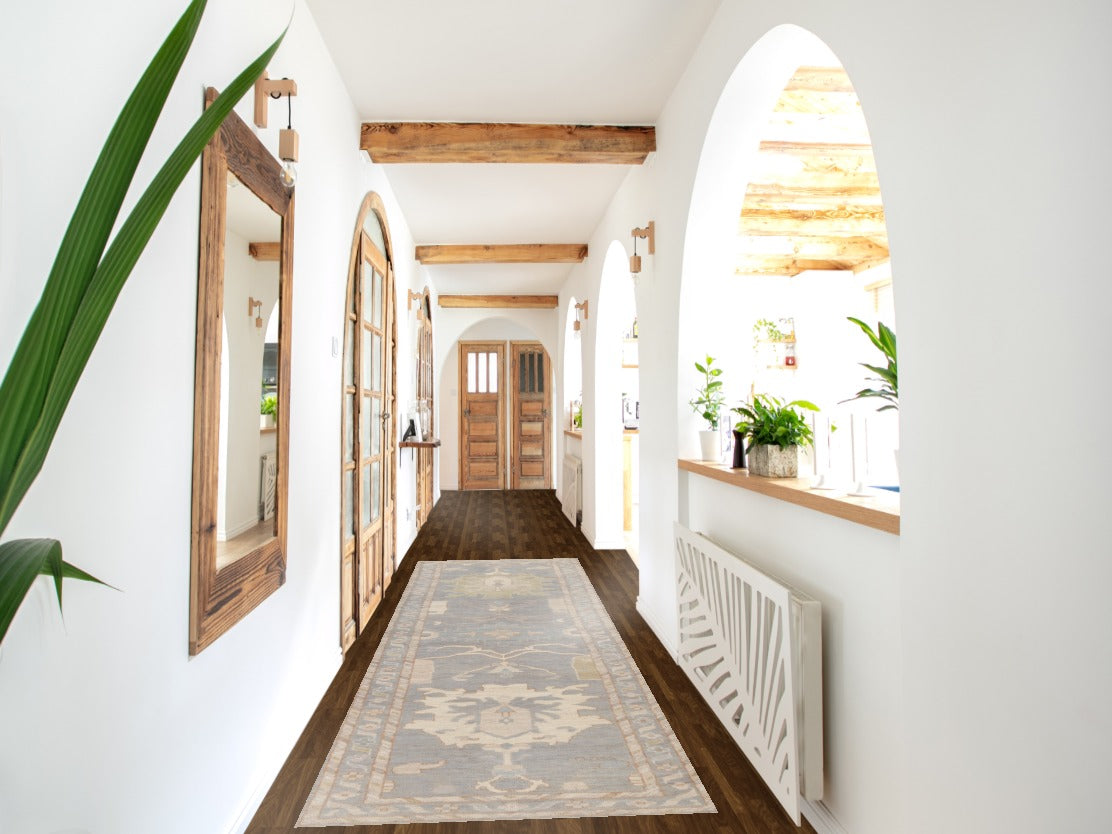 Vegetable Dye Oushak Turkish Runner Rug 3x12