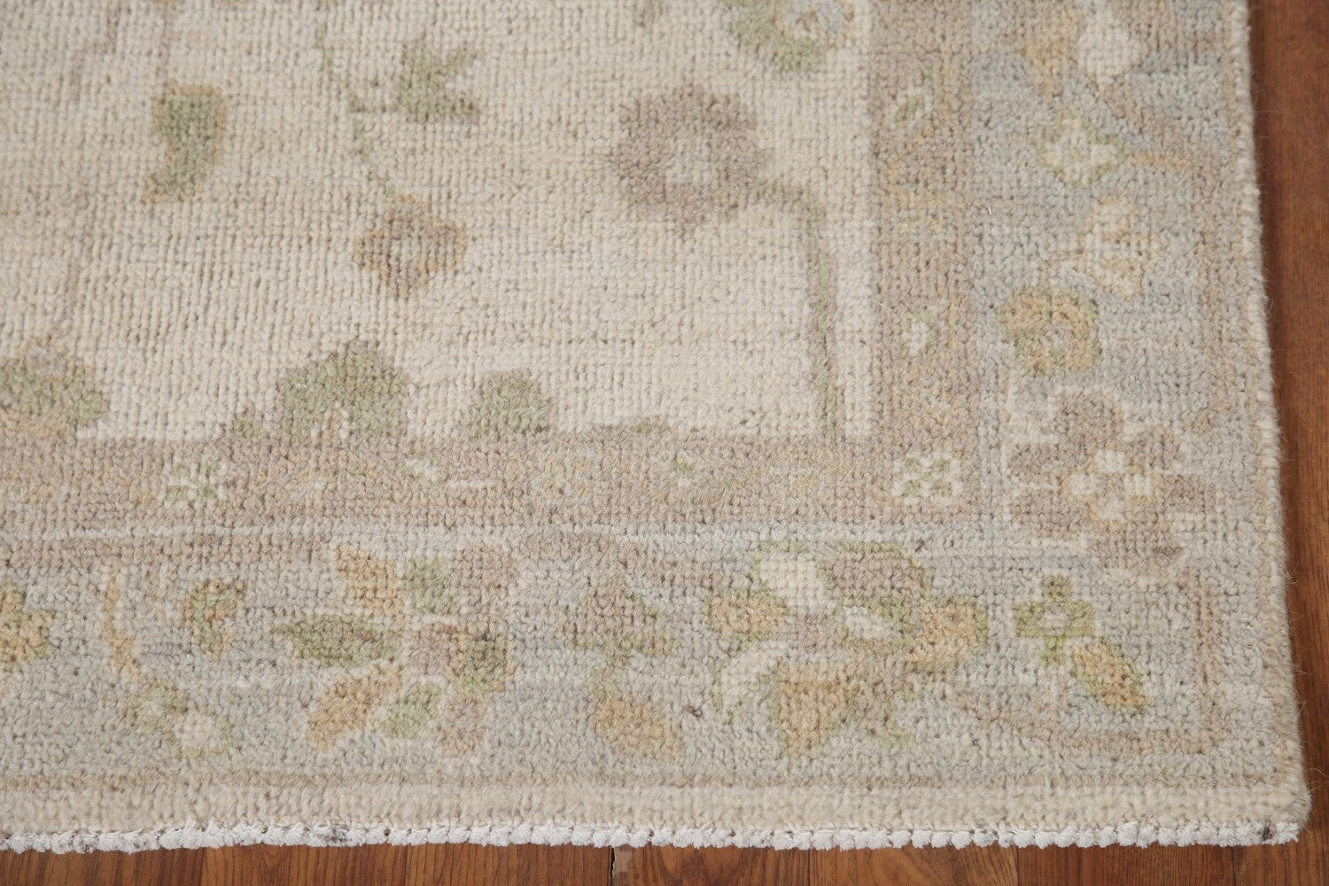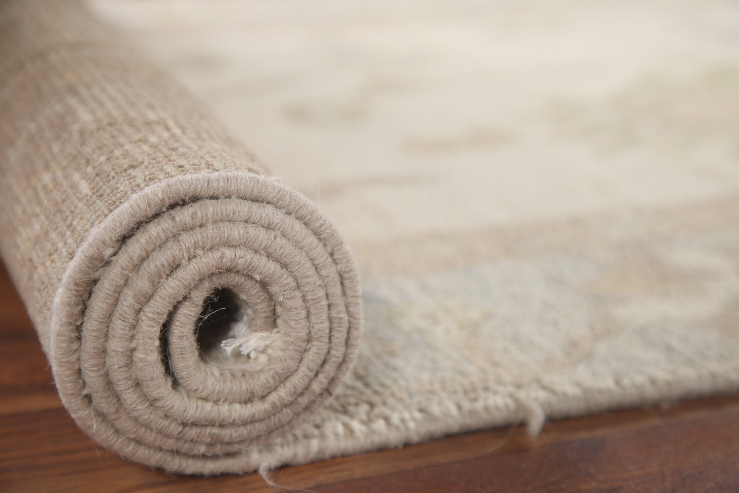 A Beautiful Genuine Turkey Oushak rug is Hand Knotted by skillful weavers in Turkey with 100% Wool Material. This rug is in New, First Quality condition. dimensions are 11' 7'' X 2' 7'' in foot and 353 X 79 in centimeter. the primary color is Beige & Ivories.