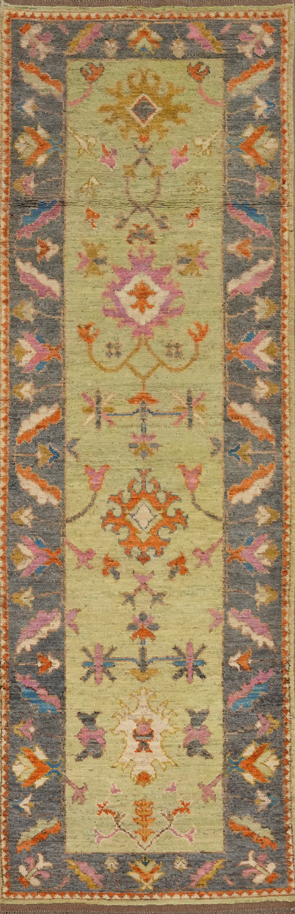 Vegetable Dye Oushak Turkish Runner Rug 3x13