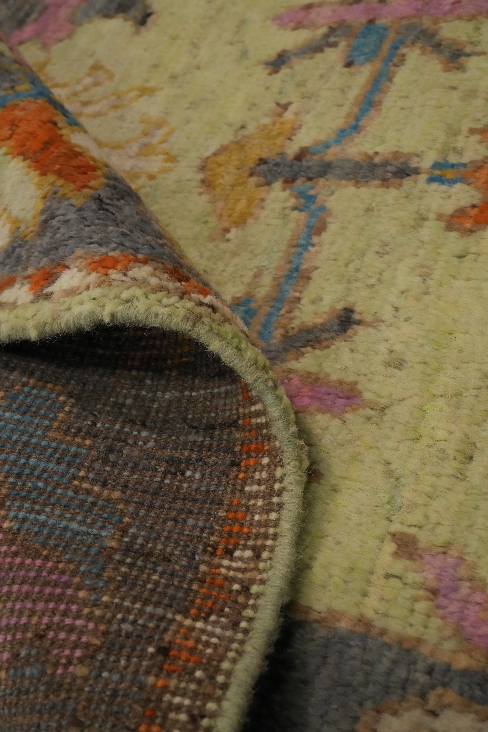 A Beautiful Genuine Turkey Oushak rug is Hand Knotted by skillful weavers in Turkey with 100% Wool Material. This rug is in New, First Quality condition. dimensions are 13' 0'' X 3' 4'' in foot and 396 X 102 in centimeter. the primary color is Green.