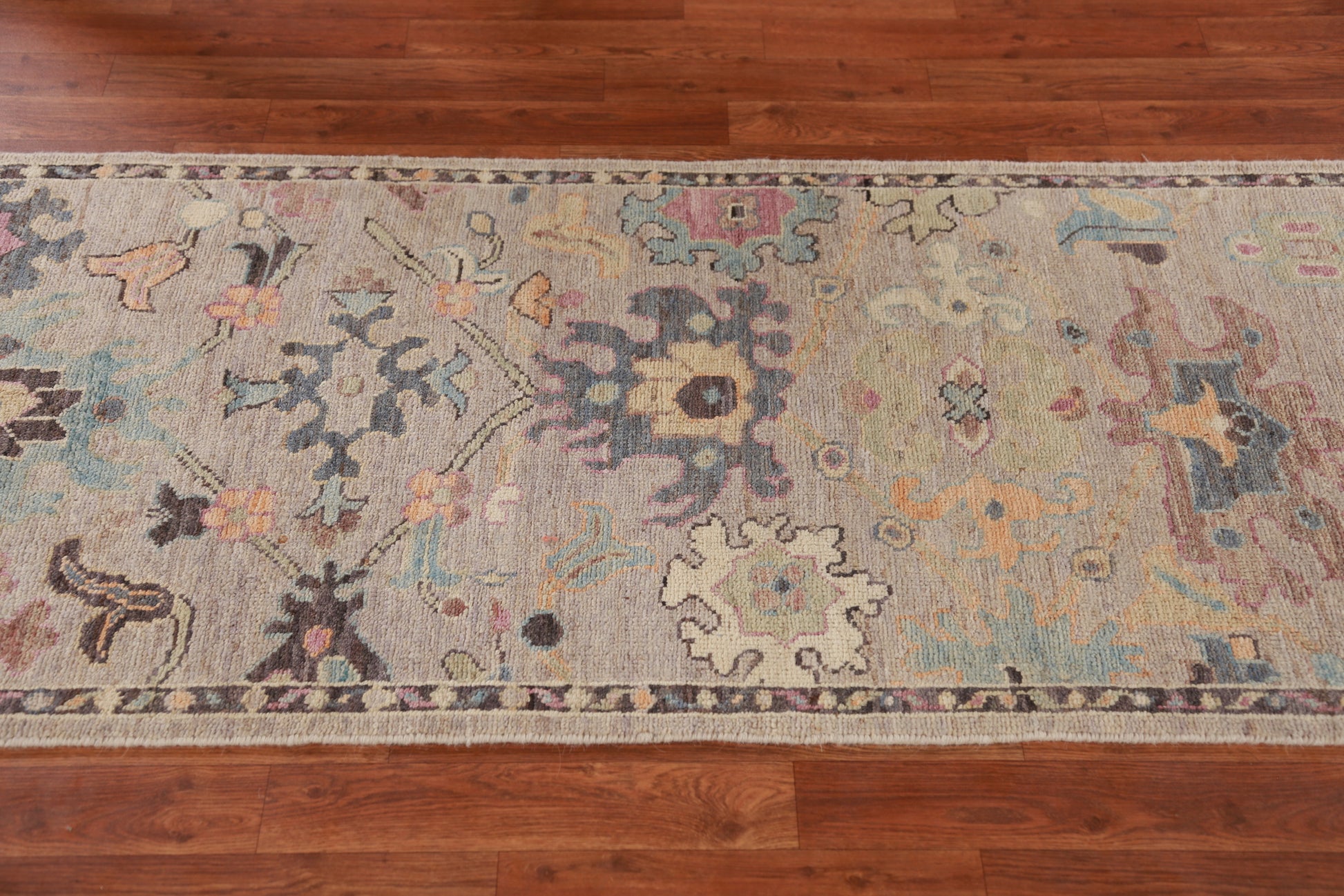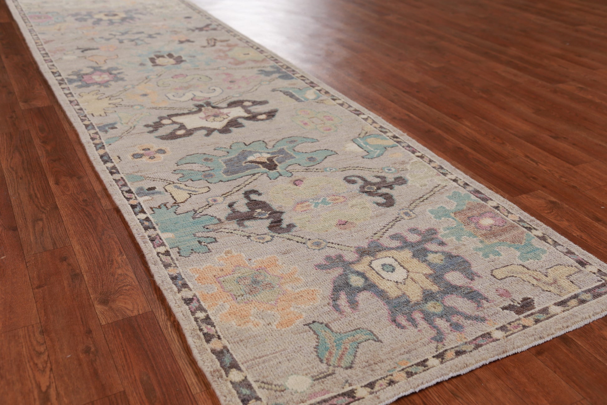 Vegetable Dye Oushak Turkish Runner Rug 3x14