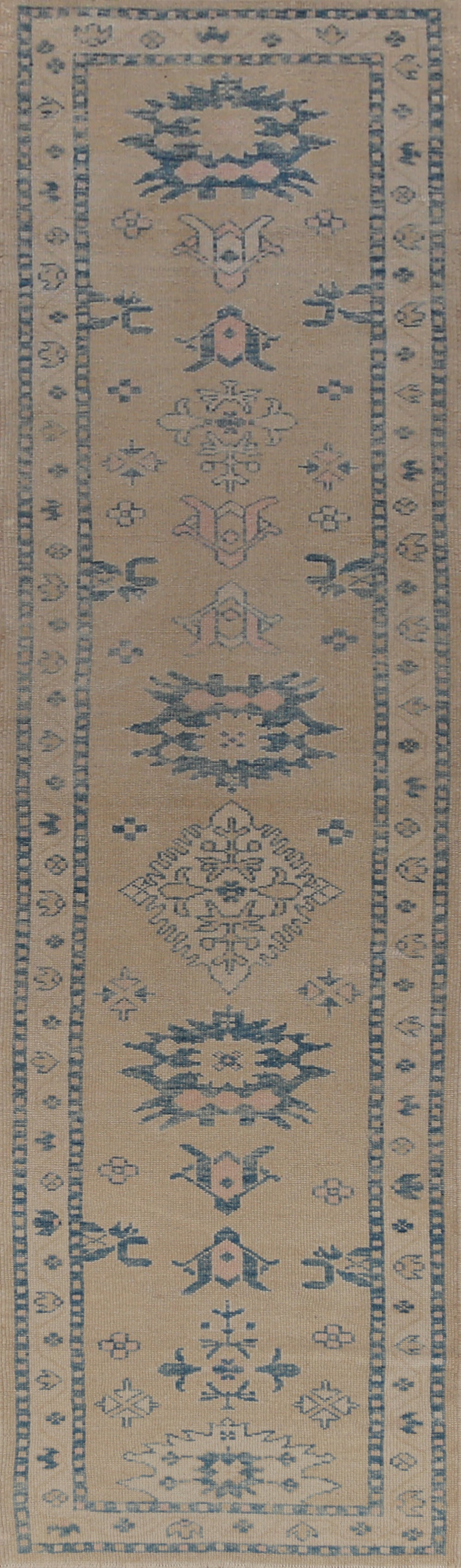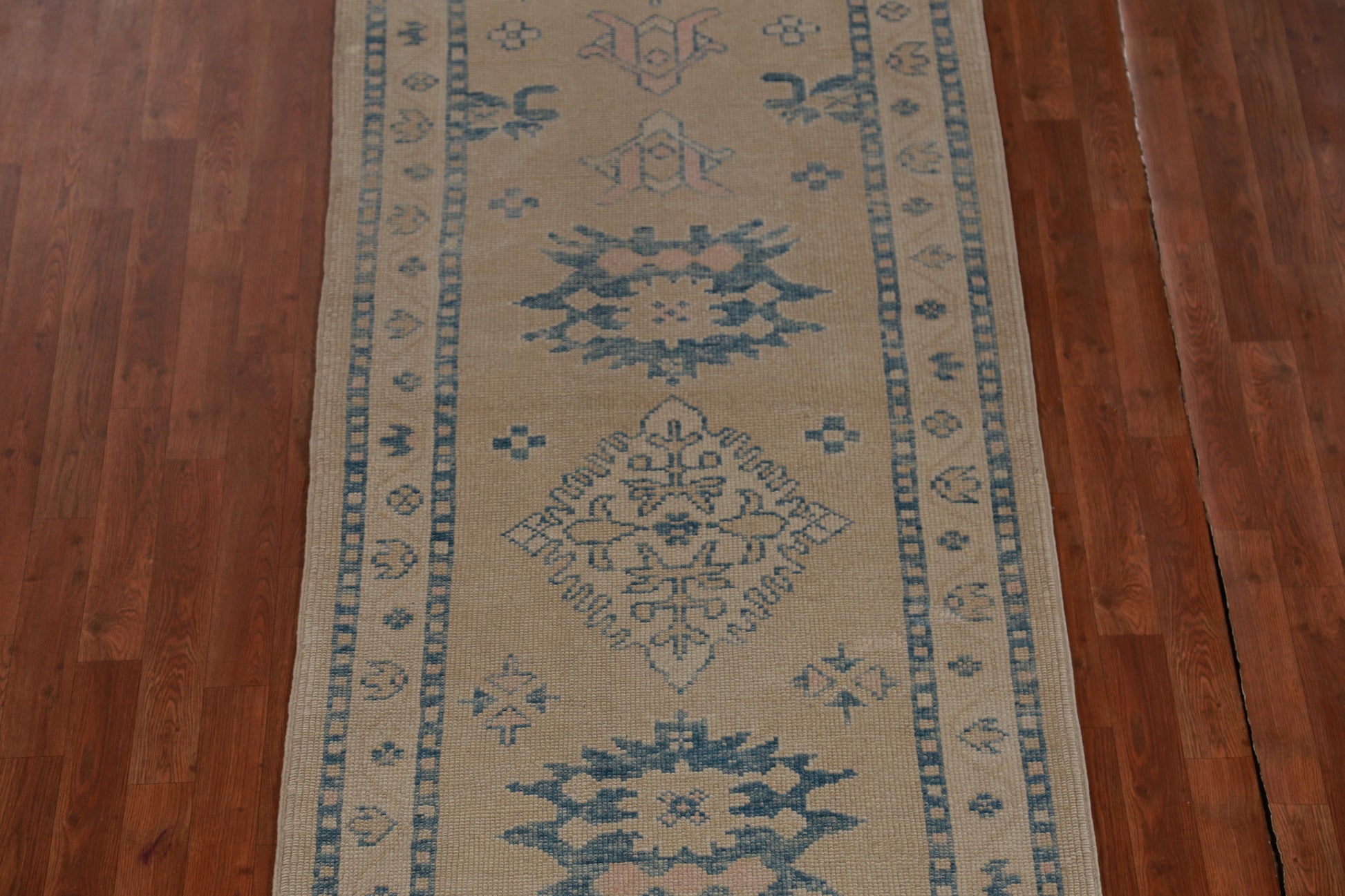 Vegetable Dye Oushak Turkish Runner Rug 3x14
