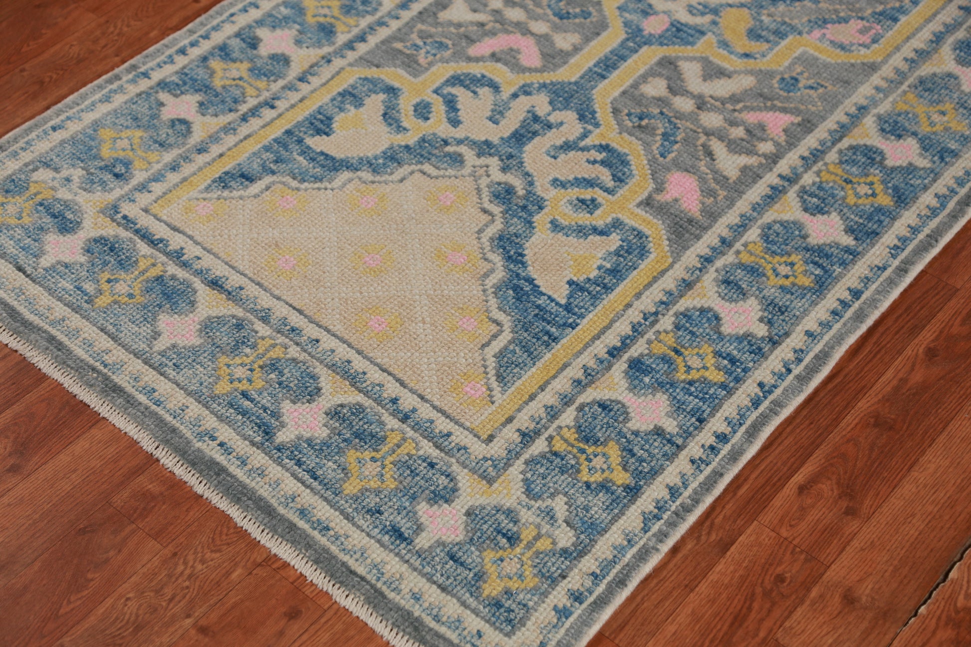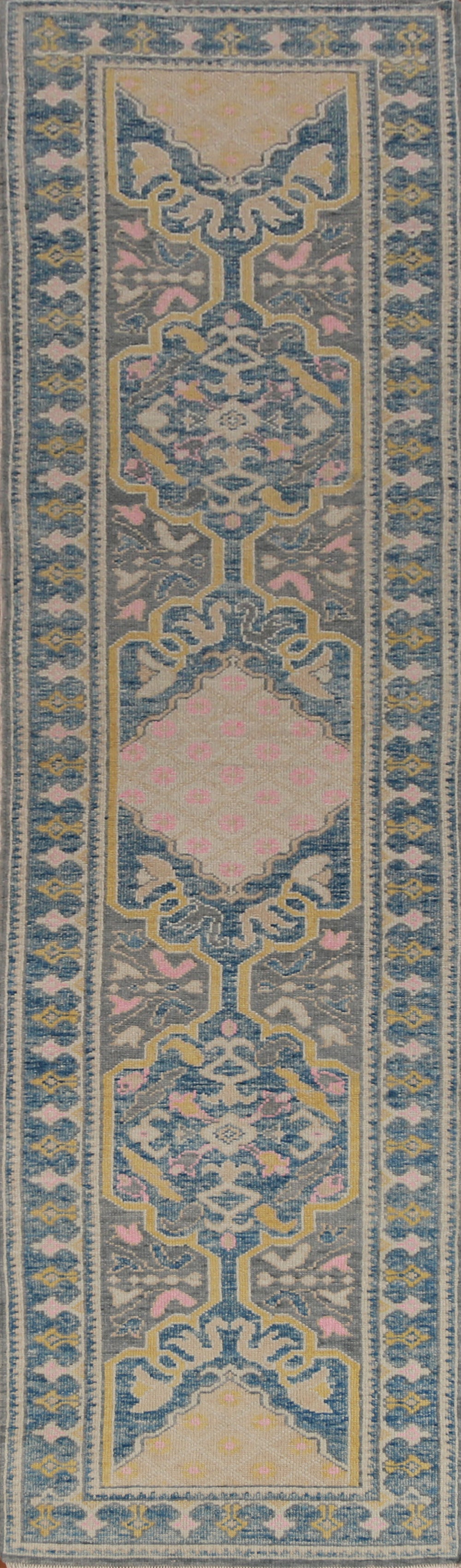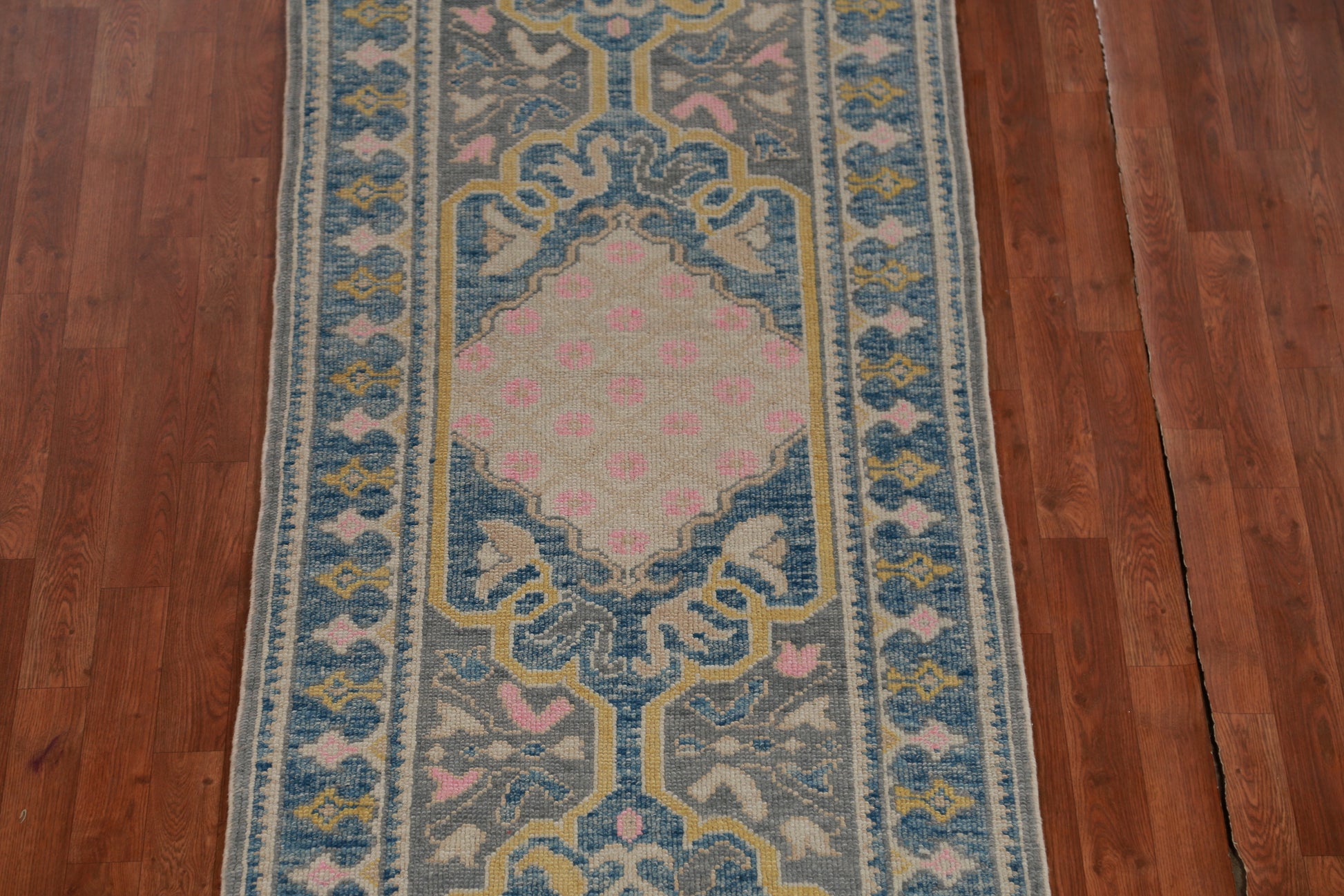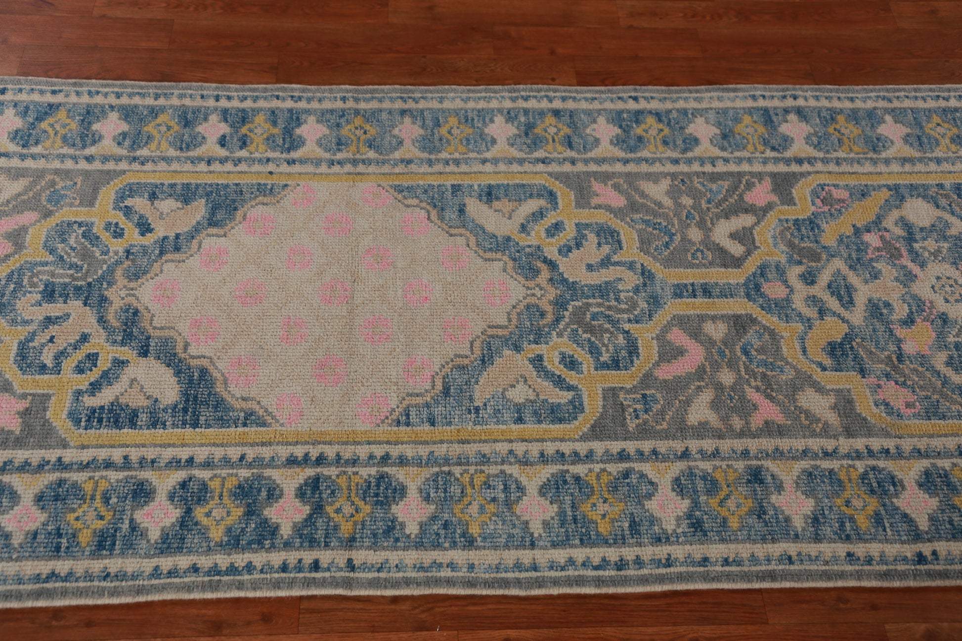 Vegetable Dye Oushak Turkish Runner Rug 3x14