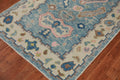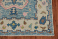 A Beautiful Genuine Turkey Oushak rug is Hand Knotted by skillful weavers in Turkey with 100% Wool Material. This rug is in New, First Quality condition. dimensions are 14' 1'' X 3' 2'' in foot and 429 X 97 in centimeter. the primary color is Navy Blue & Blues.