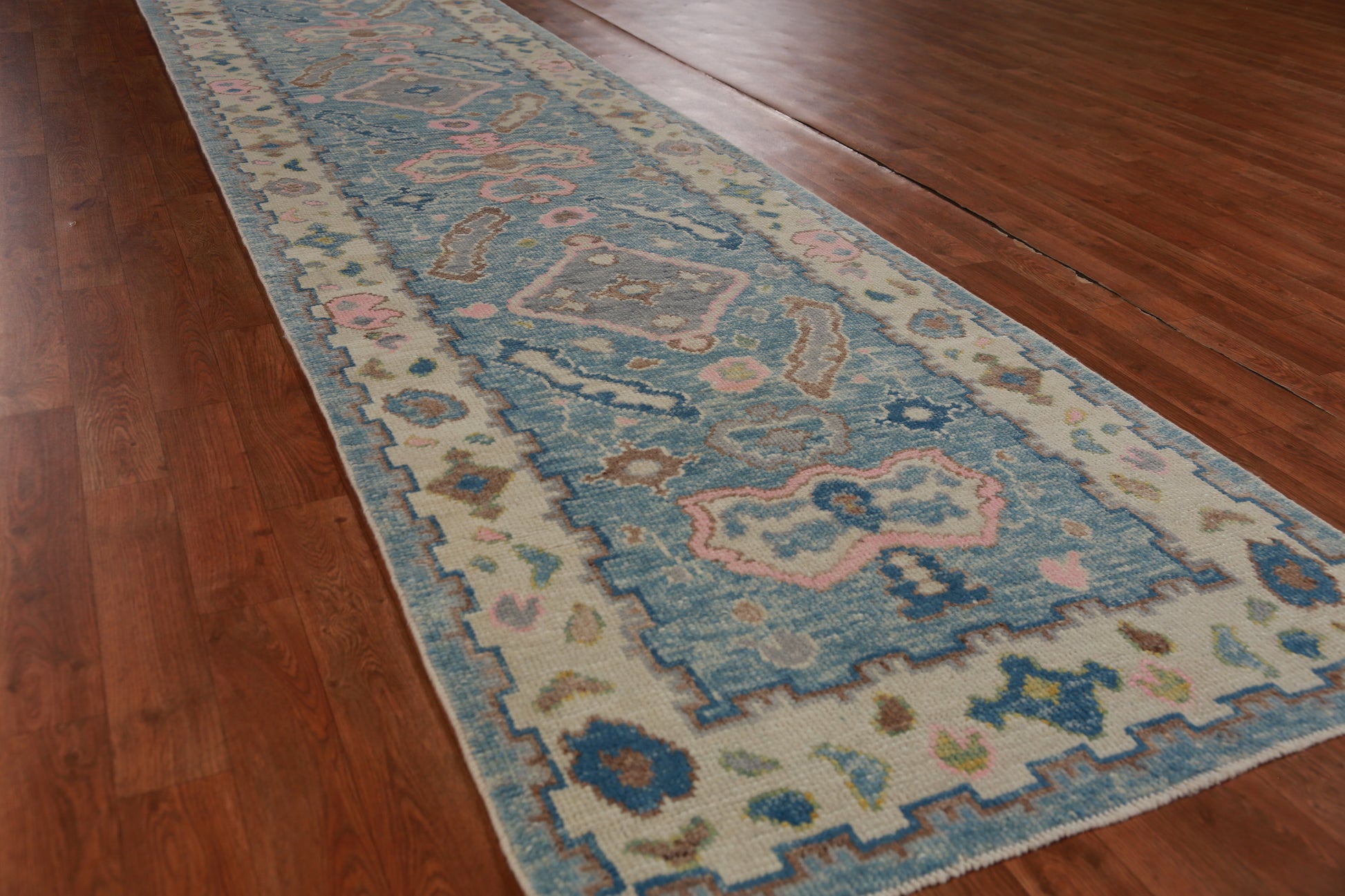 Vegetable Dye Oushak Turkish Runner Rug 3x14