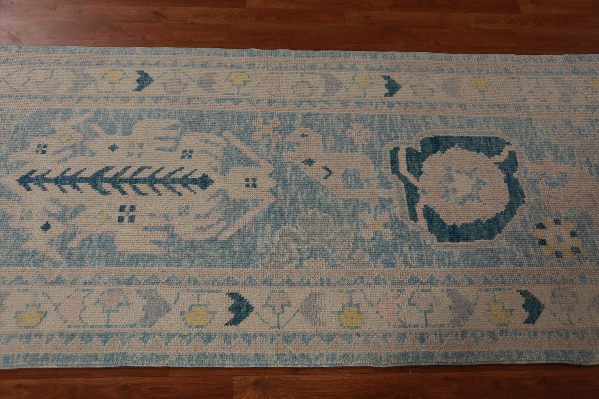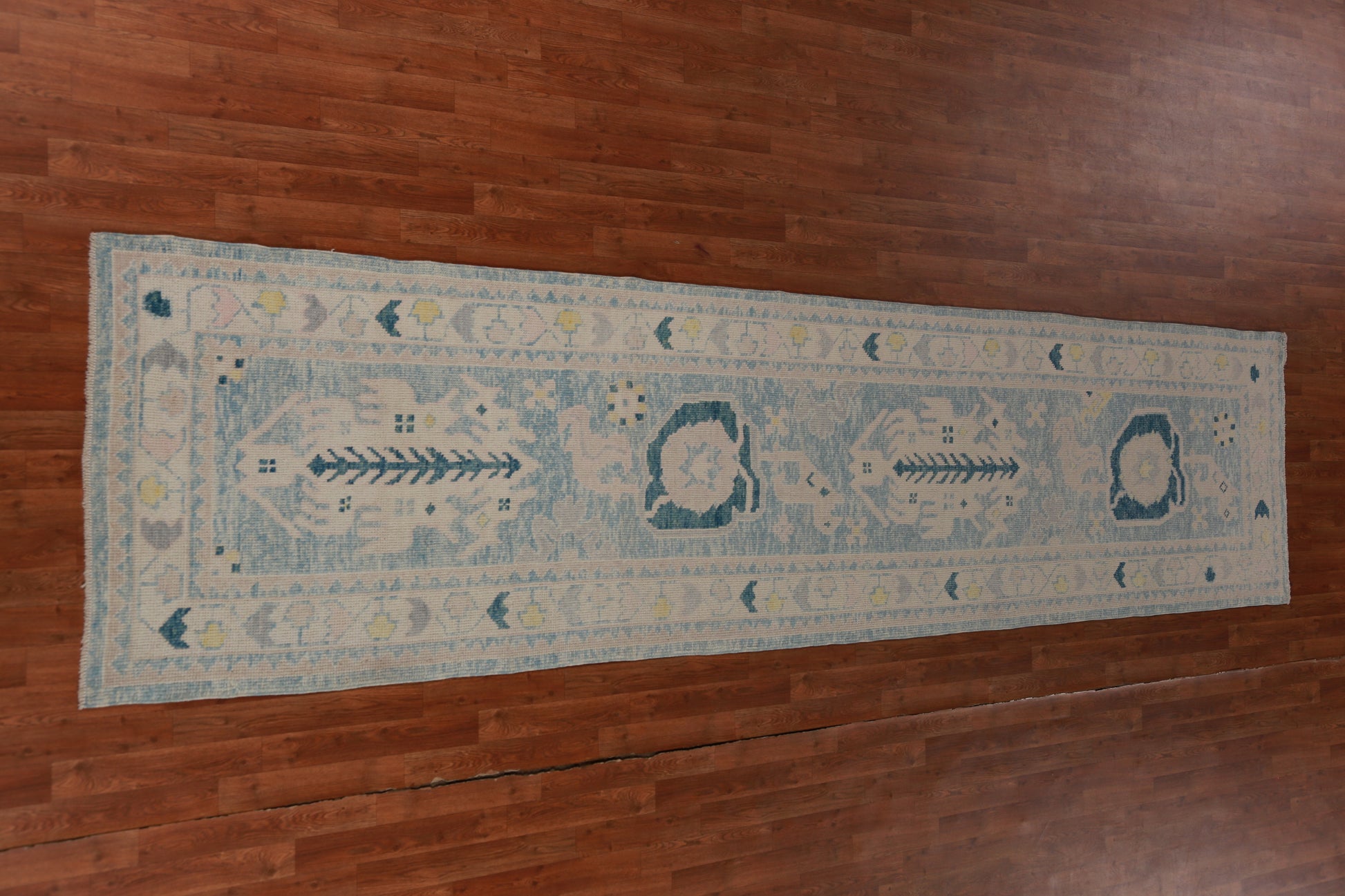 Vegetable Dye Oushak Turkish Runner Rug 3x14