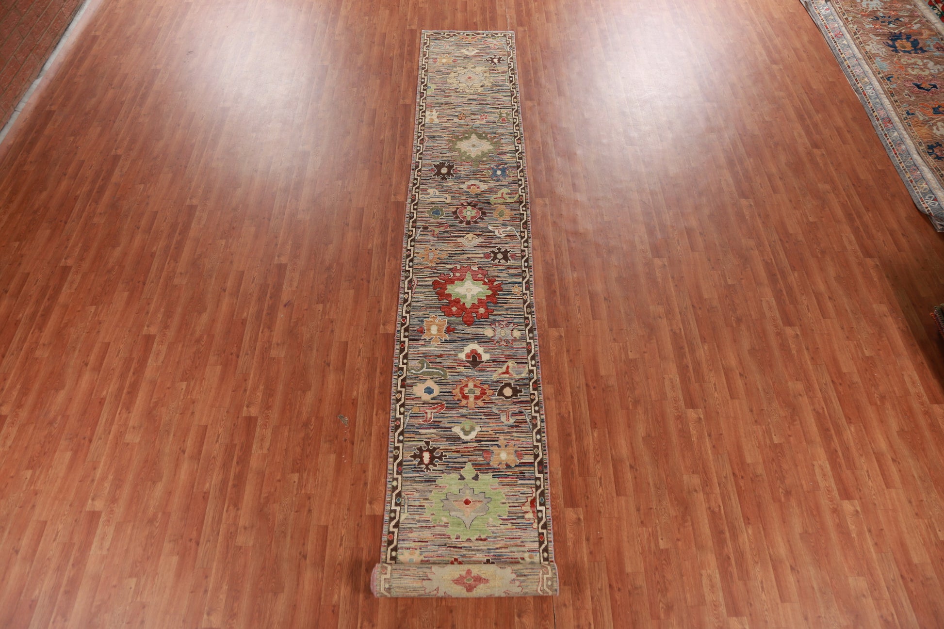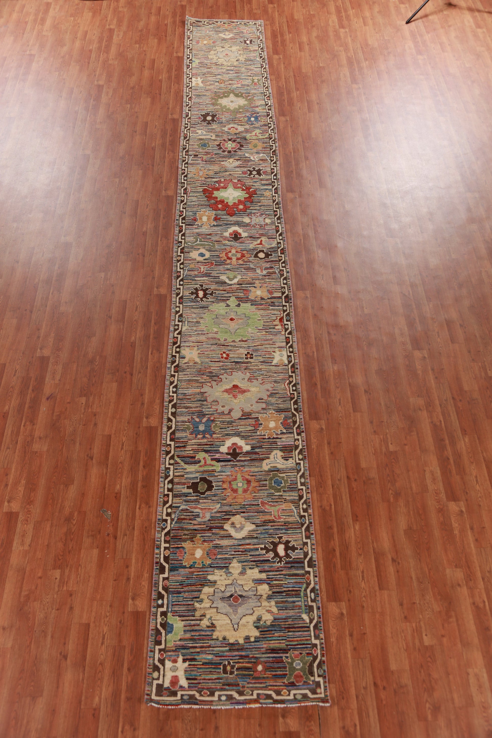 Vegetable Dye Oushak Turkish Runner Rug 3x20
