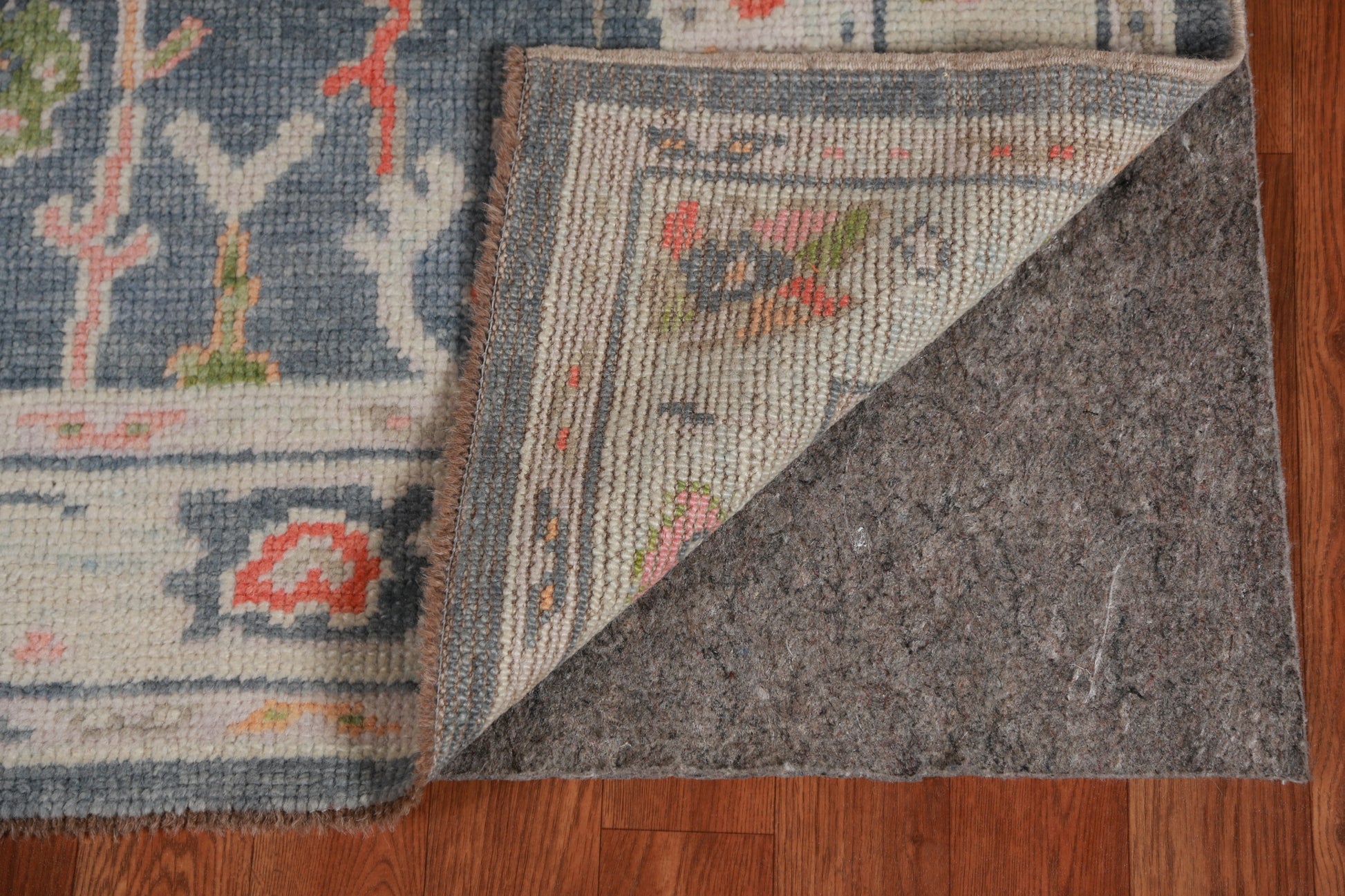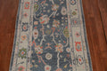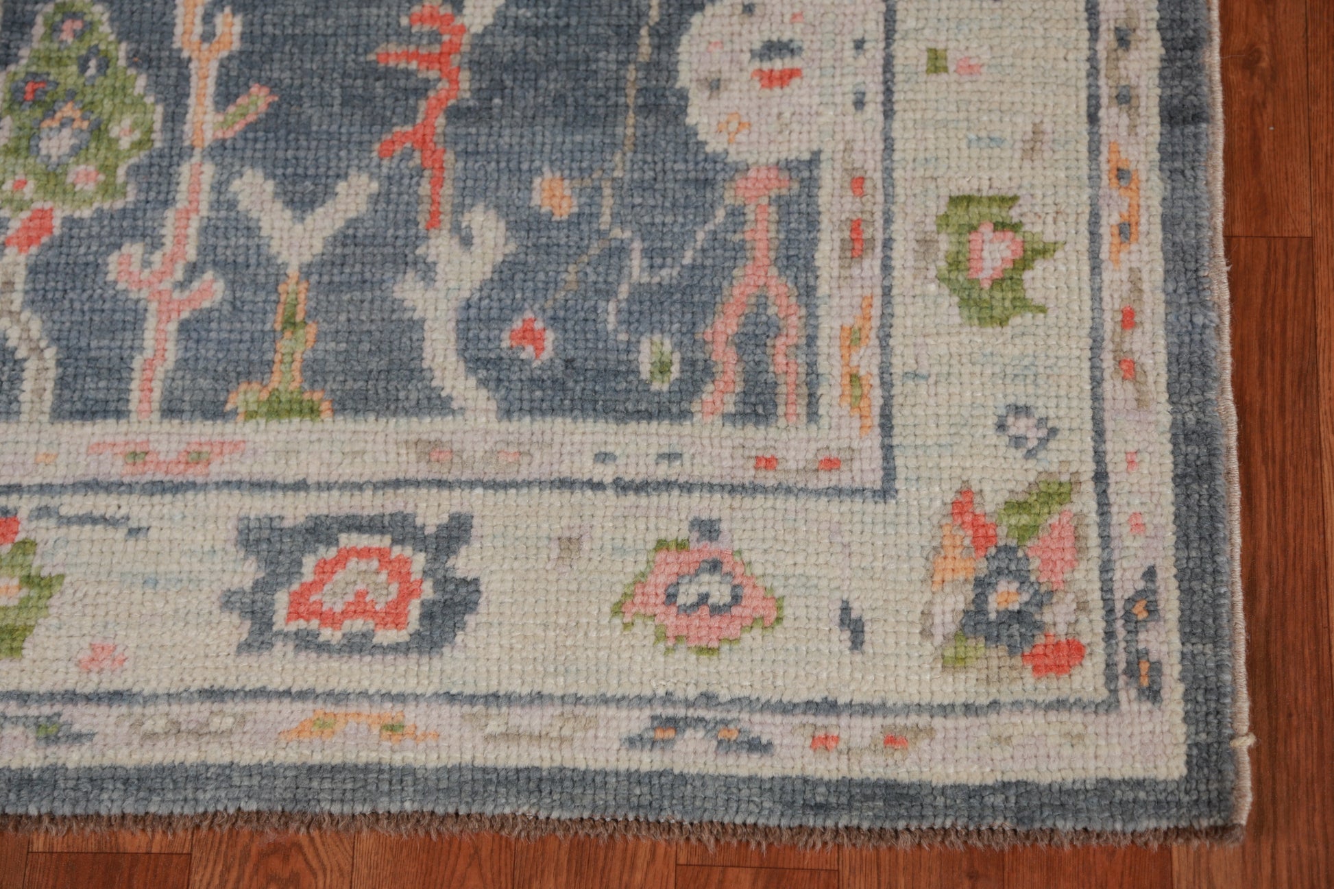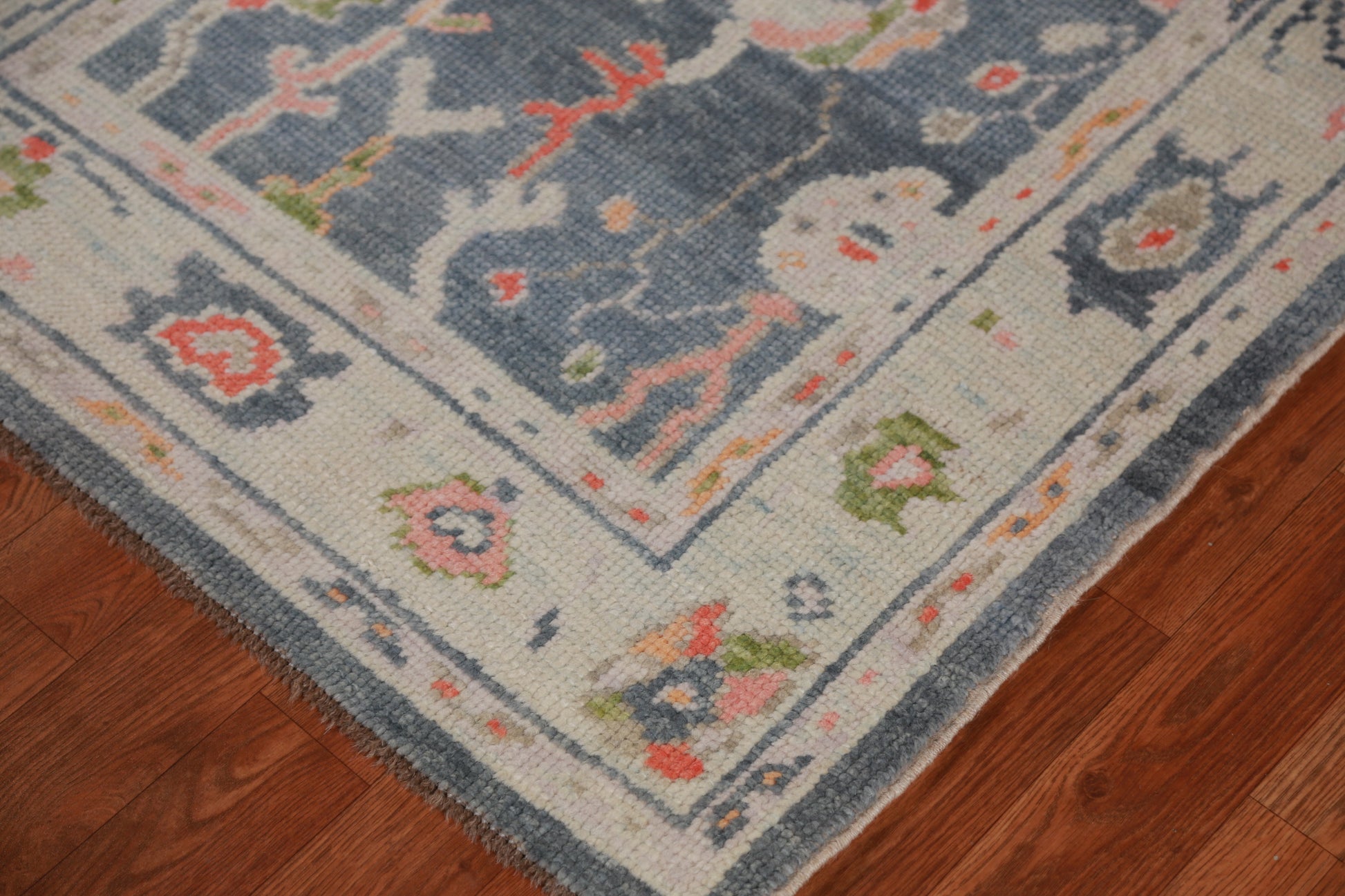 A Beautiful Genuine Turkey Oushak rug is Hand Knotted by skillful weavers in Turkey with 100% Wool Material. This rug is in New, First Quality condition. dimensions are 8' 10'' X 3' 0'' in foot and 269 X 91 in centimeter. the primary color is Navy Blue & Blues.