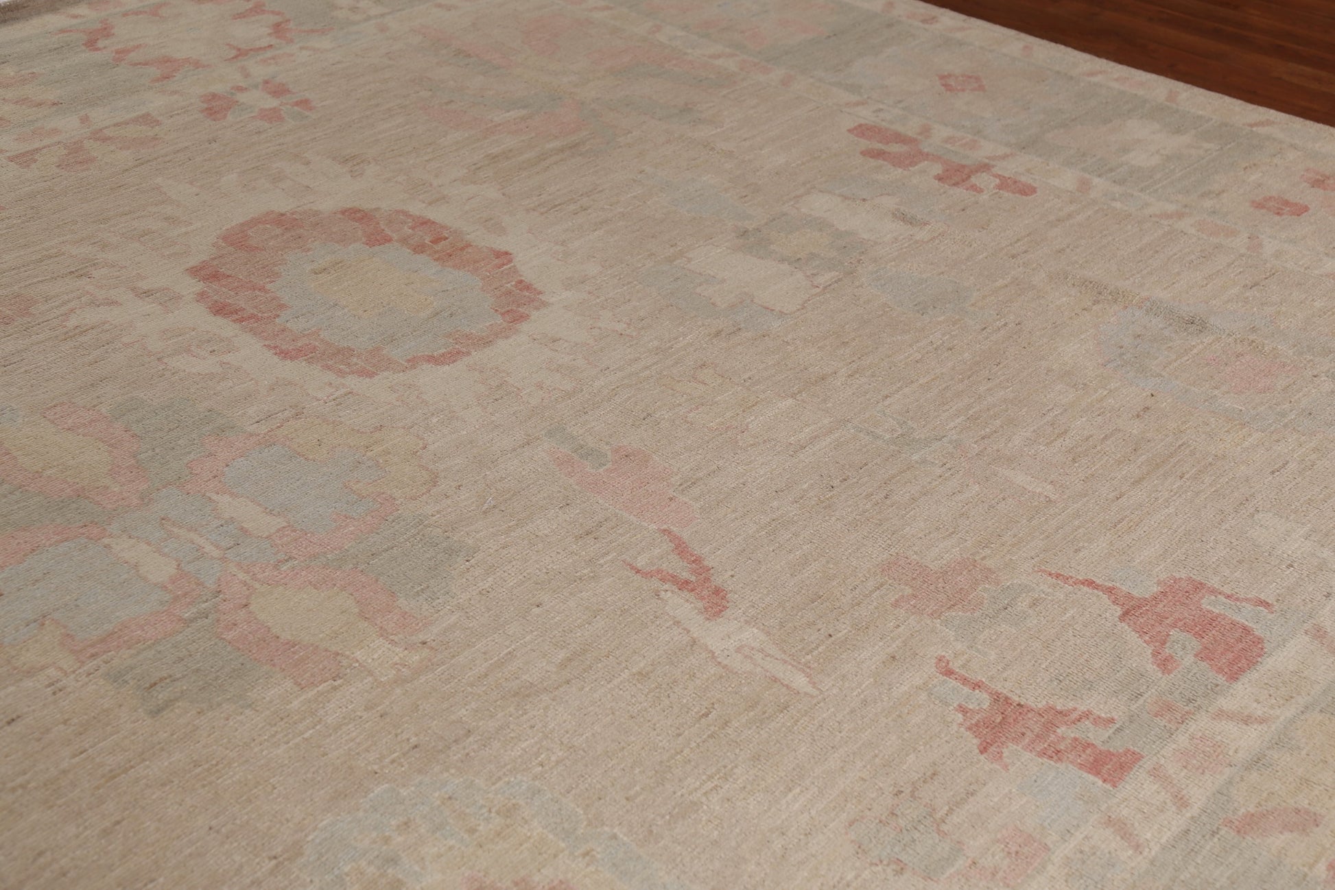 A Beautiful Genuine Turkey Oushak rug is Hand Knotted by skillful weavers in Turkey with 100% Wool Material. This rug is in New, First Quality condition. dimensions are 9' 8'' X 10' 1'' in foot and 295 X 307 in centimeter. the primary color is Beige & Ivories.