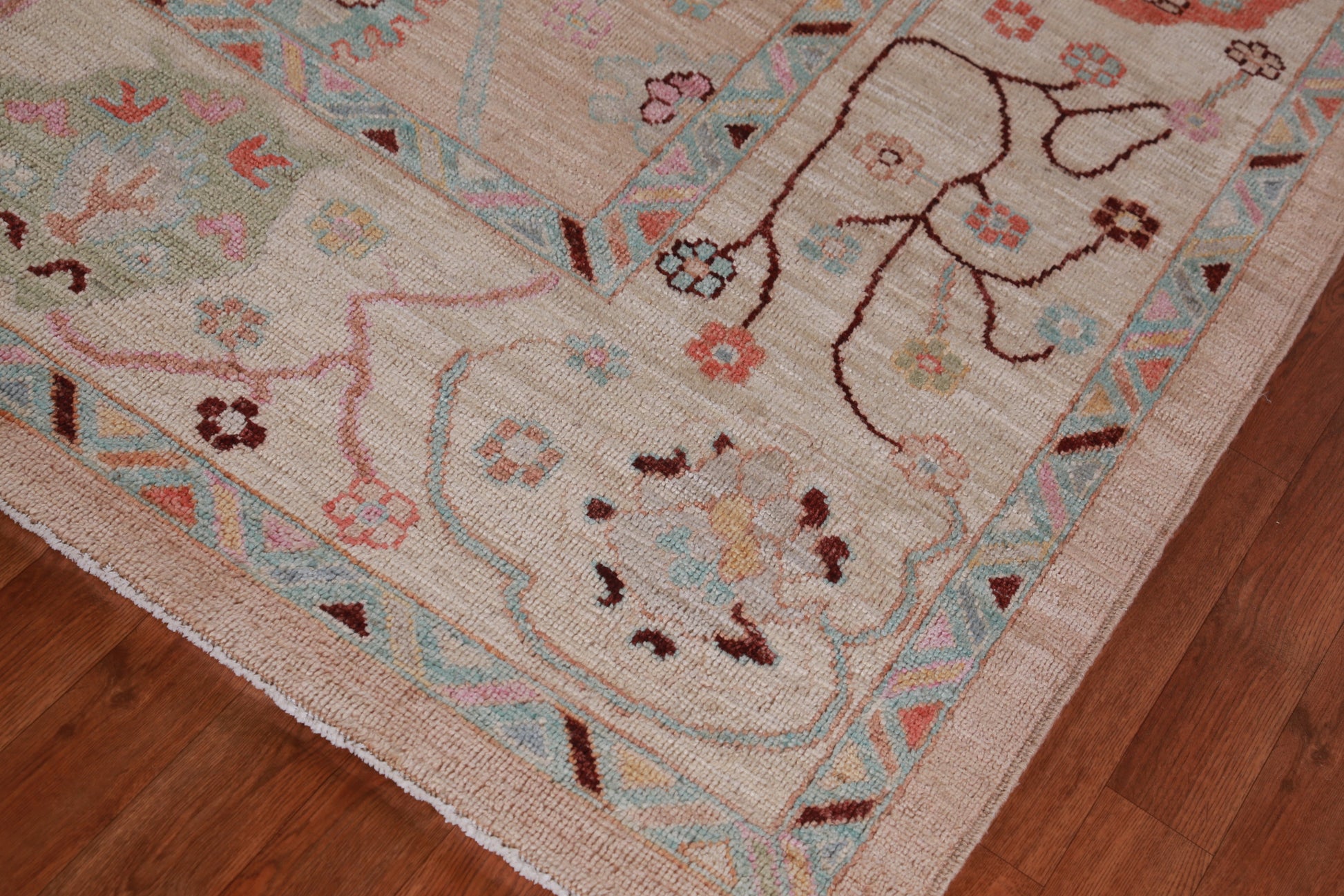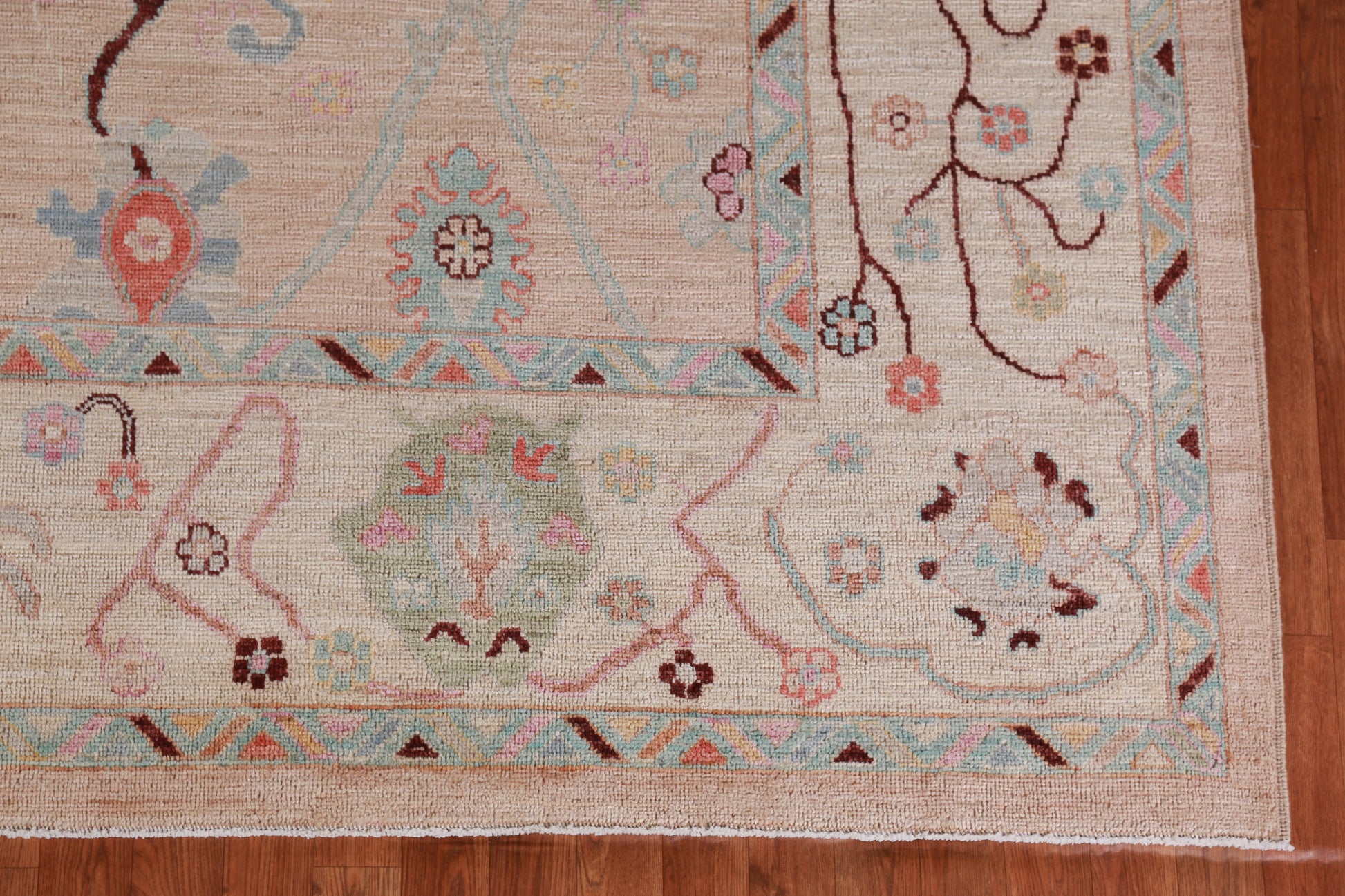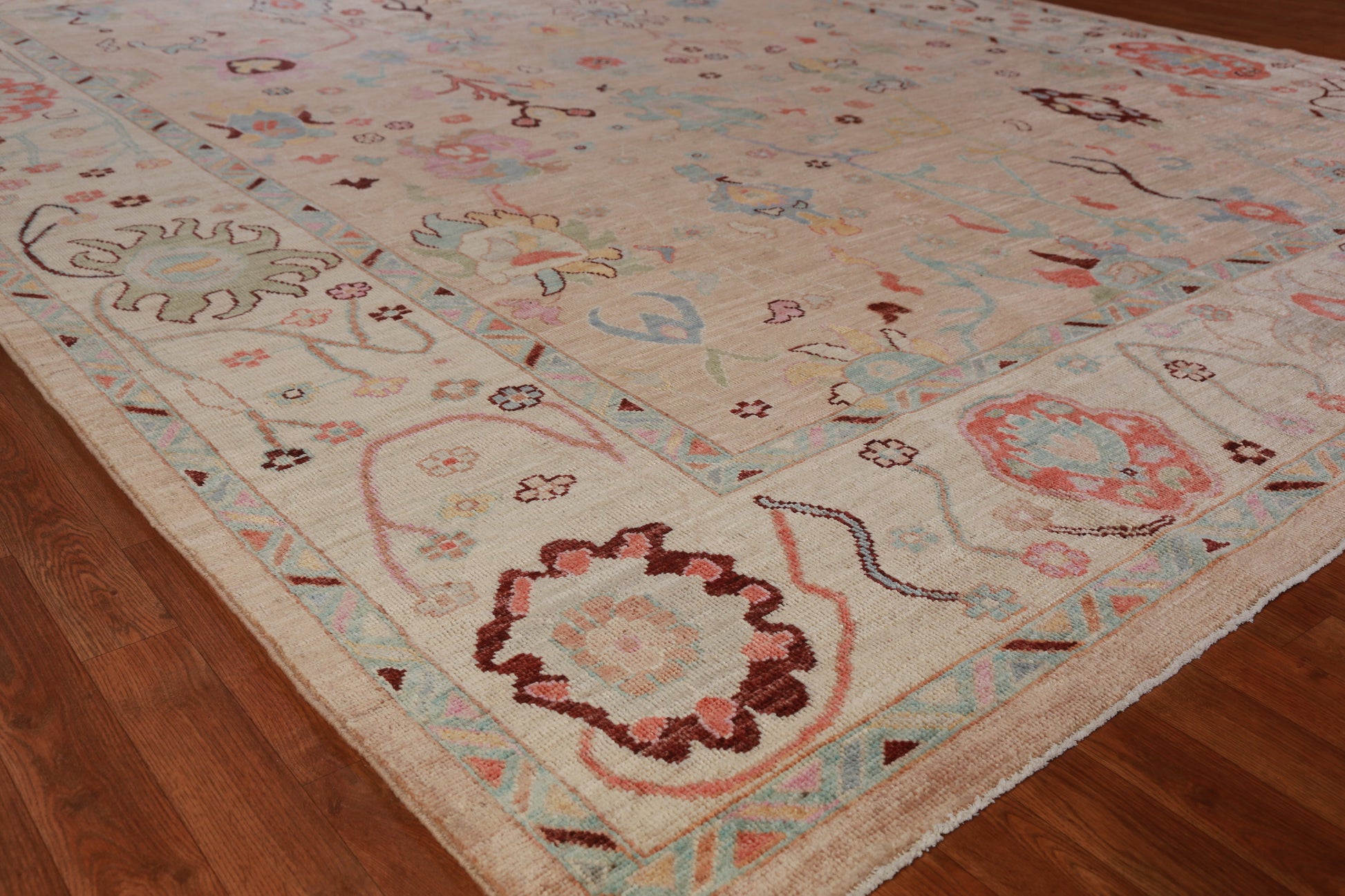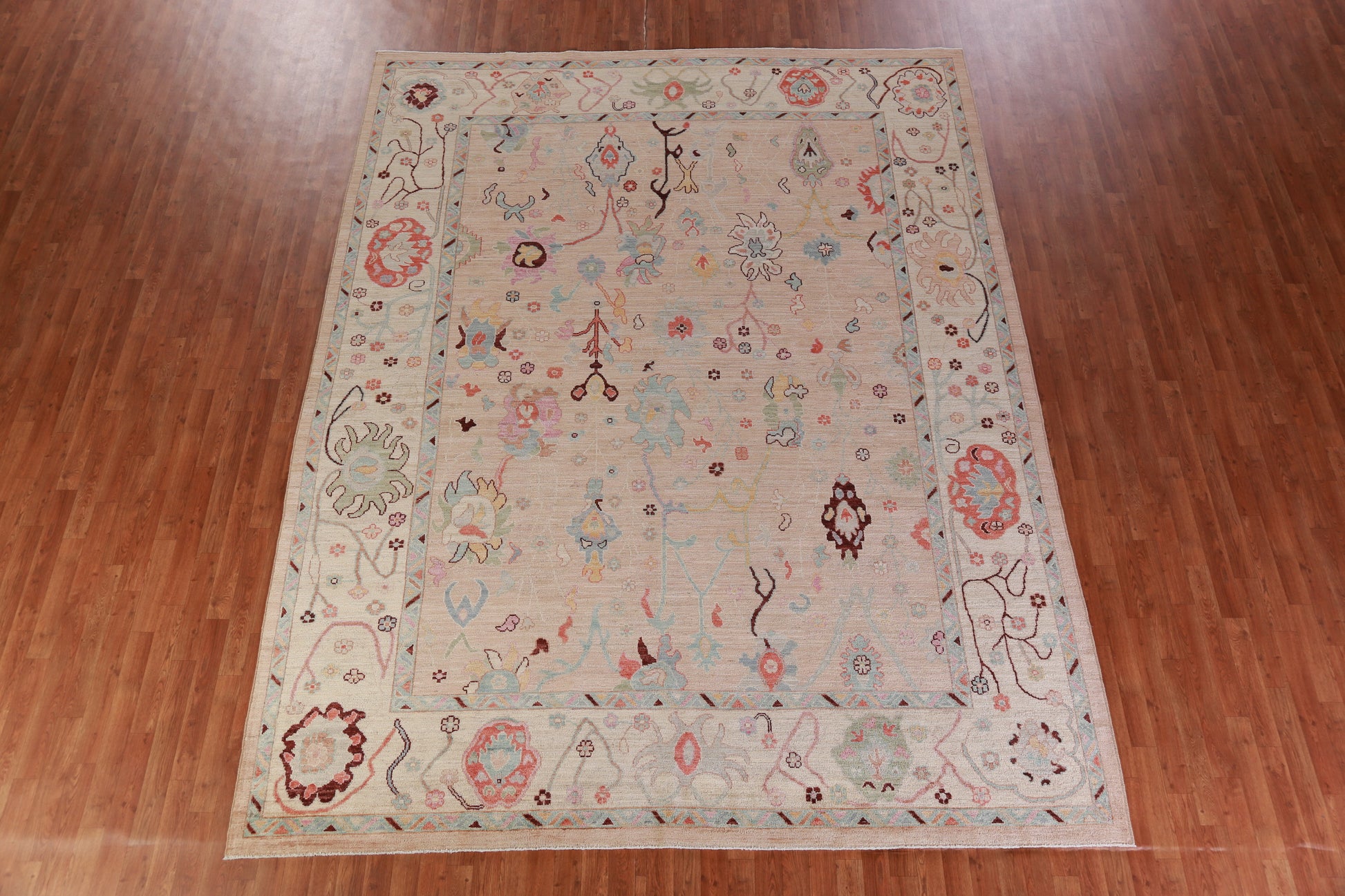A Beautiful Genuine Turkey Oushak rug is Hand Knotted by skillful weavers in Turkey with 100% Wool Material. This rug is in New, First Quality condition. dimensions are 12' 0'' X 9' 4'' in foot and 366 X 284 in centimeter. the primary color is Peach.