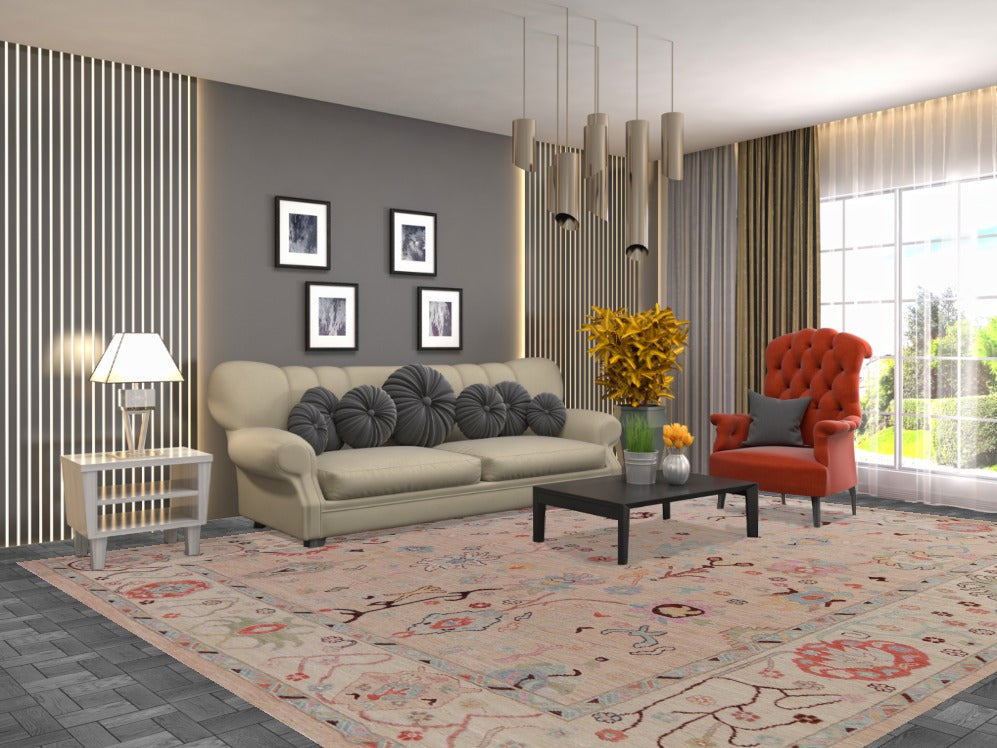 Vegetable Dye Peach Oushak Turkish Area Rug 9x12