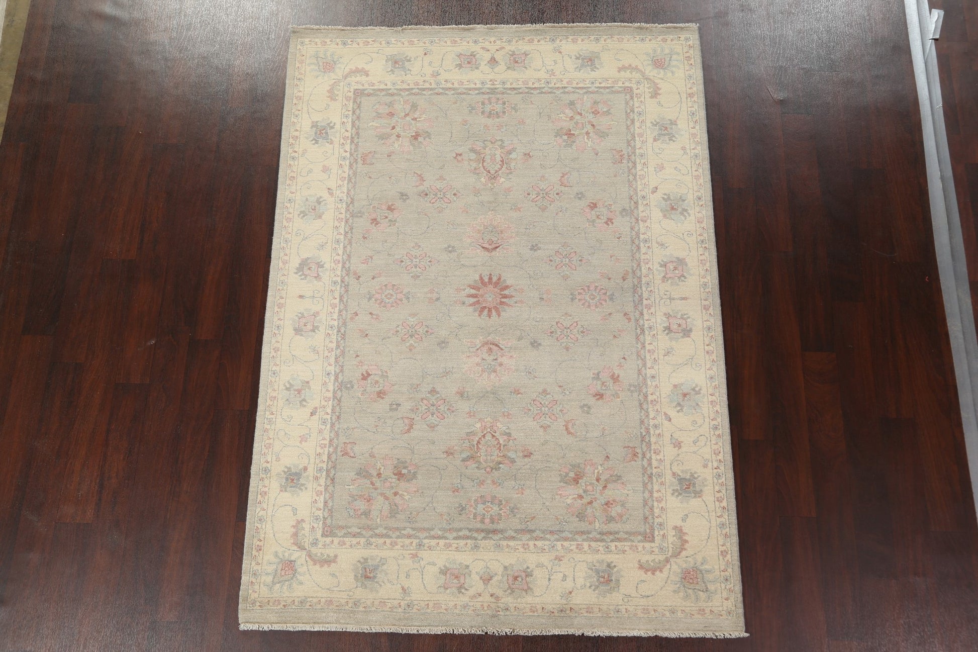 A Beautiful Genuine Pakistan Chobi-Peshawar rug is Hand Knotted by skillful weavers in Pakistan with 100% Wool Material. This rug is in New, First Quality condition. dimensions are 7' 10'' X 5' 6'' in foot and 239 X 168 in centimeter. the primary color is Greys & Charcoal.