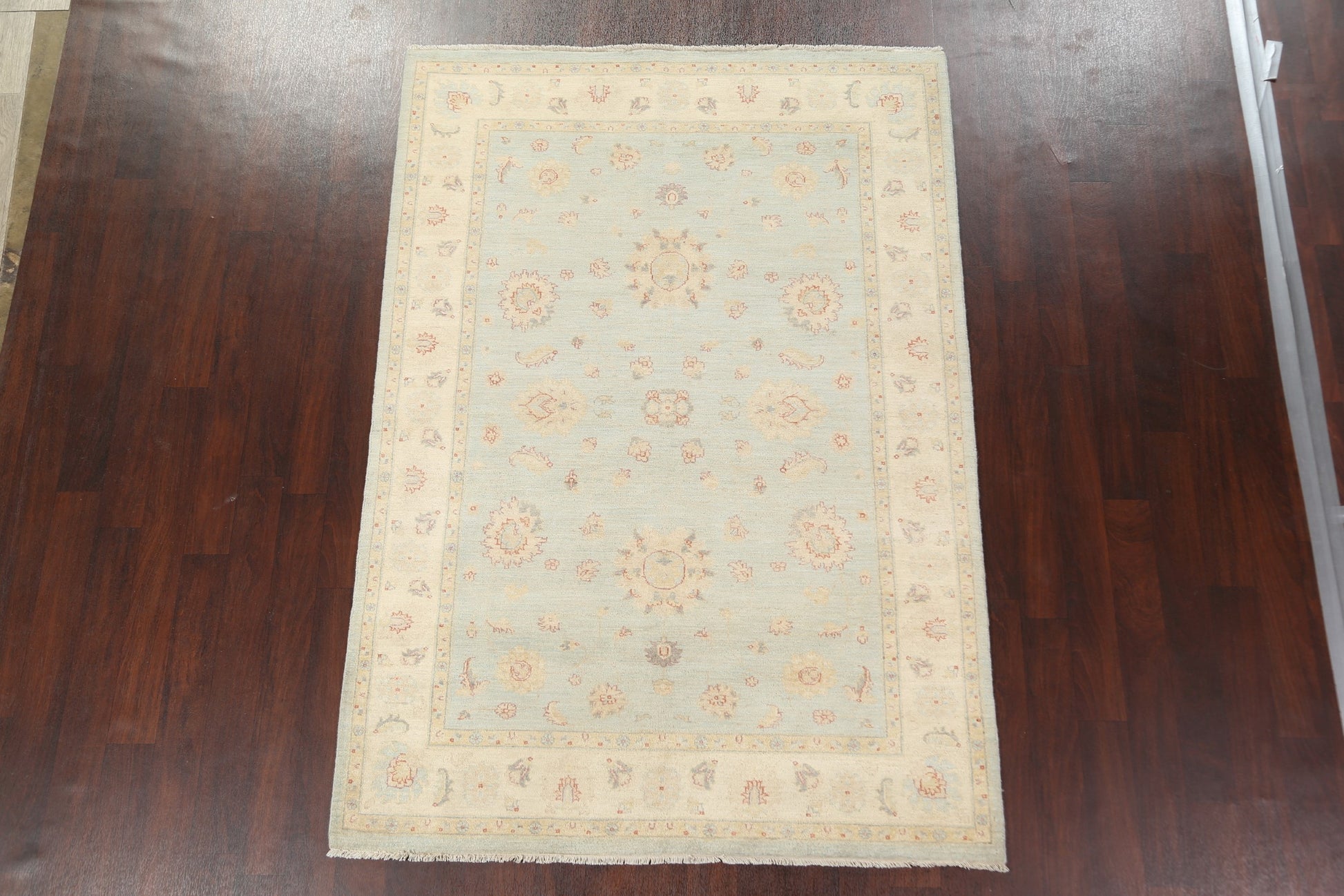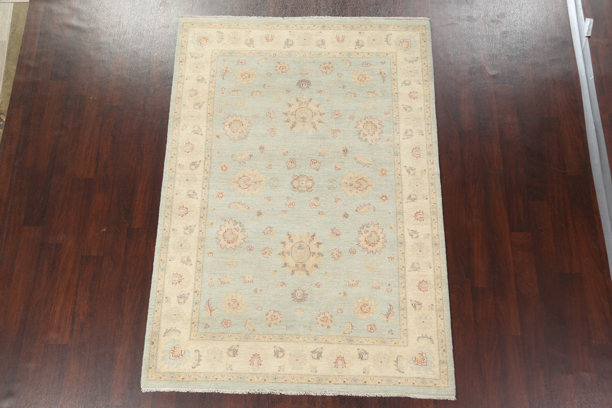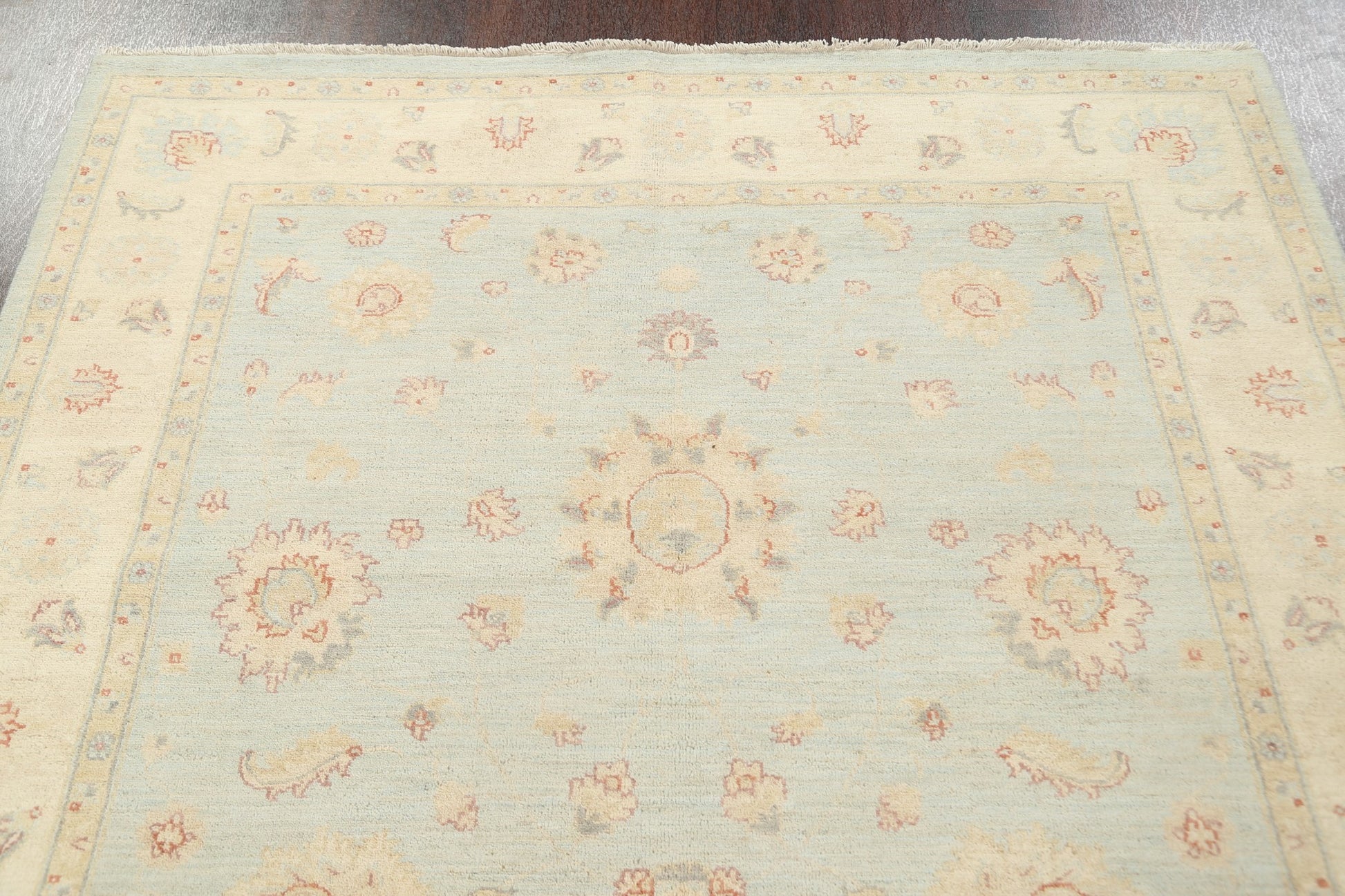 A Beautiful Genuine Pakistan Chobi-Peshawar rug is Hand Knotted by skillful weavers in Pakistan with 100% Wool Material. This rug is in New, First Quality condition. dimensions are 8' 0'' X 5' 6'' in foot and 244 X 168 in centimeter. the primary color is Navy Blue & Blues.