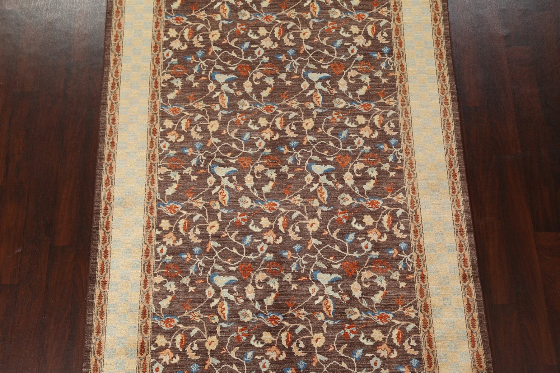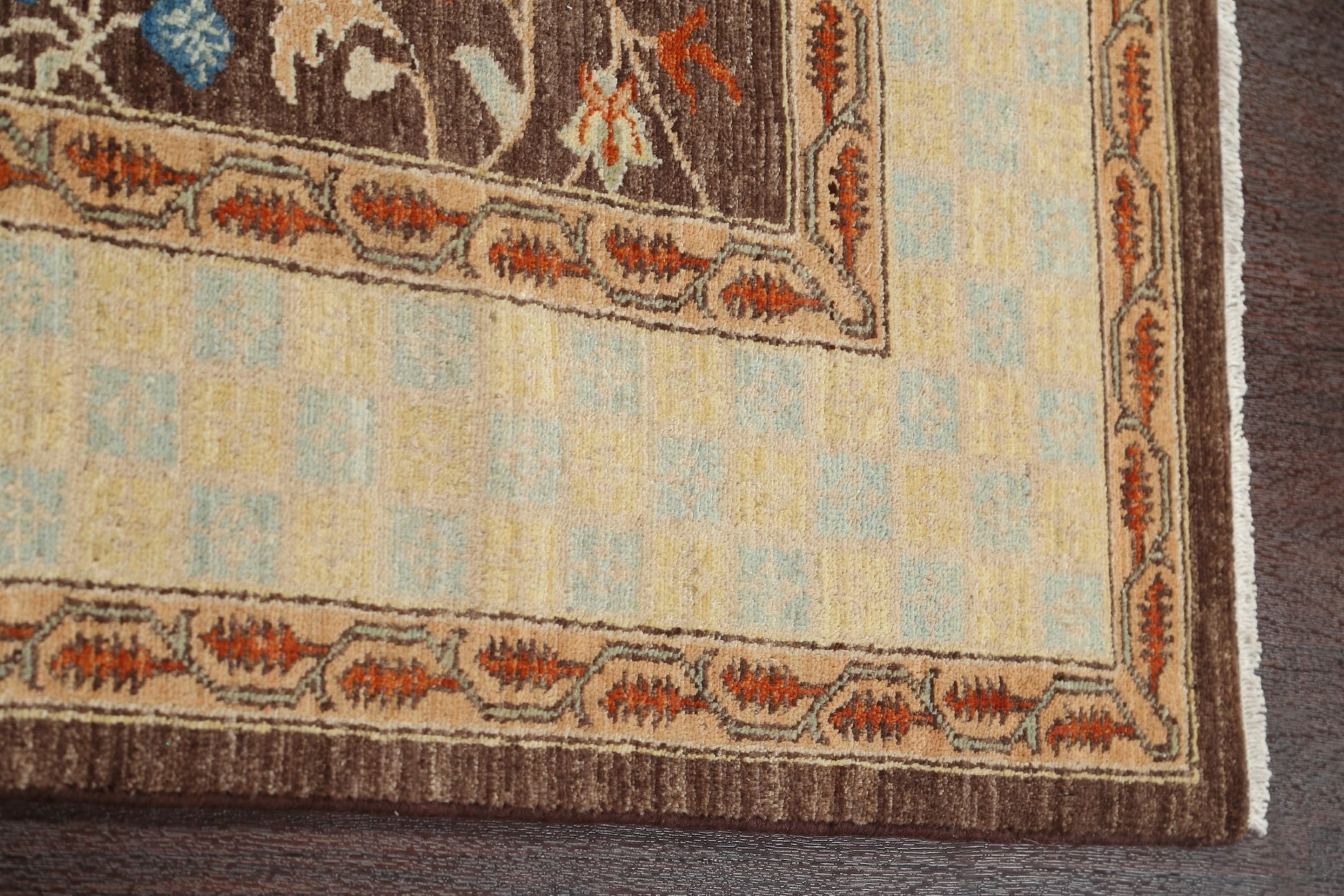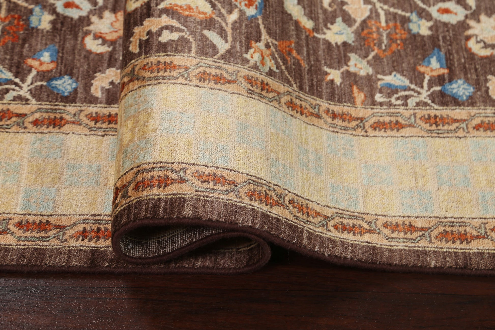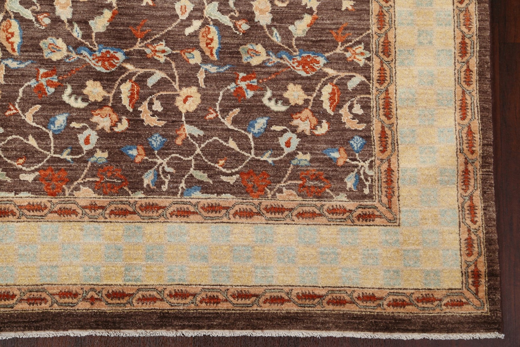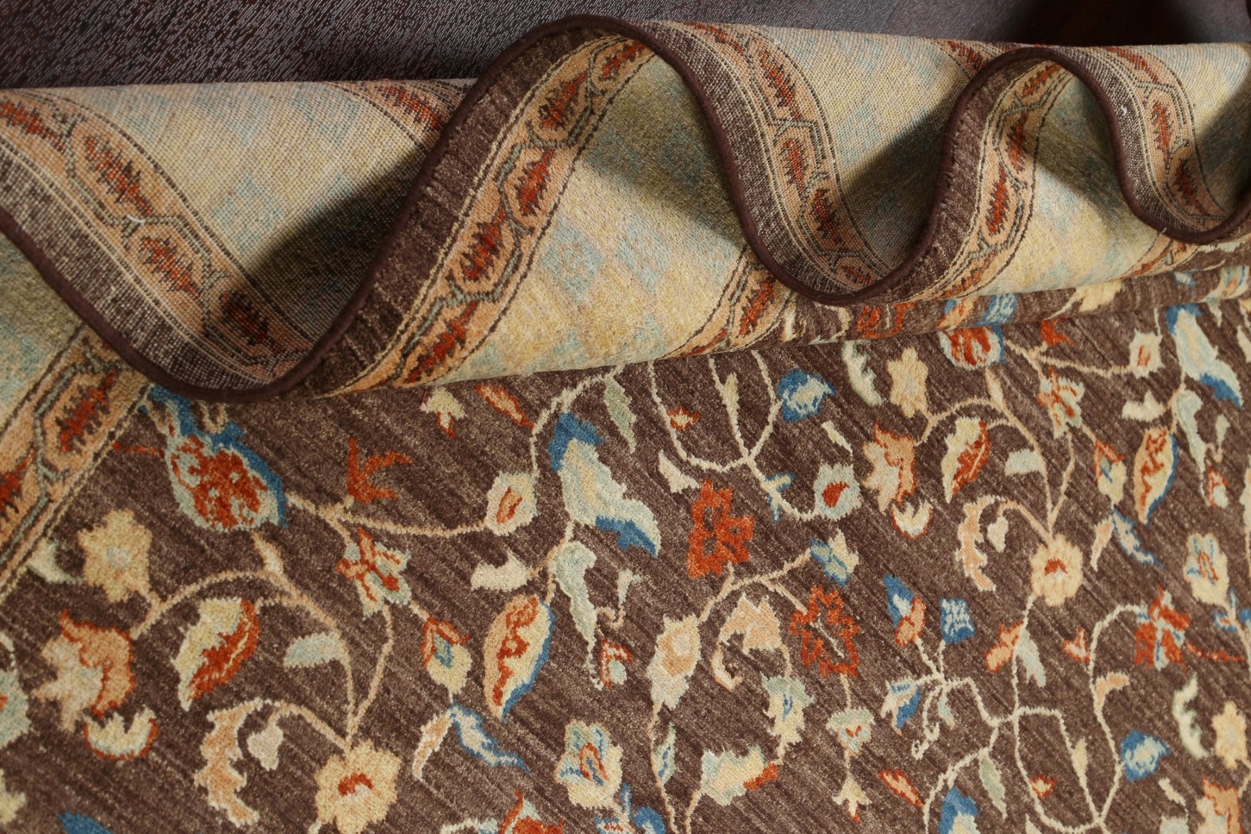 A Beautiful Genuine Pakistan Peshawar-Chobi rug is Hand Knotted by skillful weavers in Pakistan with 100% Wool Material. This rug is in New, First Quality condition. dimensions are 9' 0'' X 5' 11'' in foot and 274 X 180 in centimeter. the primary color is Brown.